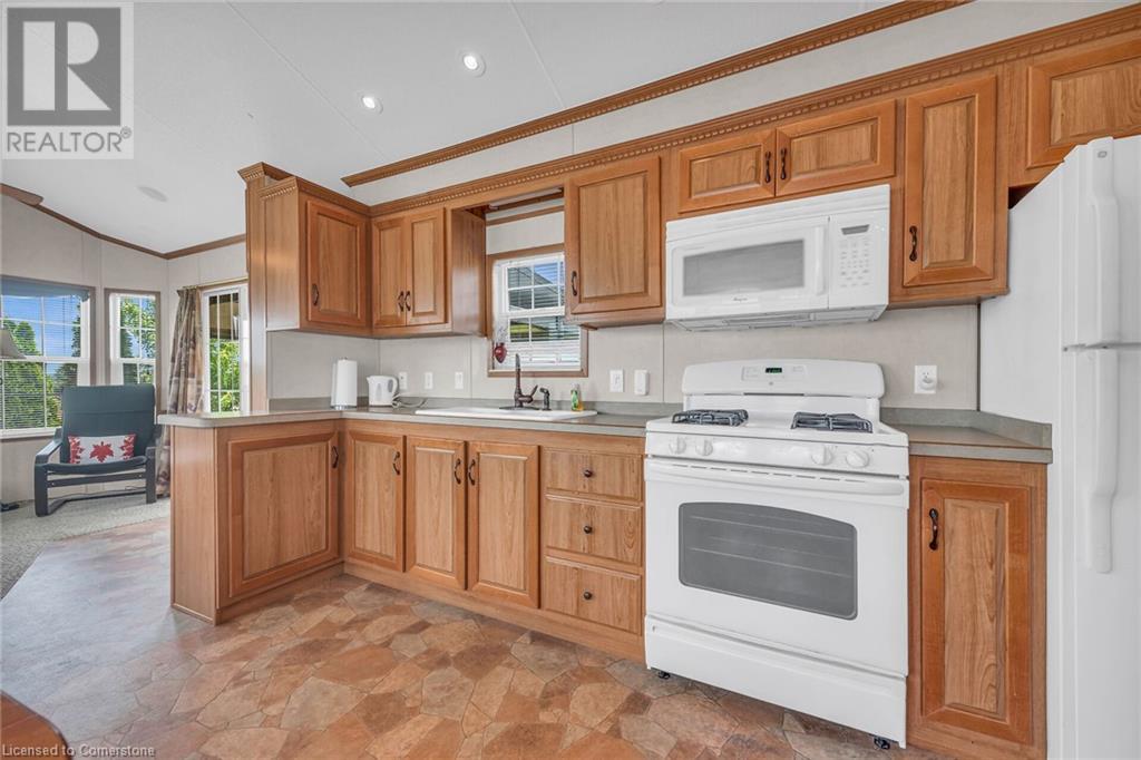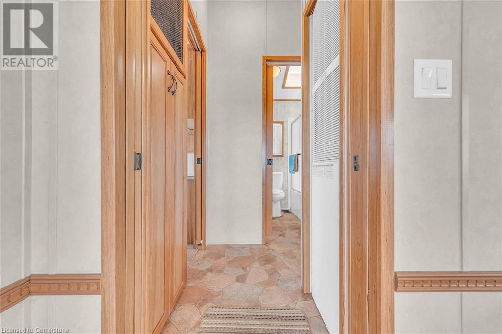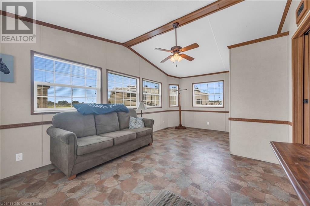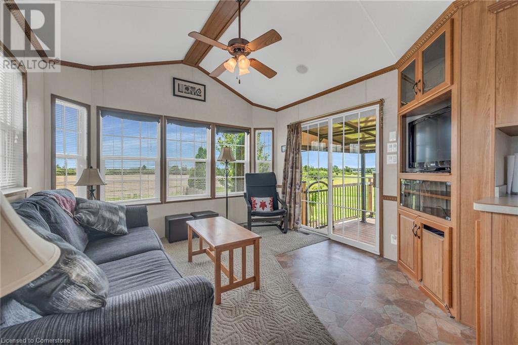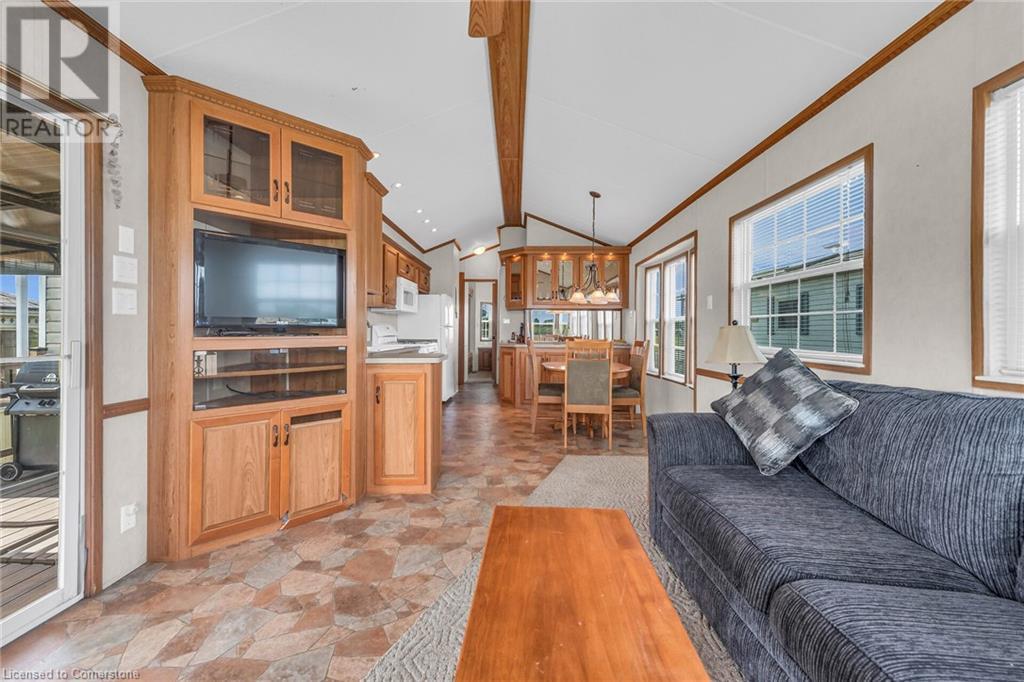 Dreaming of an affordable cottage for family vacations?! Look no further than Maitland Shores along beautiful Grand River/Lake Erie! This 2009 Trophy park model sits on quite possibly the best lot in the park! Privacy & space with INCREDIBLE waterfront views. Composite deck & enclosed gazebo! Heated pool (with giant waterslide), ATV trails, playground area & soccer field! Own a boat? For additional fee you can rent a boat slip right in the park! The unit itself is meticulously maintained. The add a room is listed as 2nd bedroom. Most furnishings will stay! Seller paid fees for 2024. Park is open from April 15 - October 31st. Lot fees are $8,000 a year (no property taxes though!) Fees includes water, hydro, & shared sewage system, park & road maintenance, kids association, entertainment, & amenities. (id:55009)