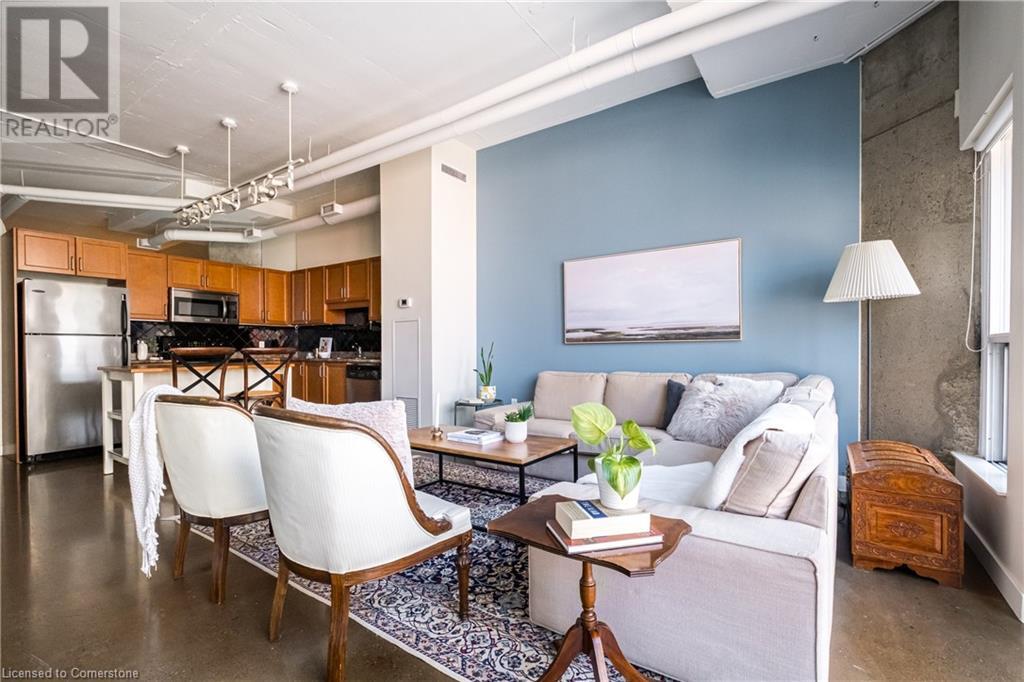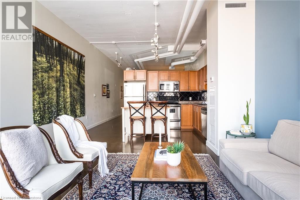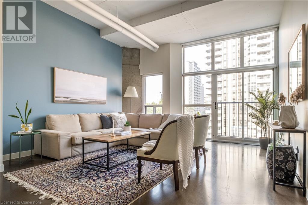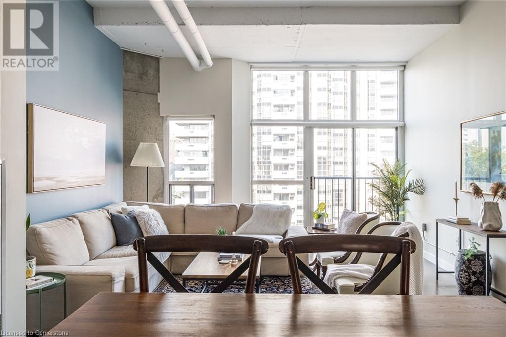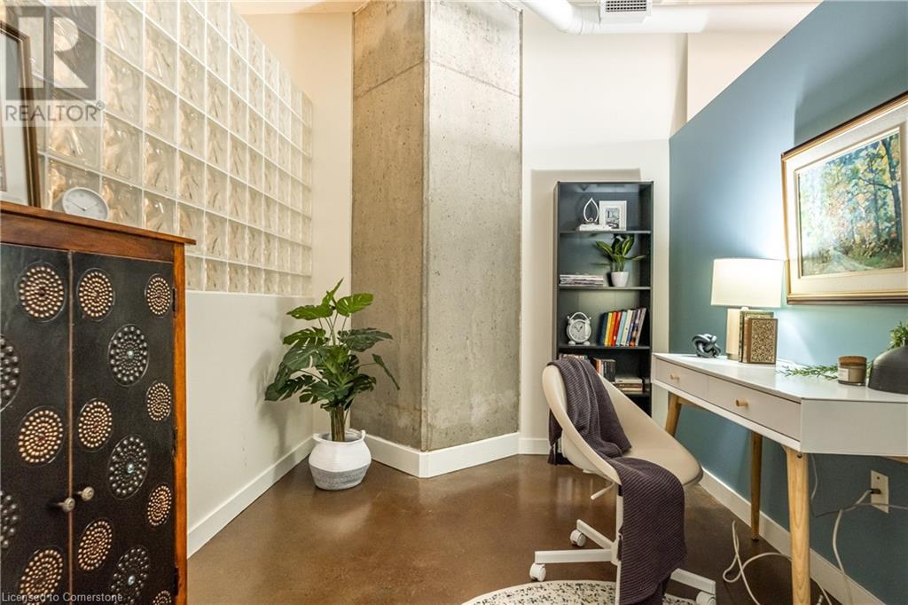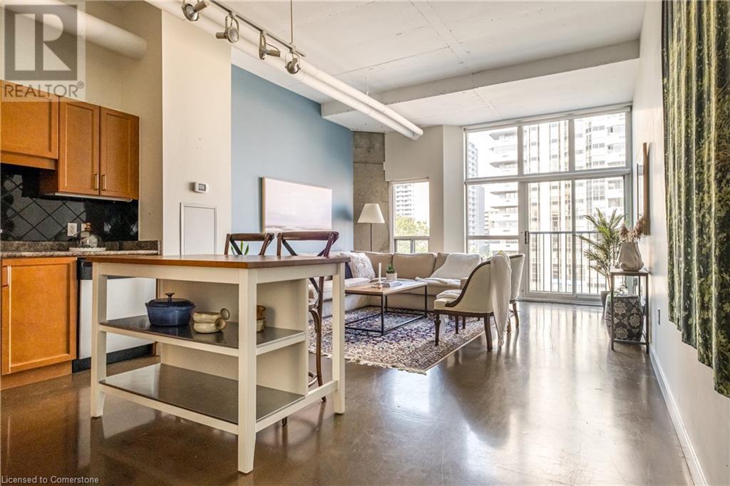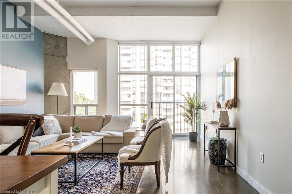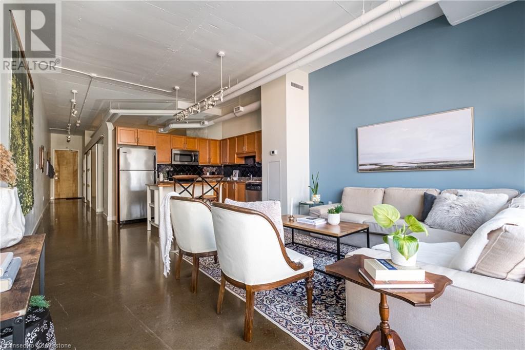 $627.86 MonthlyExperience urban chic living at the Core Lofts! This super cool condo boasts a modern industrial vibe with polished concrete floors, soaring 10+ft ceilings with exposed pipes and beams, glass bock accents and floor-to-ceiling windows for a ton of natural light. This 834 sqft unit features 1 bedroom plus a den that can also serve as a home office or an additional bedroom, a 4pc bath, convenient in-suite laundry and an open-concept living and dining area. The kitchen features stainless steel appliances with lots of cupboards and the spacious open living area is perfect for entertaining with a Juliette balcony to enjoy west-facing sunset views. Residents enjoy premium building amenities, including a gym, party room, guest suites, and rooftop patio with BBQ perfect for taking in breathtaking city skyline views. The unit include an underground parking spot and convenient lockers on 8th-floor. This sought-after building in a prime downtown location is close to all area hospitals, making it ideal for medical professionals, and within walking distance of James St N, restaurants, shopping and amenities, the AGH, Convention Centre, FirstOntario Place, the Library, Farmers’ Market and just minutes to trendy Locke St S., McMaster University, public and Go-transit, and easy access to the 403 make this cool and convenient condo at the Core Lofts the perfect choice to call home! (id:55009)