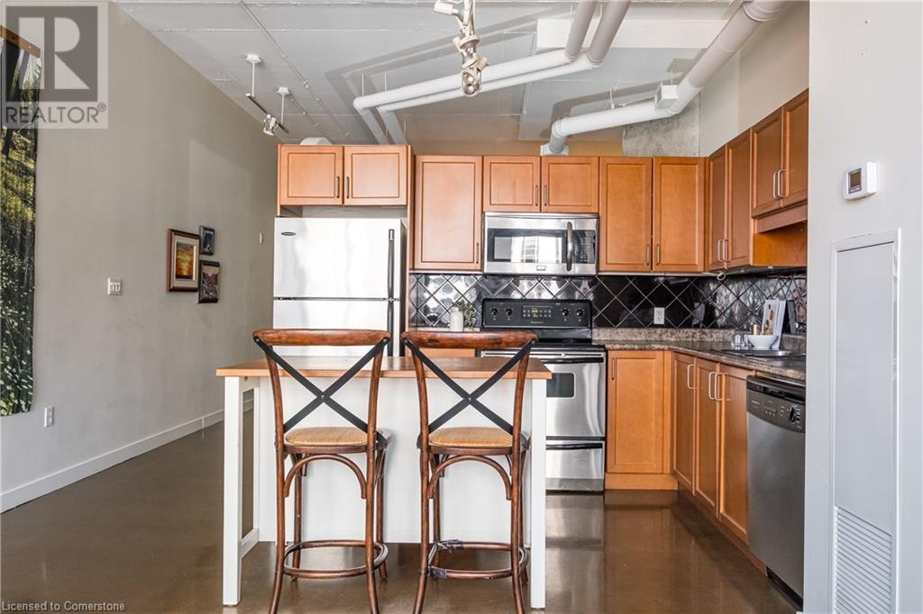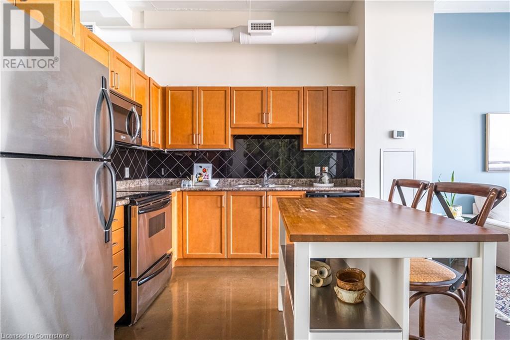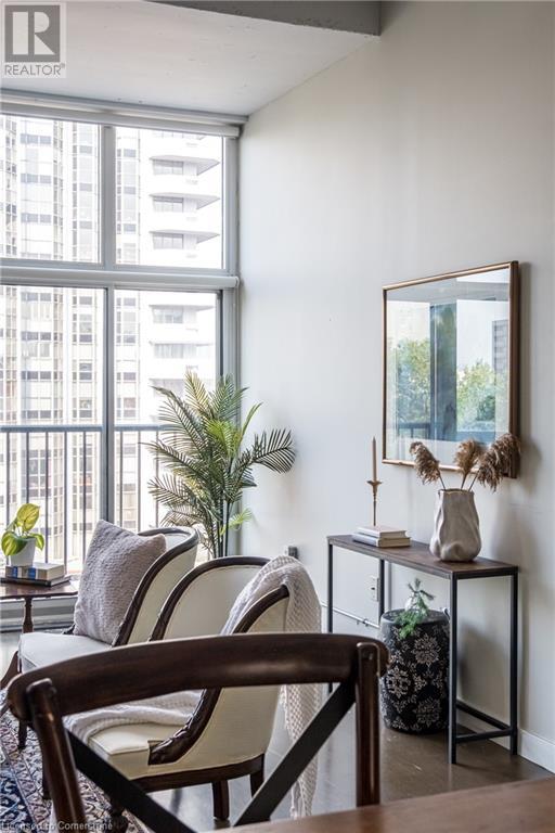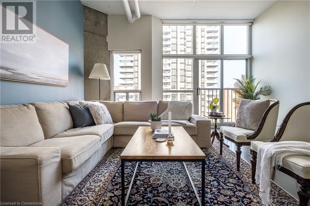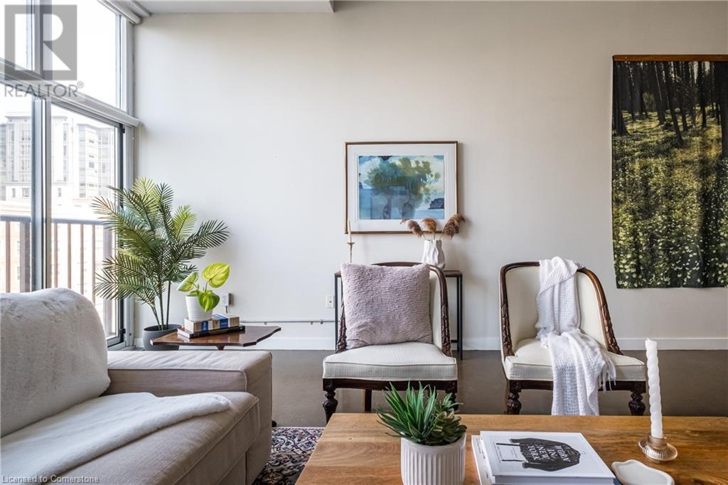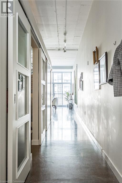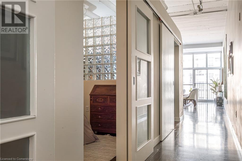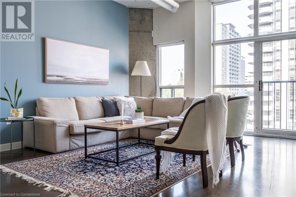 $627.86 MonthlyExperience urban chic living at the Core Lofts! This super cool condo boasts a modern industrial vibe with polished concrete floors, soaring 10+ft ceilings with exposed pipes and beams, glass bock accents and floor-to-ceiling windows for a ton of natural light. This 834 sqft unit features 1 bedroom plus a den that can also serve as a home office or an additional bedroom, a 4pc bath, convenient in-suite laundry and an open-concept living and dining area. The kitchen features stainless steel appliances with lots of cupboards and the spacious open living area is perfect for entertaining with a Juliette balcony to enjoy west-facing sunset views. Residents enjoy premium building amenities, including a gym, party room, guest suites, and rooftop patio with BBQ perfect for taking in breathtaking city skyline views. The unit include an underground parking spot and convenient lockers on 8th-floor. This sought-after building in a prime downtown location is close to all area hospitals, making it ideal for medical professionals, and within walking distance of James St N, restaurants, shopping and amenities, the AGH, Convention Centre, FirstOntario Place, the Library, Farmers’ Market and just minutes to trendy Locke St S., McMaster University, public and Go-transit, and easy access to the 403 make this cool and convenient condo at the Core Lofts the perfect choice to call home! (id:55009)