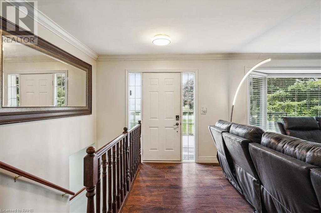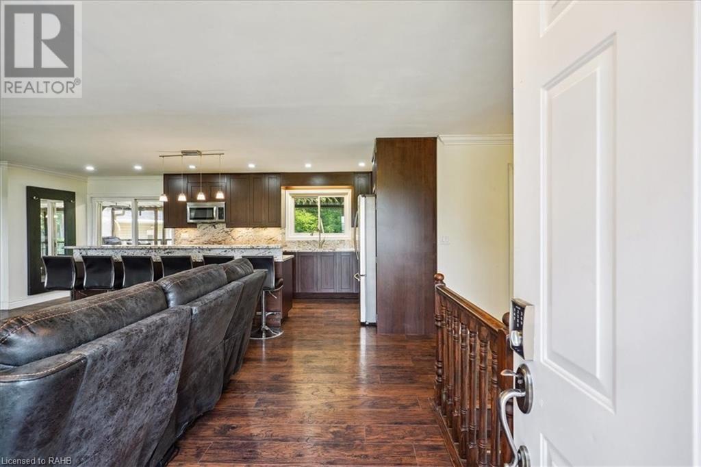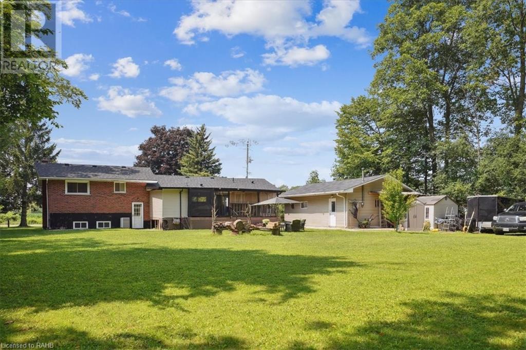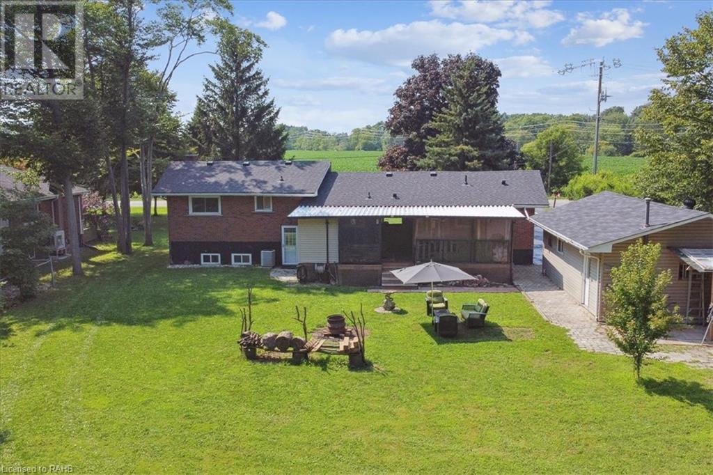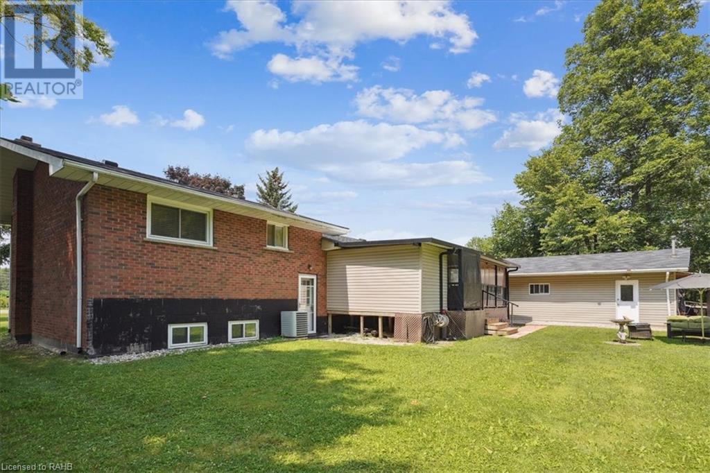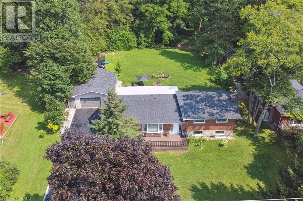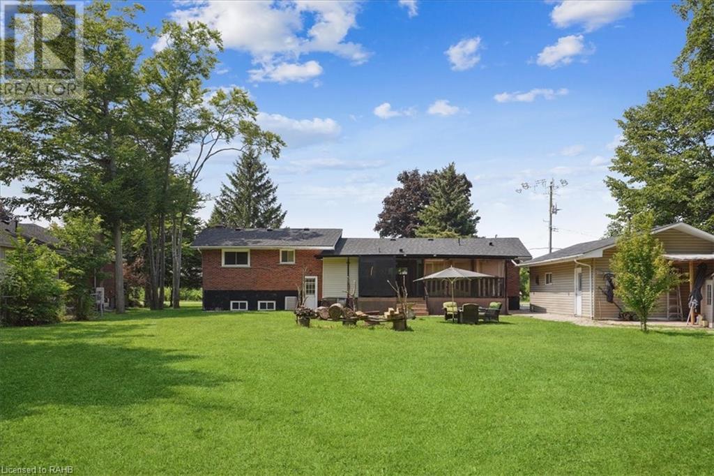 Situated on a tranquil 100x200 ft. treed lot in desirable Mount Hope, this property feels country but is in close proximity to every amenity. As you walk up the ample sized driveway to this brick home, you’ll be delighted by the large composite wood porch w/ glass railings that is facing west - perfect for relaxing & watching sunsets with only a farm crop field in sight. Inside the home, you are greeted by a warm, open-concept living space with a large bay window and an impressive kitchen boasting granite countertops & backsplash, s/s appliances & large breakfast bar island for entertaining. The main floor also hosts your laundry room, 2 pc bath, a generous sized primary bedroom with 3pc ensuite & patio door off your kitchen leading to a covered & screened-in deck. An additional 3 bedrooms and 4pc bathroom are found on the upper level, and the lower features a bright, finished rec room with an abundance of extra living space and natural light pouring in through large windows. A separate basement entrance makes for a convenient conversion for future in-law suite or income potential. Double detached garage with heat and hydro, perfect for any car enthusiast. Shed and large, covered back porch complete this serene and private backyard backing onto mature trees. Roof 2024, A/C 2023, Windows 2021, Waterproofing 2021, Electrical 2020, Floors 2020, Kitchen 2020, Bathrooms 2020, Basement 2020, Decks 2020. (id:55009)
