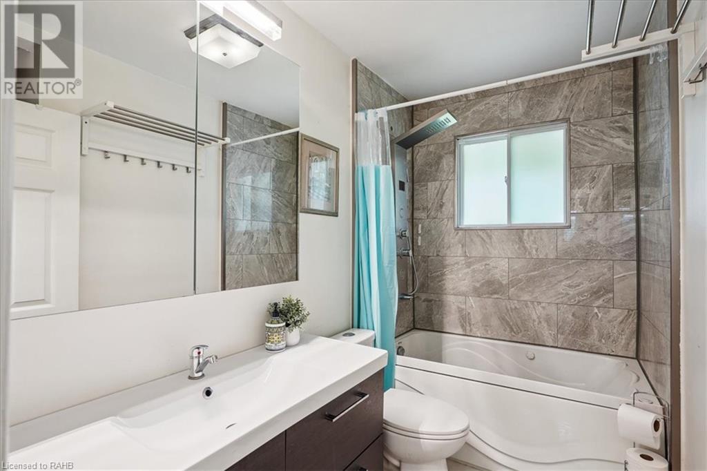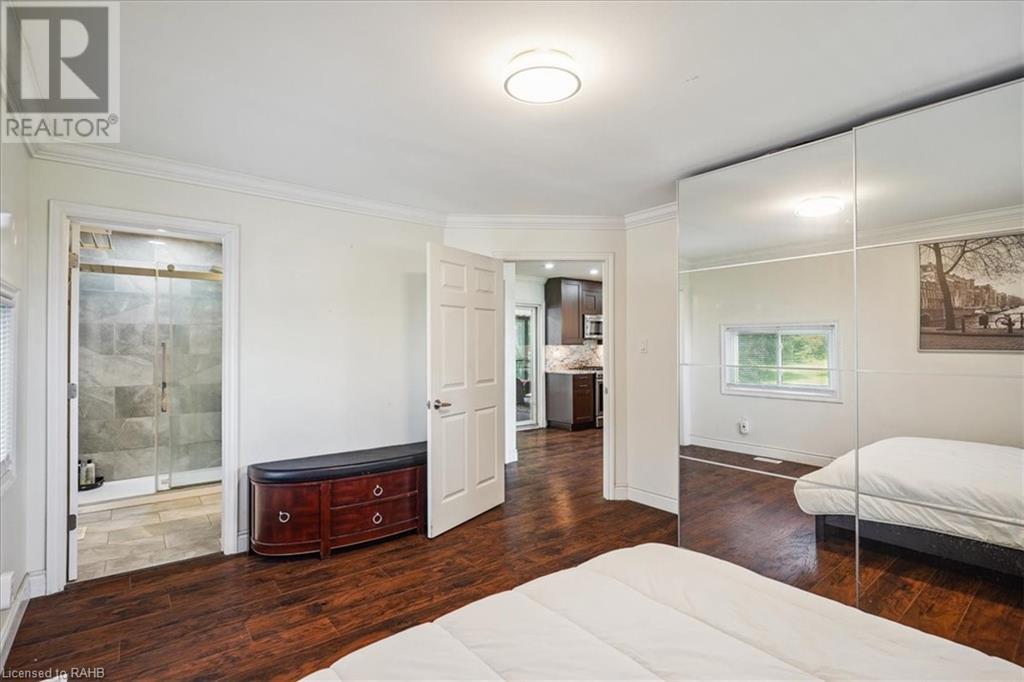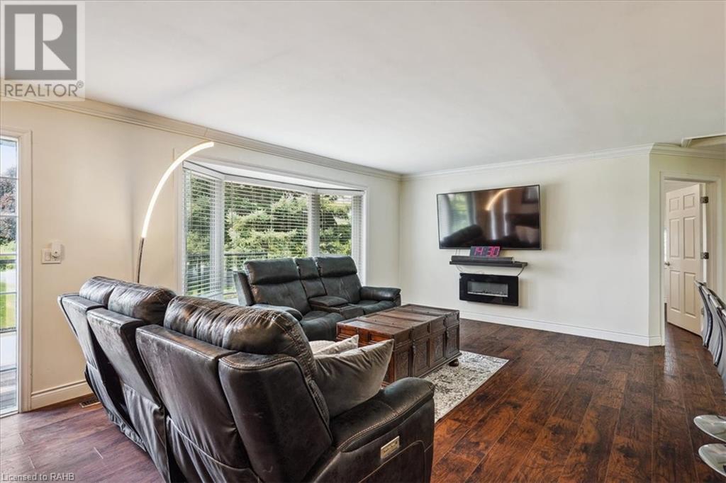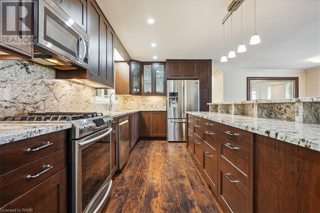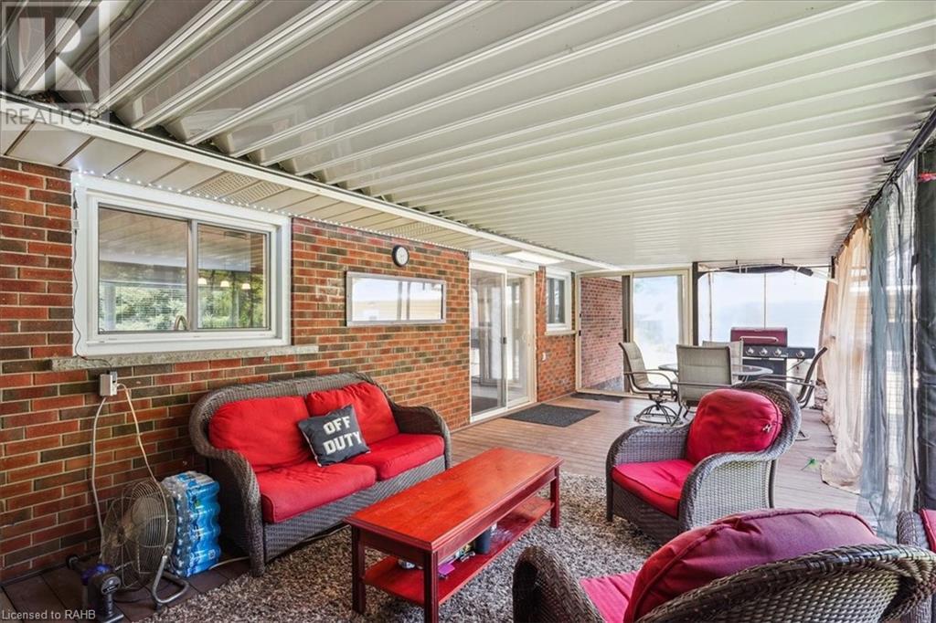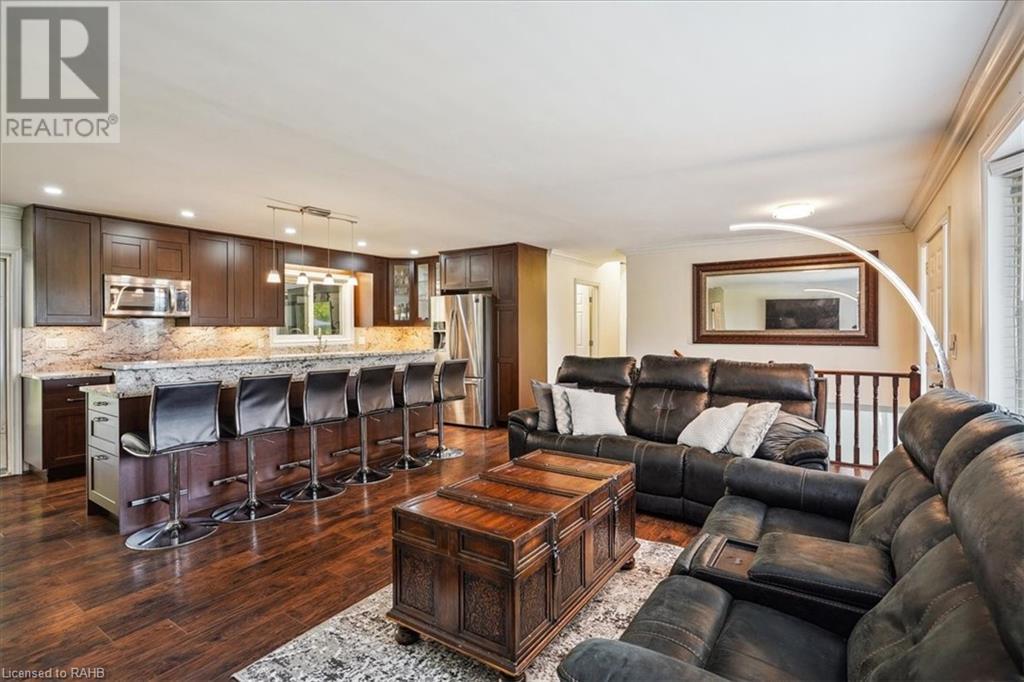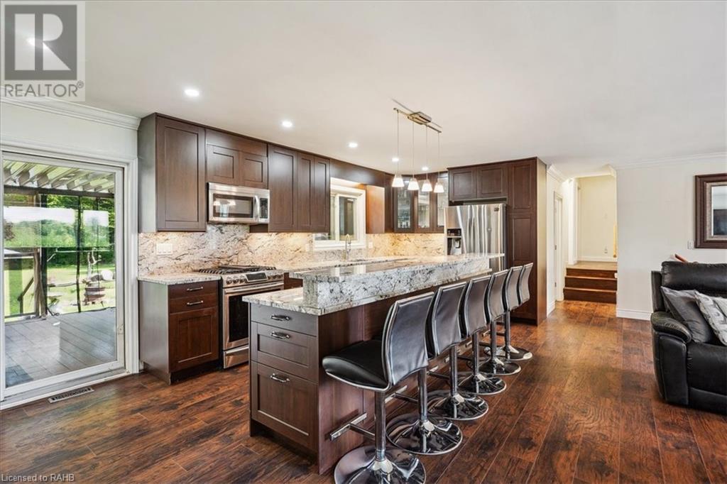 Situated on a tranquil 100x200 ft. treed lot in desirable Mount Hope, this property feels country but is in close proximity to every amenity. As you walk up the ample sized driveway to this brick home, you’ll be delighted by the large composite wood porch w/ glass railings that is facing west - perfect for relaxing & watching sunsets with only a farm crop field in sight. Inside the home, you are greeted by a warm, open-concept living space with a large bay window and an impressive kitchen boasting granite countertops & backsplash, s/s appliances & large breakfast bar island for entertaining. The main floor also hosts your laundry room, 2 pc bath, a generous sized primary bedroom with 3pc ensuite & patio door off your kitchen leading to a covered & screened-in deck. An additional 3 bedrooms and 4pc bathroom are found on the upper level, and the lower features a bright, finished rec room with an abundance of extra living space and natural light pouring in through large windows. A separate basement entrance makes for a convenient conversion for future in-law suite or income potential. Double detached garage with heat and hydro, perfect for any car enthusiast. Shed and large, covered back porch complete this serene and private backyard backing onto mature trees. Roof 2024, A/C 2023, Windows 2021, Waterproofing 2021, Electrical 2020, Floors 2020, Kitchen 2020, Bathrooms 2020, Basement 2020, Decks 2020. (id:55009)