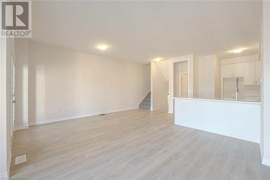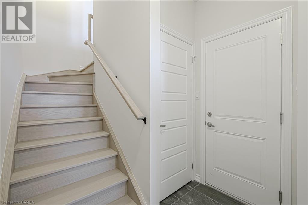 $254 MonthlyWelcome to this stunning brand new townhome located in the highly sought-after Brantwood Village complex in the north end of Brantford! This spacious 2-bedroom plus den, 2.5-bathroom, three-story condominium is perfect for growing families. As you step inside, you'll be greeted by a generous foyer featuring 2 closets, utility room, garage access, and a staircase leading to the upper level. The second floor is the heart of the home that boasts a modern open-concept kitchen, dining, and living area, with an access to the terrace, all flooded with natural sunlight, creating a warm and inviting atmosphere. A convenient 2-piece powder room is also located on this level. The third floor is designed for comfort and functionality, featuring a large primary bedroom complete with a walk-in closet and a 3-piece ensuite bathroom. You'll also find a second bedroom, a versatile den perfect for a home office or playroom, a well-appointed 4-piece bathroom, and a laundry room for added convenience. Completing this beautiful property is an attached one-car garage, providing additional storage and easy access. Ideally located close to Highway 403, shopping, schools, trails, and a variety of amenities that Brantford has to offer, this townhouse is a must-see! Book your private showing today and discover your new home! (id:55009)