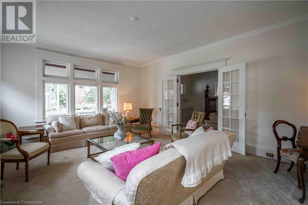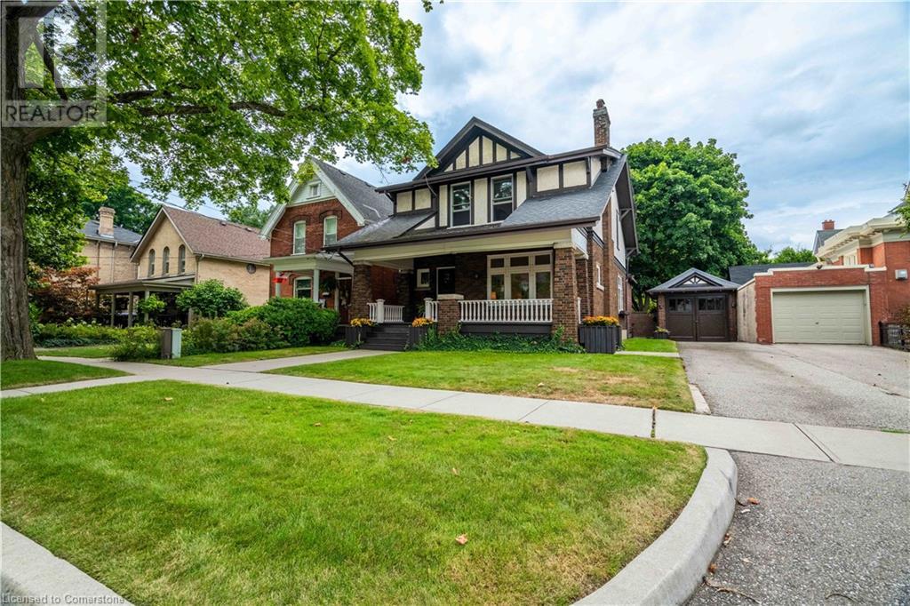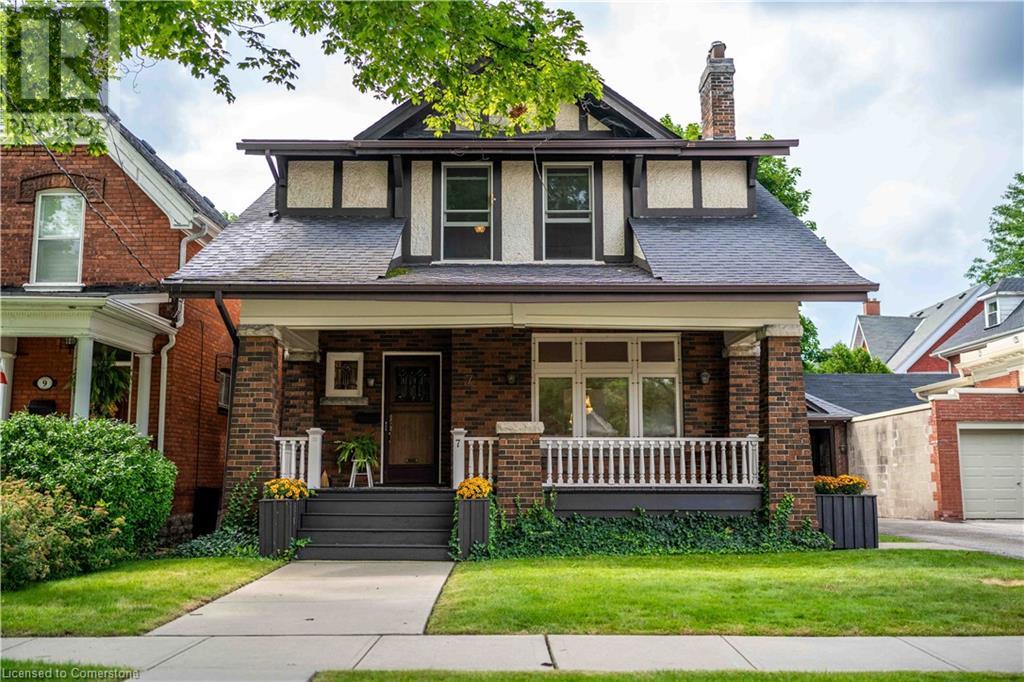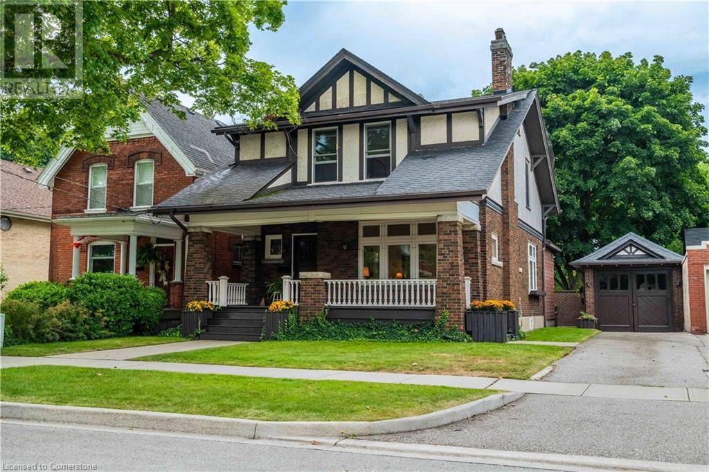 Welcome to 7 Chestnut Avenue in Brantford. This century home is tucked into a quiet corner of the historic Dufferin neighbourhood. An all brick, Tutor style four bedroom family residence with detached brick garage. Meticulously and lovingly maintained by the same family for the last 58 years, this house has incredible finishes and exceptional features. Enjoy coffee on the wide front veranda or meals in the backyard surrounded by a charming brick wall. When you walk into the foyer of this graceful home, you will be amazed at the open feel and the timeless beauty of the space. The preserved gum wood trim, the dentil molding, leaded glass, a stained window are elements that make this home stand out. Hardwood floors are hidden under the carpets ready for you to uncover their stately elegance. The large living room with wood burning fireplace and a sunken sun room off the eat-in kitchen are both perfect areas to gather with family. Upstairs, you will find four bedrooms with ample closet space as well as a 3-piece washroom with clawfoot tub. The basement is finished and features a two-piece bathroom, laundry, office area, workshop and cold cellar. Location of this home is perfect being a block away from Dufferin Park and within walking distance, of the hospital, public schools, a high school and a large trail system. (id:55009)