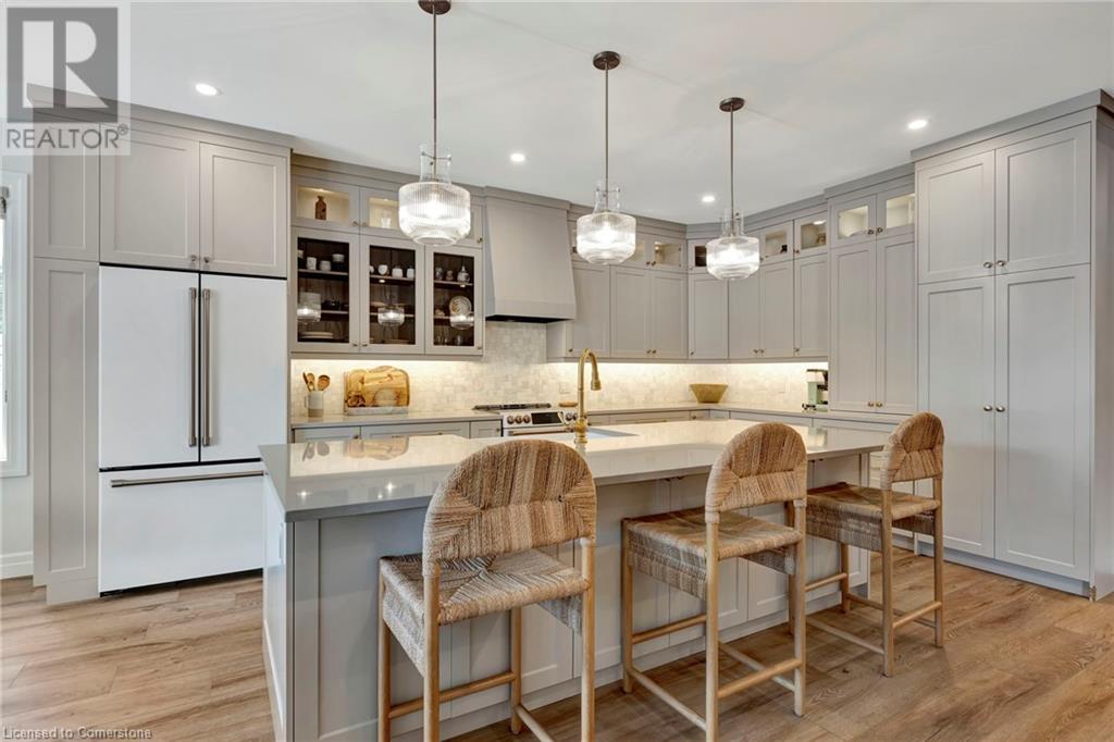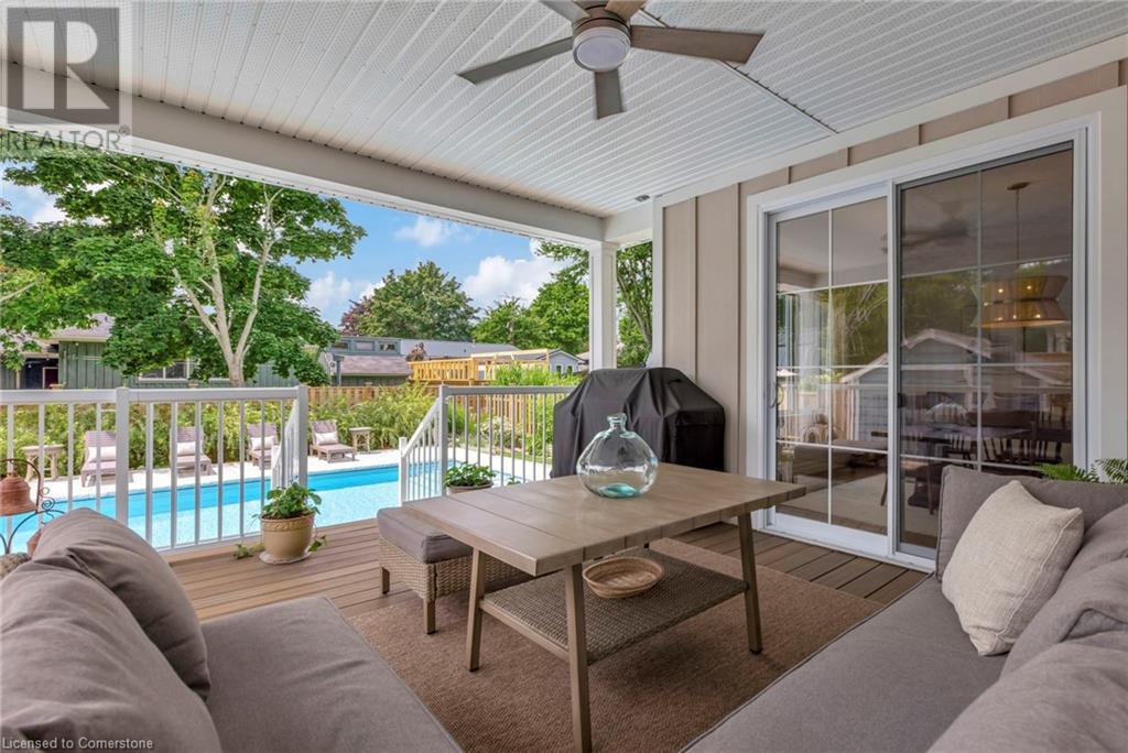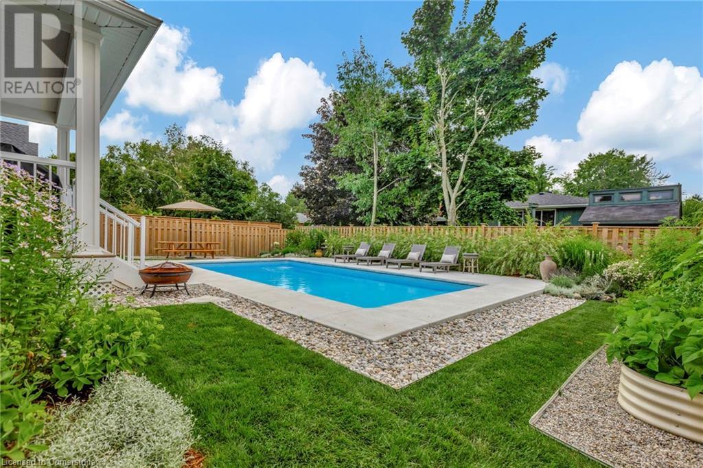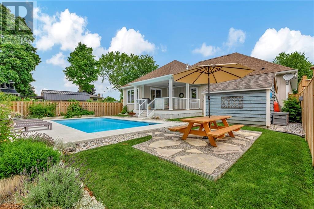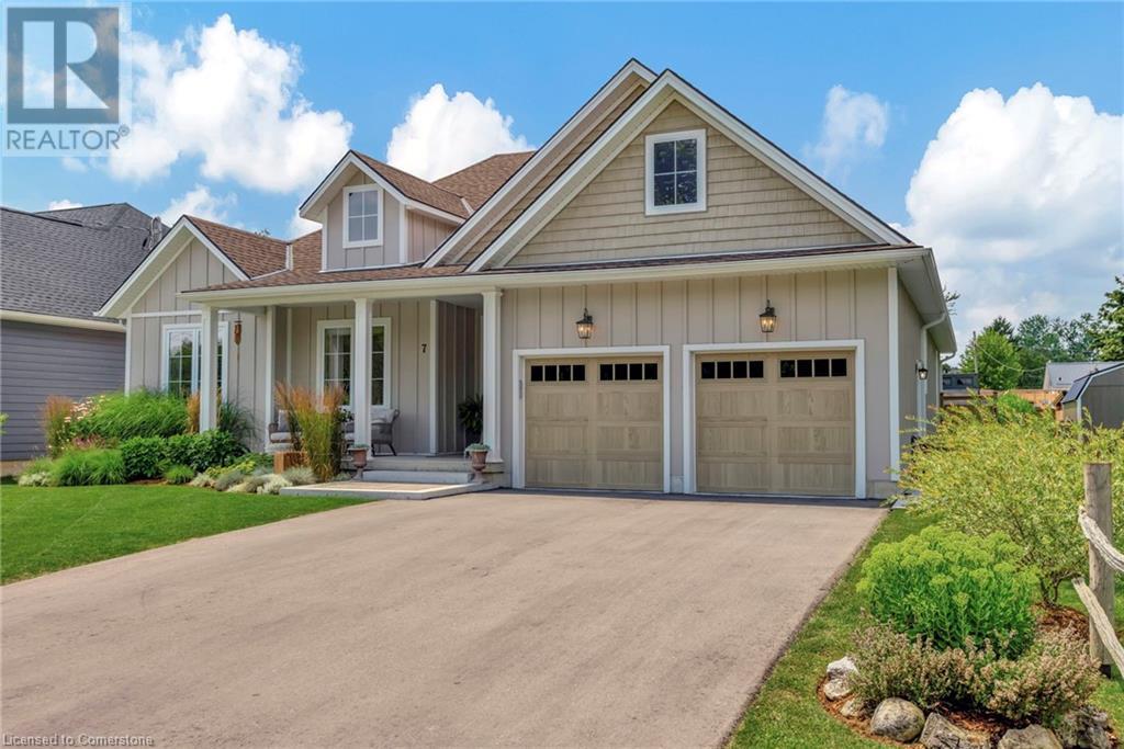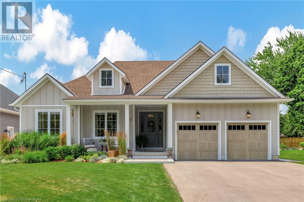 Welcome to 7 East St N, Port Dover – a stunning, custom-built bungalow completed in 2022. Spanning 1,973 square feet, this elegant residence boasts three spacious bedrooms and two luxurious bathrooms, offering modern comforts in a stylish setting. The home features high-end upgrades such as a James Hardie board and batten exterior, 8’ exterior doors, and an open-concept living room with raised ceilings and a stunning stone gas fireplace. The kitchen is a chef's dream, equipped with designer appliances, an induction range, custom cabinetry, and a massive island. Luxury vinyl flooring and high-end plumbing and lighting fixtures are found throughout the home, ensuring every detail is perfectly curated. The primary bedroom offers a tranquil retreat with a walk-in closet featuring built-in cabinets and a gorgeous ensuite bathroom. Additional conveniences include main floor laundry, central vac, insulation added to some interior walls, solid core interior doors, and automated lighting. Step outside to a large, covered porch with composite decking that leads to a professionally landscaped, low-maintenance backyard featuring a heated saltwater pool and irrigation system. The front porch offers a serene, park-like view, while the two-car garage provides ample storage. Located centrally in Port Dover, this beautiful home is close to Lake Erie beaches, schools, parks, golf courses, and restaurants. Don't miss the opportunity to make this exquisite home yours! (id:55009)