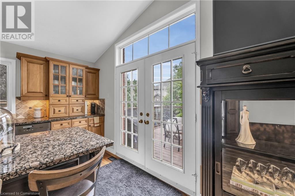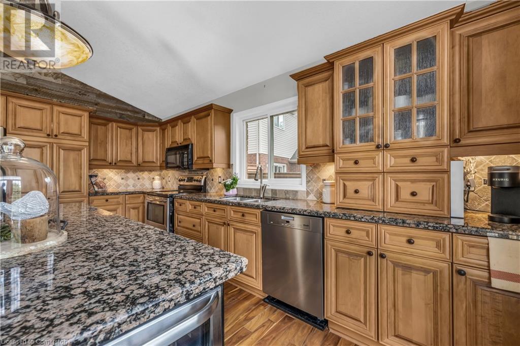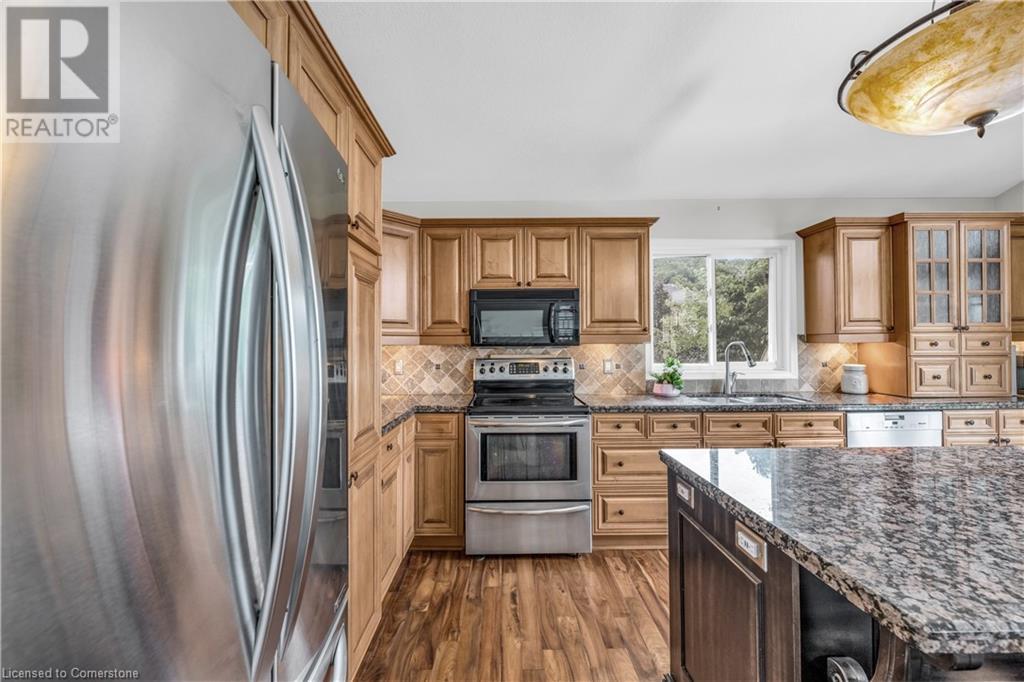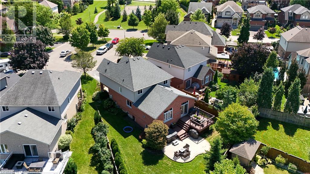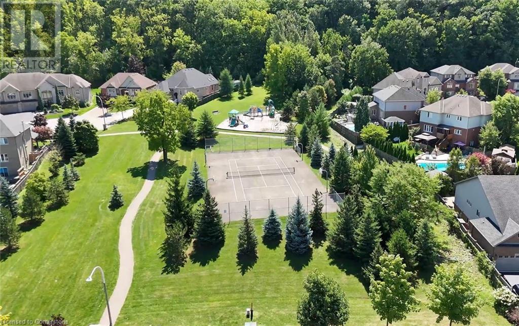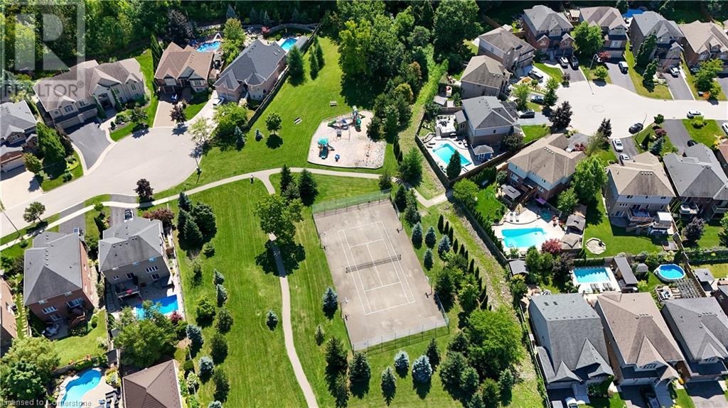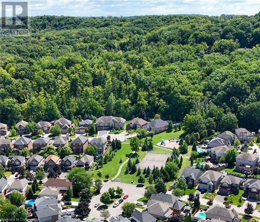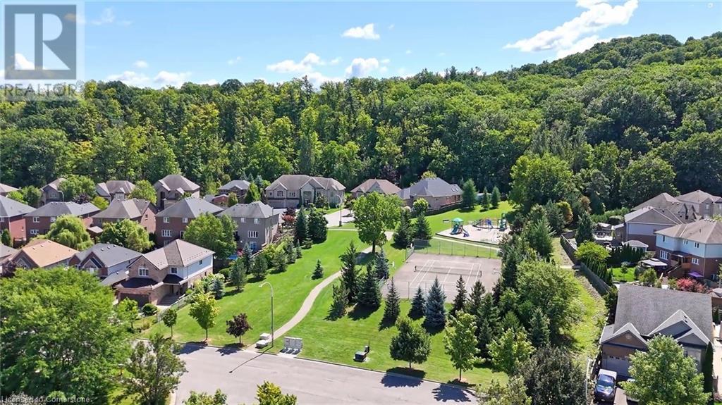 FABULOUS EXECUTIVE HOME on quiet court location with large pie-shaped property across from picturesque park that backs onto the Escarpment. Spacious gourmet kitchen with abundant cabinetry, large island, granite counters and stainless steel appliances. Bright main floor family room open to kitchen, with soaring ceilings, wall-to-wall cabinets, gas fireplace, and wonderful escarpment views. Formal dining room, main floor home office. Primary bedroom on second level with walk-in closet and spa-like bath. Upper-level laundry room. Fully finished lower level with large windows and inviting open concept design, great for multi-generational lifestyle. Double doors from kitchen lead to private backyard oasis with breathtaking escarpment views. OTHER FEATURES INCLUDE: 4 baths, C/Air, C/Vac, washer, dryer, kitchen appliances, window treatments, hot tub, garden shed, long paved double drive to accommodate 6 vehicles, 2 car garage. Location! Location! (id:55009)