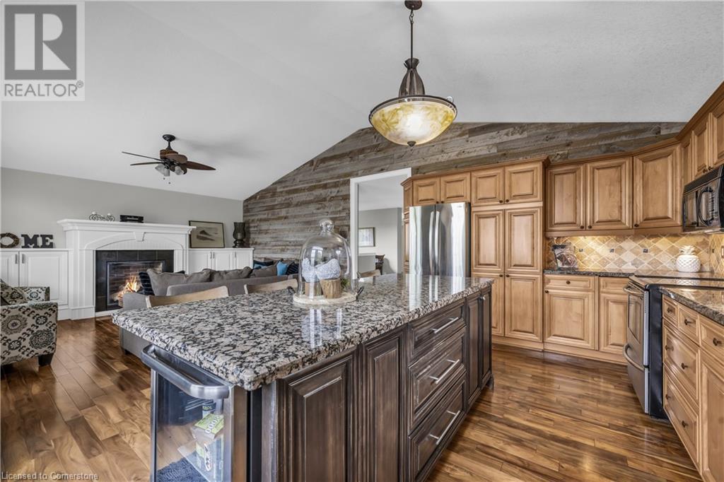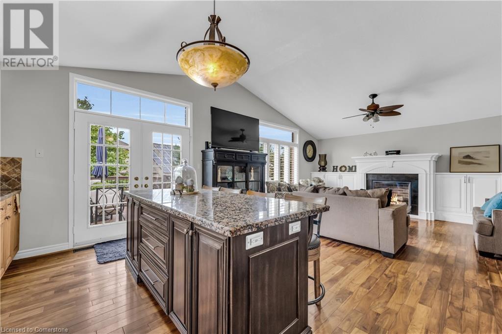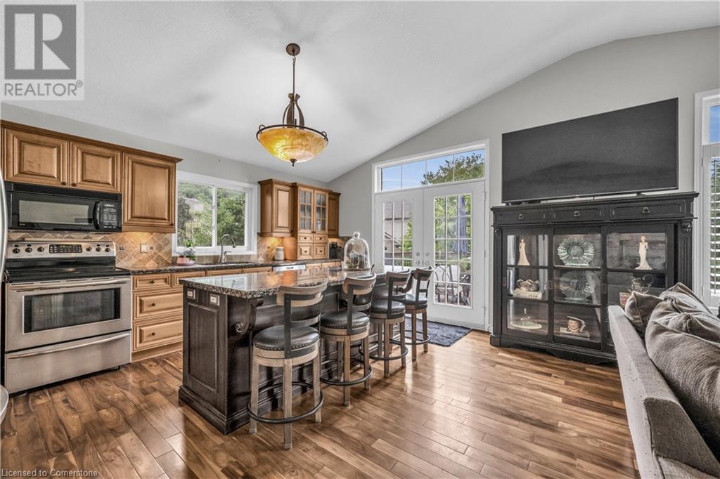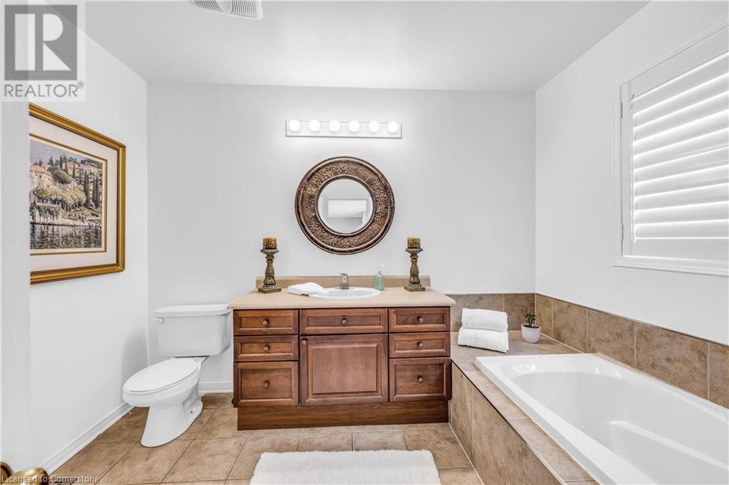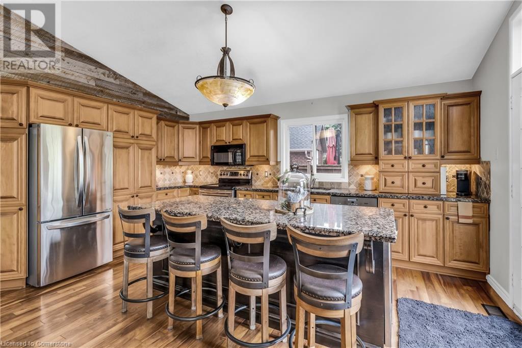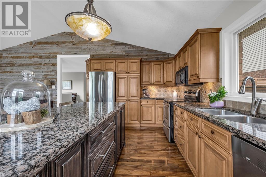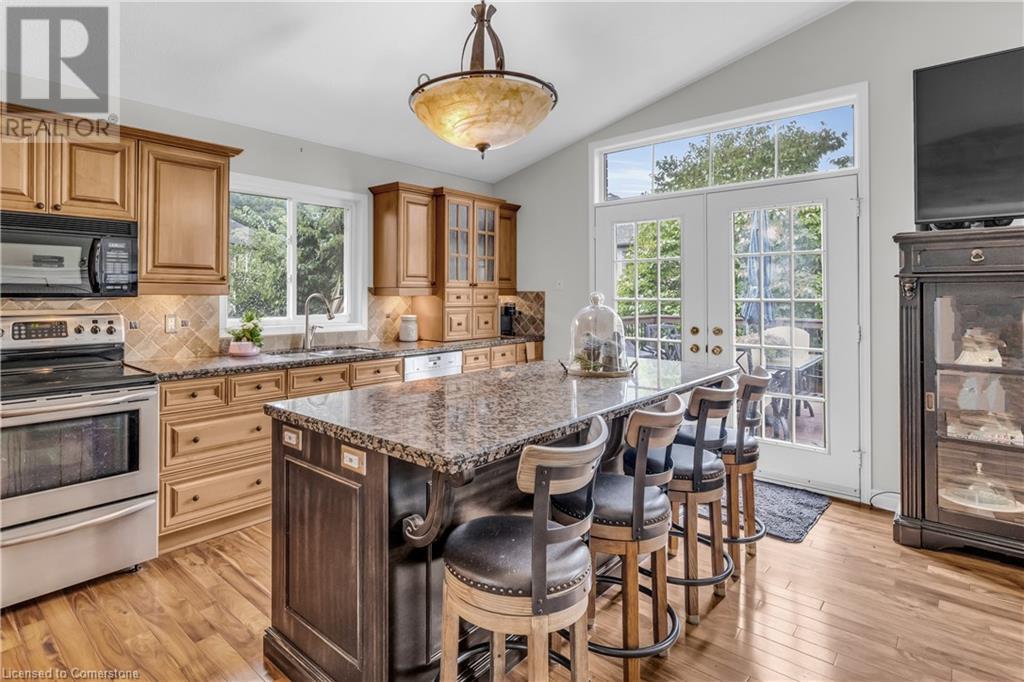 FABULOUS EXECUTIVE HOME on quiet court location with large pie-shaped property across from picturesque park that backs onto the Escarpment. Spacious gourmet kitchen with abundant cabinetry, large island, granite counters and stainless steel appliances. Bright main floor family room open to kitchen, with soaring ceilings, wall-to-wall cabinets, gas fireplace, and wonderful escarpment views. Formal dining room, main floor home office. Primary bedroom on second level with walk-in closet and spa-like bath. Upper-level laundry room. Fully finished lower level with large windows and inviting open concept design, great for multi-generational lifestyle. Double doors from kitchen lead to private backyard oasis with breathtaking escarpment views. OTHER FEATURES INCLUDE: 4 baths, C/Air, C/Vac, washer, dryer, kitchen appliances, window treatments, hot tub, garden shed, long paved double drive to accommodate 6 vehicles, 2 car garage. Location! Location! (id:55009)