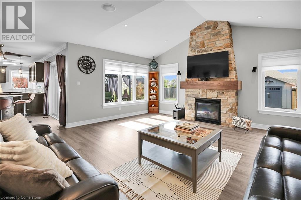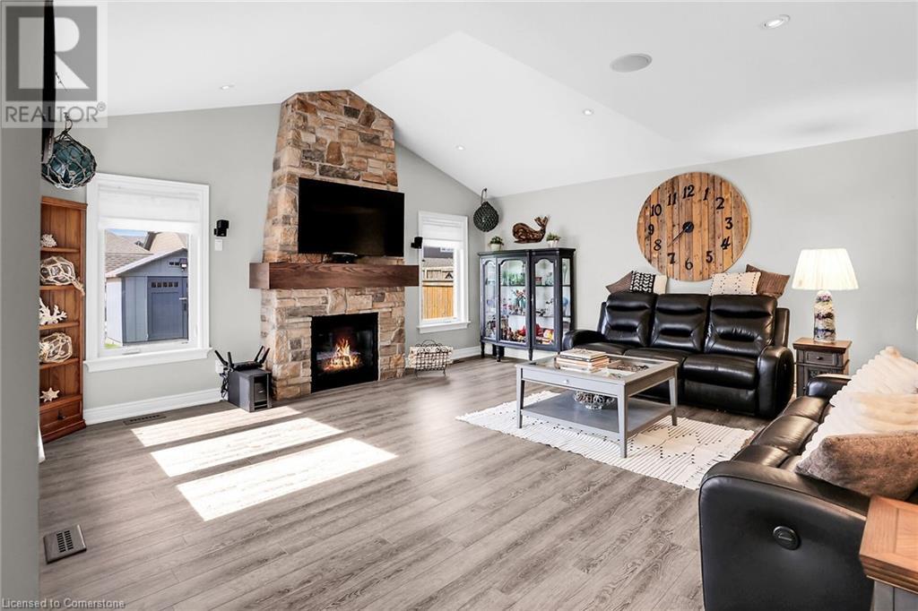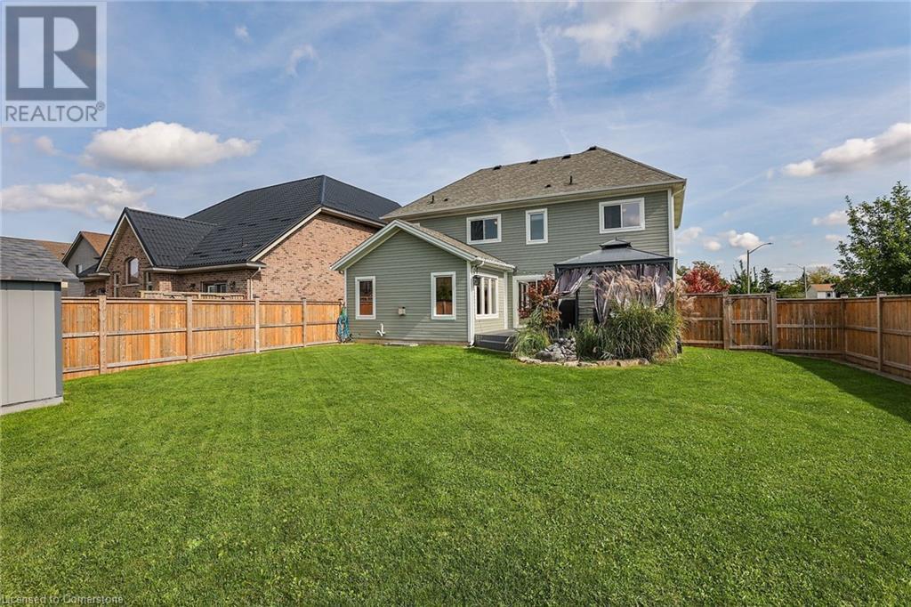 Amazing 2 storey home with 4+1 beds and 3 baths right in the middle of Smithville. Very well cared for and located in a nice quality neighbourhood surrounded by million dollar homes. Once you arrive at the property, you will notice it's incredible curb appeal and landscaped large corner lot. Once inside, the home flows nicely with open concept main floor living consisting of an eat-in Kitchen with stainless steel appliances and big beautiful windows, a comfy dining room/sitting room, a powder room, large and updated laundry/mud room with access from garage and to the side yard, a huge family room with Cathedral ceilings, big windows, a stone wall fireplace and has easy access to the back yard with a sizable wood deck and large pool sized fenced-in yard with shed, perfect for family meals and entertaining friends. The upstairs consists of 4 large bedrooms and a main bathroom with it's primary bedroom equipped with big walk-in closet and ensuite bath giving it plenty of room for the whole family. Functional double garage with hot/cold water and EV outlet! This property is close to schools, parks, places of worship and shopping. This Phelps built home is stunning, has lots of upgrades throughout and is only 10 years old. This is the one you have been waiting for, make sure you come see it today! (id:55009)