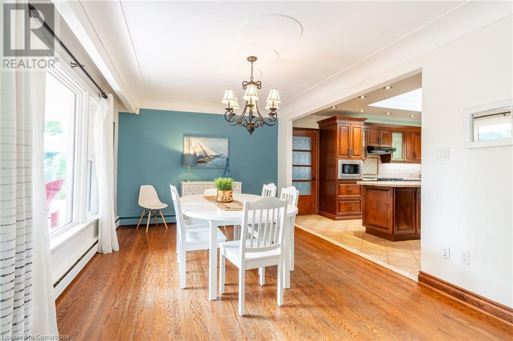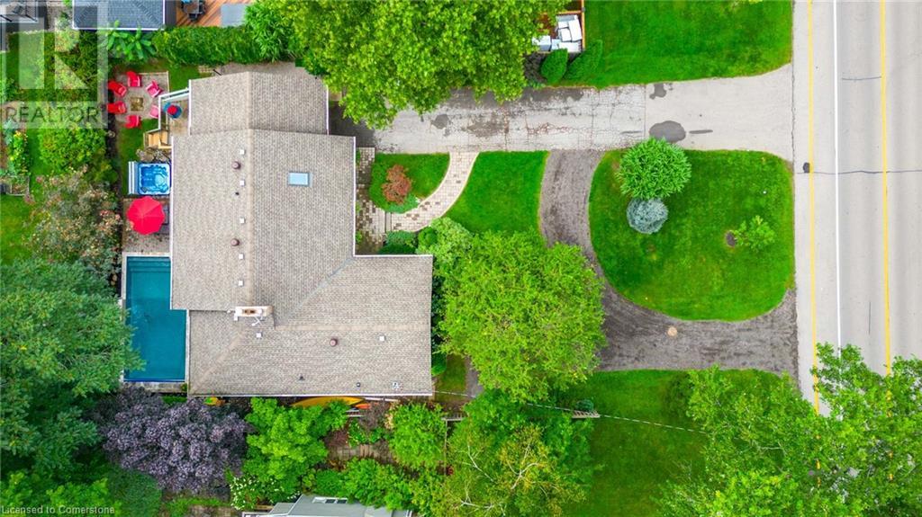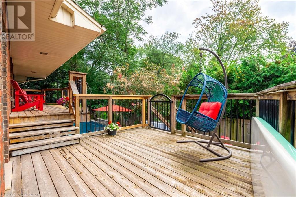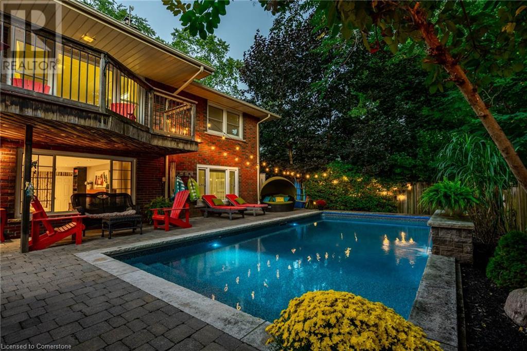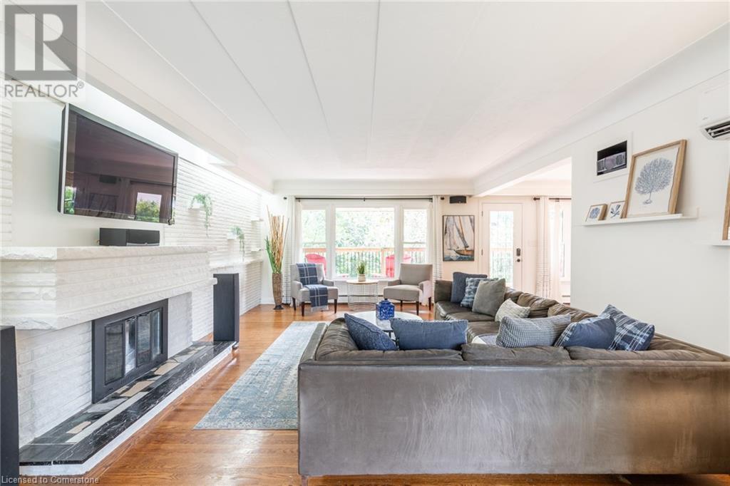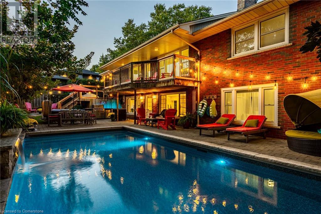 Discover this beautiful bungalow featuring 3+1 beds & 3 baths nestled in the desirable South Aldershot with a rare circular driveway accommodating 10+ vehicles. Step inside to find a custom kitchen adorned with ceramic tiles, granite countertops, & a large island, bathed in natural light from a generous skylight. This culinary haven flows seamlessly into an expansive dining room, perfect for hosting family gatherings or entertaining friends. The mid-century modern living room is a true retreat with a walkout to the back deck, a cozy wood fireplace & details like a whitewashed brick wall & original oak hardwood flooring. The spacious primary bed featuring a 3pc ensuite & double closets, complemented by two additional well-sized beds & a 4pc main bath on the main level. Venture downstairs to discover a vast rec room with a wood stove & walkout to the backyard. The additional bedroom includes a walk-through closet and a 3pc bath along with a separate office/den space overlooking the tranquil backyard. A full kitchenette & laundry area make this level perfect for an in-law suite. The backyard is an entertainer's paradise featuring a stunning custom pool with waterfall a motorized retractable cover, ambient lighting, hot tub, dining patio, & firepit area-ideal for summer night fun. Conveniently located near all amenities: dining, shopping, excellent schools, Lake Ontario, downtown Burlington, Aldershot GO & easy access to the QEW/403 & highway 6. Don’t be TOO LATE*! *REG TM. RSA. (id:55009)