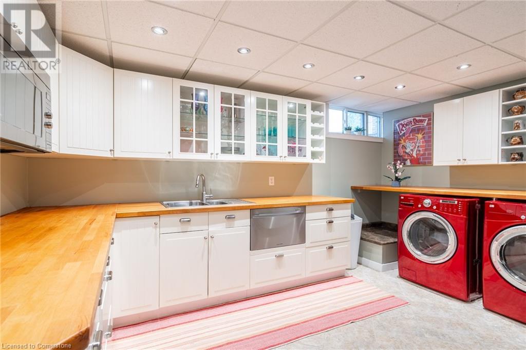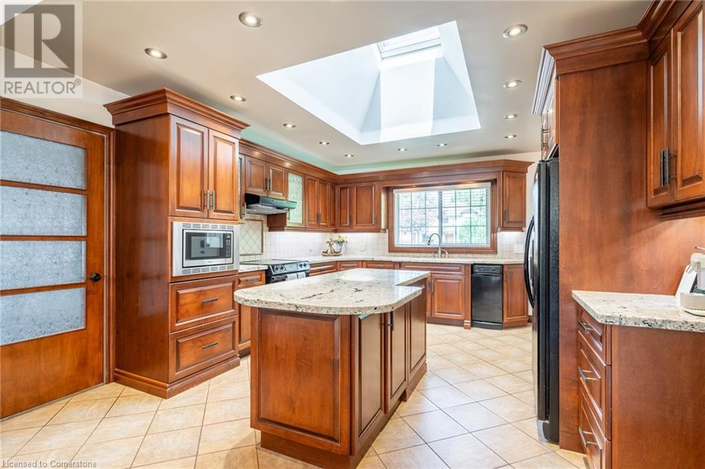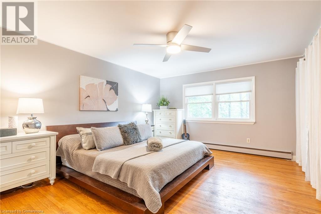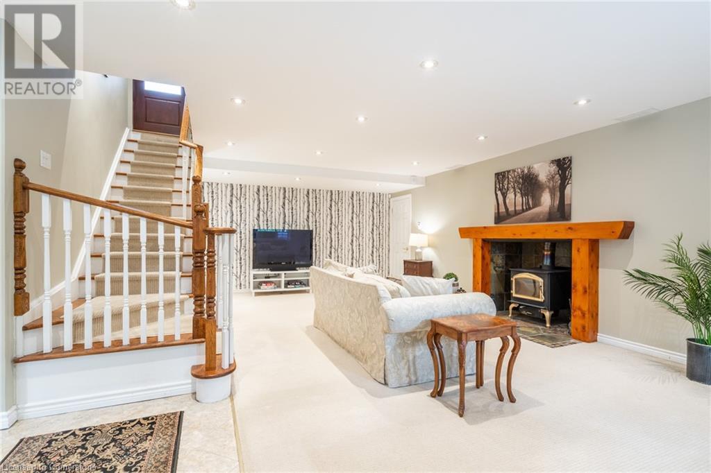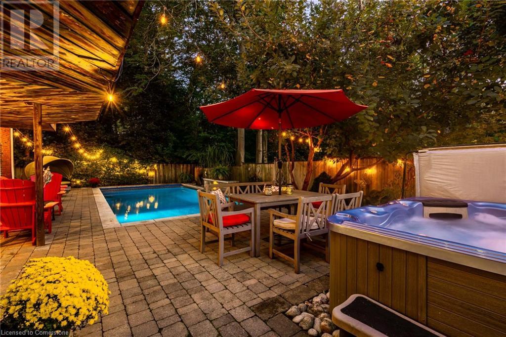 Discover this beautiful bungalow featuring 3+1 beds & 3 baths nestled in the desirable South Aldershot with a rare circular driveway accommodating 10+ vehicles. Step inside to find a custom kitchen adorned with ceramic tiles, granite countertops, & a large island, bathed in natural light from a generous skylight. This culinary haven flows seamlessly into an expansive dining room, perfect for hosting family gatherings or entertaining friends. The mid-century modern living room is a true retreat with a walkout to the back deck, a cozy wood fireplace & details like a whitewashed brick wall & original oak hardwood flooring. The spacious primary bed featuring a 3pc ensuite & double closets, complemented by two additional well-sized beds & a 4pc main bath on the main level. Venture downstairs to discover a vast rec room with a wood stove & walkout to the backyard. The additional bedroom includes a walk-through closet and a 3pc bath along with a separate office/den space overlooking the tranquil backyard. A full kitchenette & laundry area make this level perfect for an in-law suite. The backyard is an entertainer's paradise featuring a stunning custom pool with waterfall a motorized retractable cover, ambient lighting, hot tub, dining patio, & firepit area-ideal for summer night fun. Conveniently located near all amenities: dining, shopping, excellent schools, Lake Ontario, downtown Burlington, Aldershot GO & easy access to the QEW/403 & highway 6. Don’t be TOO LATE*! *REG TM. RSA. (id:55009)