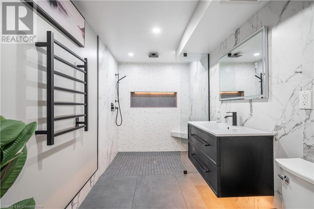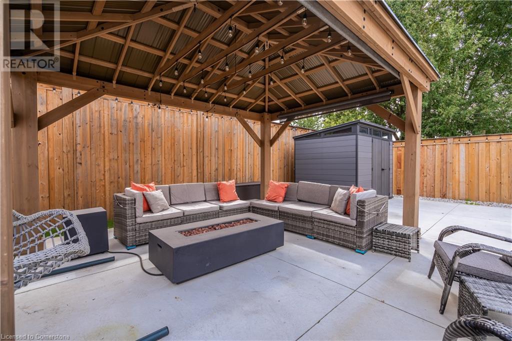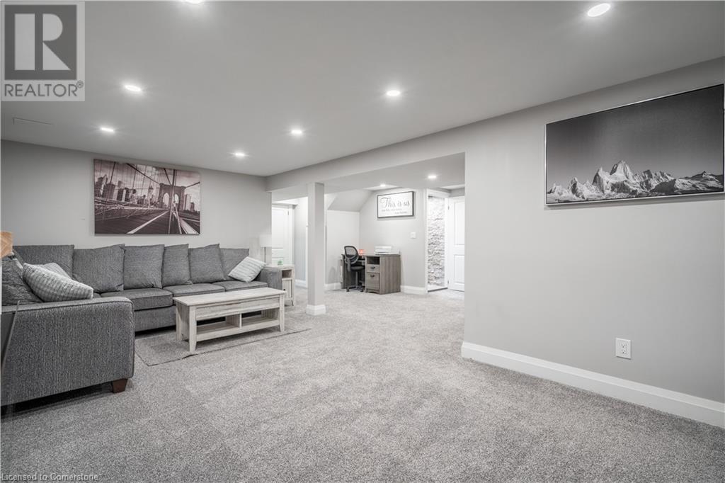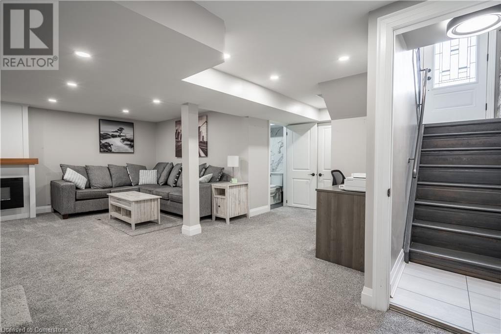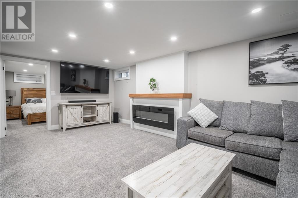 Located on a quiet Crescent in the family-friendly Lawfield neighbourhood, this raised bungalow has impressive curb appeal. Entering within the foyer, you will be warmly welcomed by a stone accent wall before heading up into the living/dining that is flooded with bay window's natural light. The main floor consists of a living/dining, kitchen, 3 good-sized bedrooms, and a 4 piece bath. Making your way downstairs, you will find a fully renovated lower level w/ a large rec room w/ fireplace, bedroom w/ massive walk-in closet, 3 piece bath w/ heated floors, oversized laundry room and separate entrance up to sunroom for potential in-law suite. Finish your days off and enjoy weekends in the backyard oasis, an entertainer's and golfer's dream with a large cabana and putting greens! Just minutes away from schools, shopping, highway access, amenities and more. Sq Ft Approximate. (id:55009)