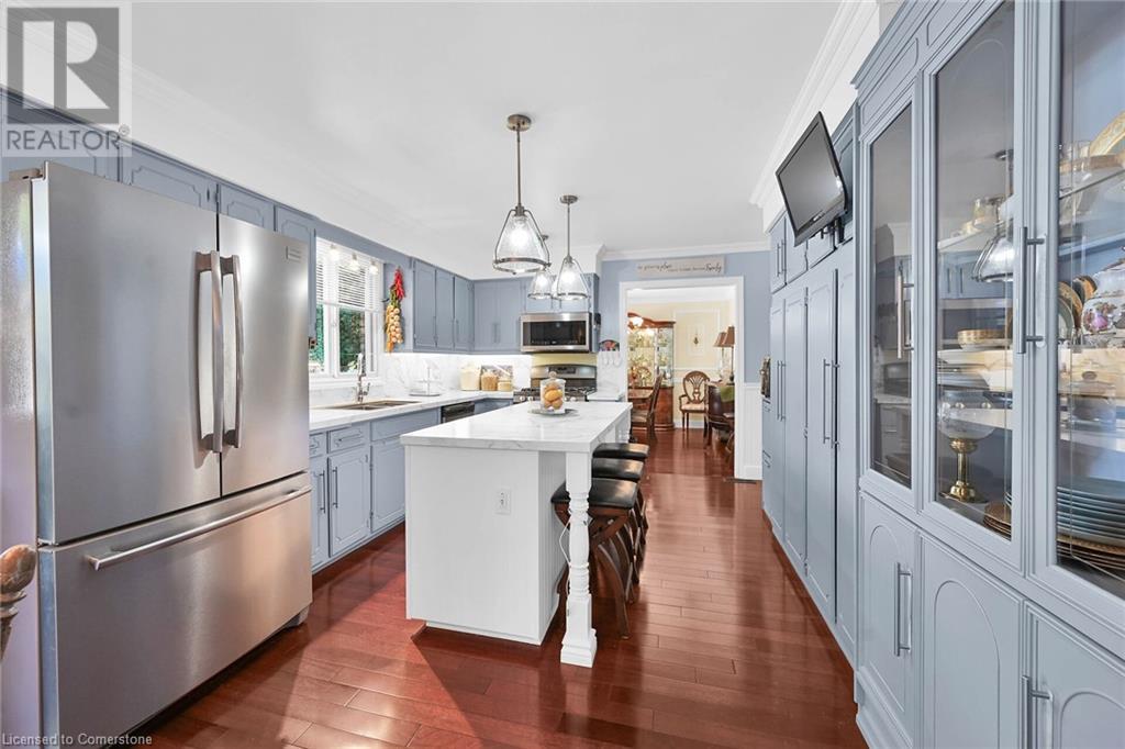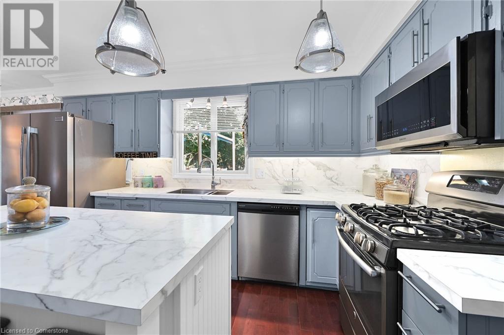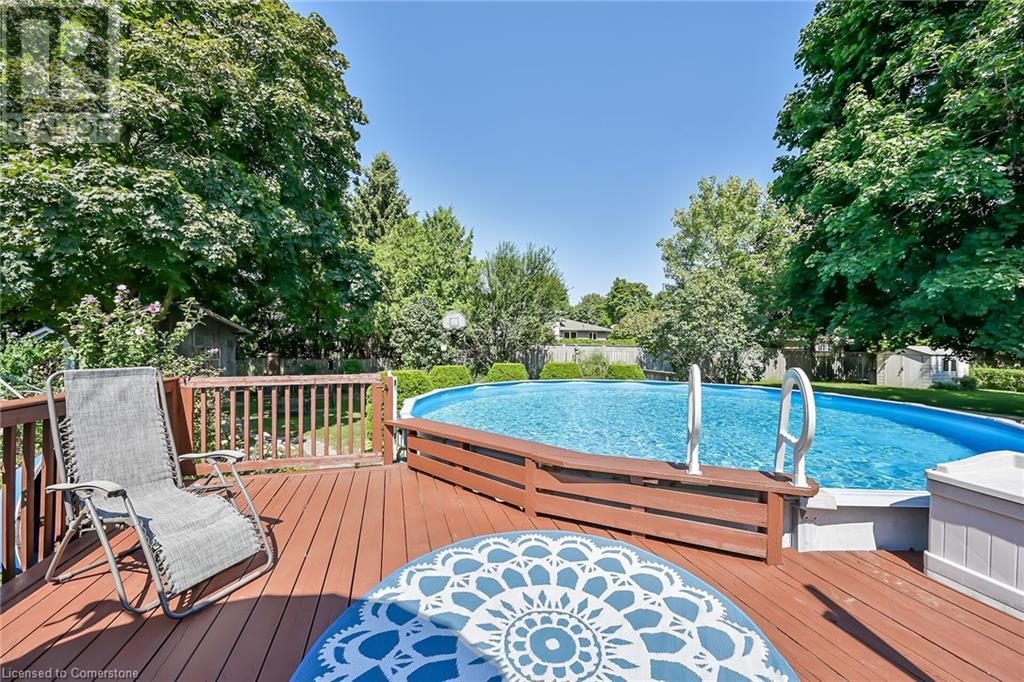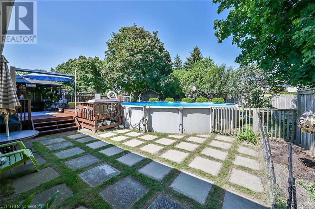 Welcome To This Lovingly Cared for Family Home! Featuring an oversize treed property with mature landscaping (69 x 134) & a new steel roof in 2023. Before entering, take a moment to sit on the front porch to appreciate the front gardens. As you open the front door you see the stunning Brazilian Cherry hardwood that flows throughout this home. But wait, be sure to check out the “hidden wall shoe storage unit” in the foyer. Inside there’s lots of family & entertaining spaces..living room, family room and lower recreation room. Outside there’s a poolside open deck & lower patio, a private gazebo for “quiet me time” & lots of space for children & pets to run & play while you sit & relax in the shade of the large tree. The eat in kitchen has been modernized & extra cabinets added. The 6 ft island and pantries are a must for family living. The kitchen opens to the dining room which could be a flex room. There’s 4 bedrooms with ensuite privileges to the primary bedroom. The custom closets, storage units & wardrobe in the bedrooms are included. Both bathrooms have been totally remodelled for a pleasing modern look. Interior doors & baseboard replaced. Crown moulding added. 6 windows replaced(4-front, 2-back). Furnace & central air-2017. Appliances included. Large cold room. Double wide driveway. The 1.5 garage gives you extra storage or workshop space. Schools & parks are nearby. Just a short walk to public & high schools. Be sure to add this home to your “Must See” list. (id:55009)