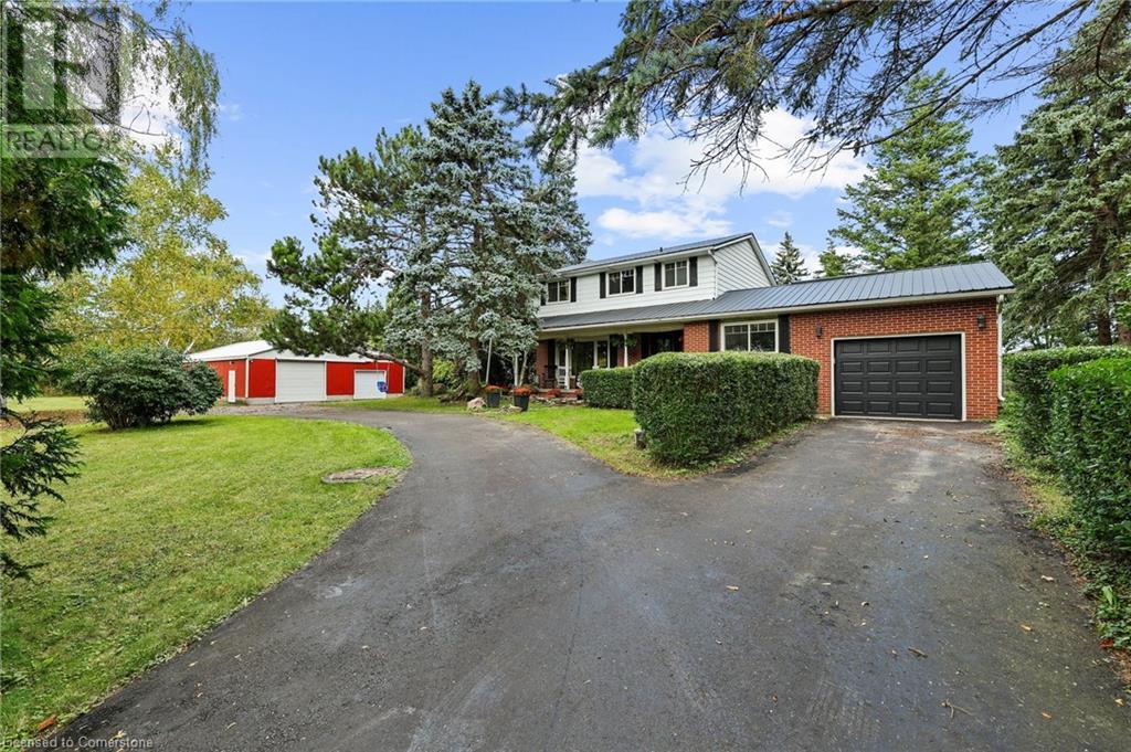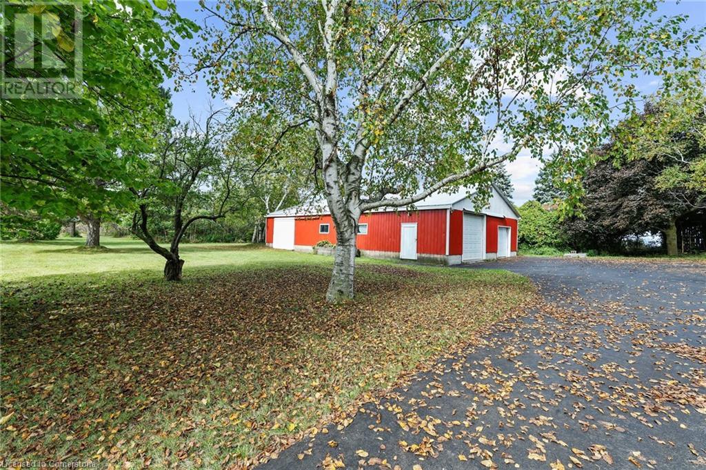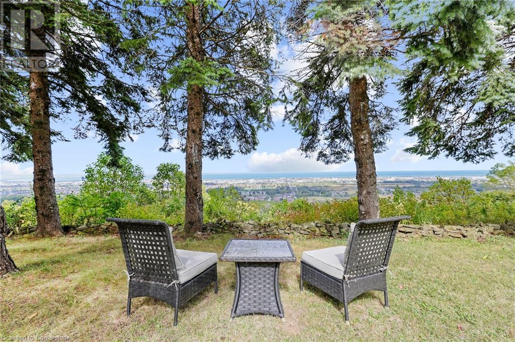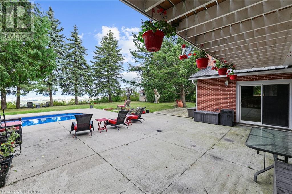 SPECTACULAR ESCARPMENT VIEWS! Over 600 feet of property along the ridge of the escarpment providing panoramic views overlooking Stoney Creek & Lake Ontario. This 2.25 acre one of a kind property features a : family Home with an inground Pool, a huge hangar Barn , undisturbed forested areas, walking paths and absolute privacy. The house is a 2 story 3 bedroom home with a single garage & inside entry. A welcoming front porch sets the tone for this country living home just minutes to all the amenities of Stoney creek. The white gloss kitchen features granite counters, built in stove top , built in oven & microwave and pantry. The family room features a wood burning Fireplace & walk out to the spacious concrete patio & inground salt water pool. A separate living room, dining room, 3pc bathroom, Laundry room & mud room complete the main level. The upper floor features a lovely master bedroom with built in closets, a 2 pc bathroom & it's own walk out to a large private deck overlooking the yard & escarpment. 2 additional bedrooms & a 4pc bathroom complete the upper level. The basement is partially finished with a large Recreation Room & ample storage. Metal roof 2019, Windows 2019. The huge Hangar barn measures 60' X 35' with metal siding & metal roof. It has no interior posts allowing for many uses or configurations . The barn has hydro and a separate back area for a workshop or storage. Don't miss out on this unique property! (id:55009)