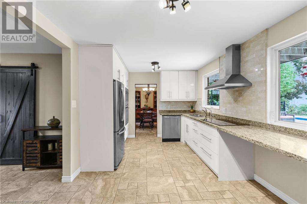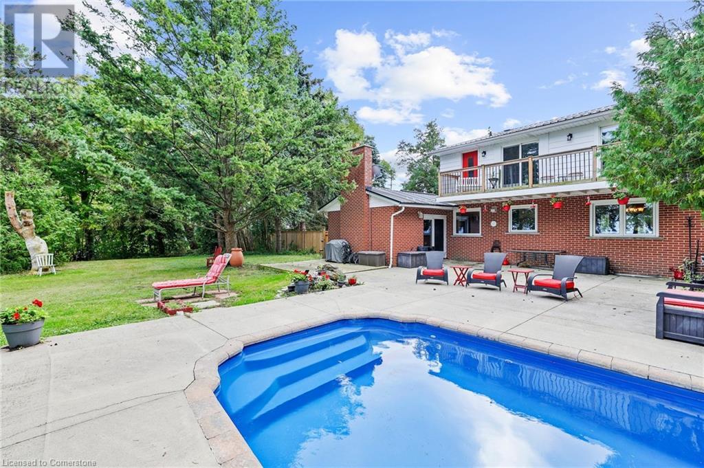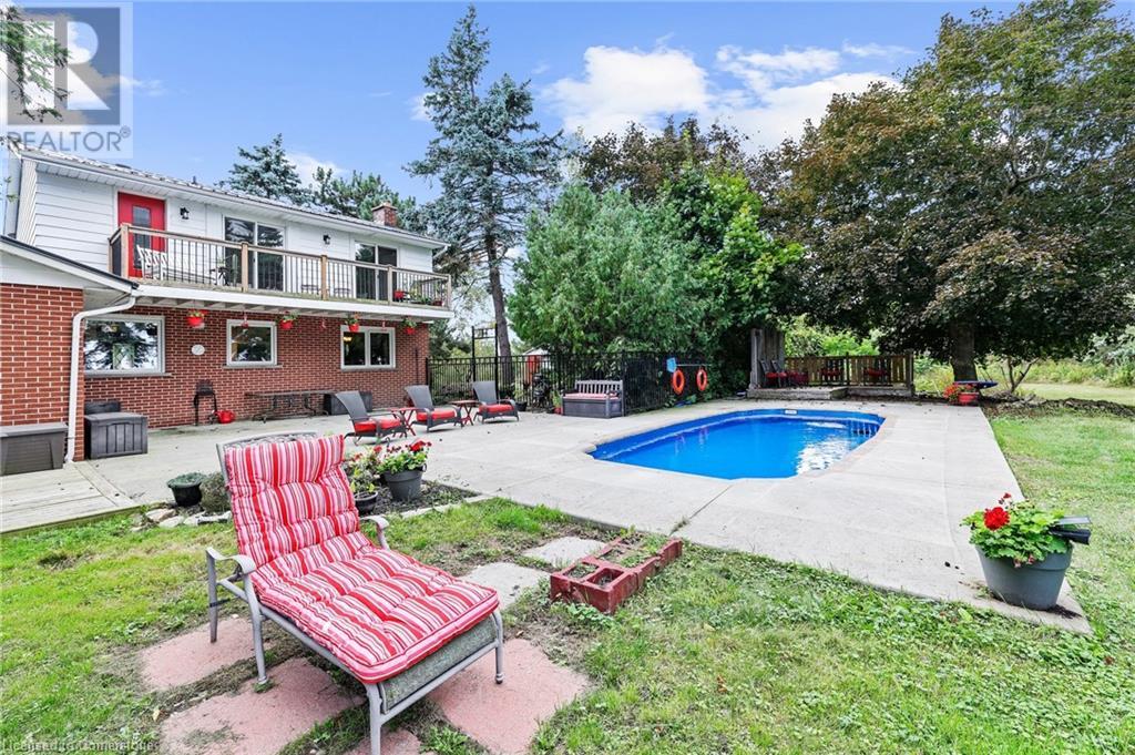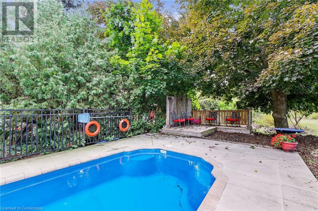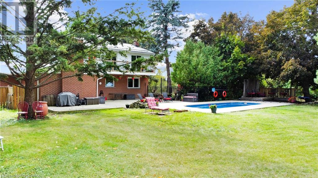 SPECTACULAR ESCARPMENT VIEWS! Over 600 feet of property along the ridge of the escarpment providing panoramic views overlooking Stoney Creek & Lake Ontario. This 2.25 acre one of a kind property features a : family Home with an inground Pool, a huge hangar Barn , undisturbed forested areas, walking paths and absolute privacy. The house is a 2 story 3 bedroom home with a single garage & inside entry. A welcoming front porch sets the tone for this country living home just minutes to all the amenities of Stoney creek. The white gloss kitchen features granite counters, built in stove top , built in oven & microwave and pantry. The family room features a wood burning Fireplace & walk out to the spacious concrete patio & inground salt water pool. A separate living room, dining room, 3pc bathroom, Laundry room & mud room complete the main level. The upper floor features a lovely master bedroom with built in closets, a 2 pc bathroom & it's own walk out to a large private deck overlooking the yard & escarpment. 2 additional bedrooms & a 4pc bathroom complete the upper level. The basement is partially finished with a large Recreation Room & ample storage. Metal roof 2019, Windows 2019. The huge Hangar barn measures 60' X 35' with metal siding & metal roof. It has no interior posts allowing for many uses or configurations . The barn has hydro and a separate back area for a workshop or storage. Don't miss out on this unique property! (id:55009)