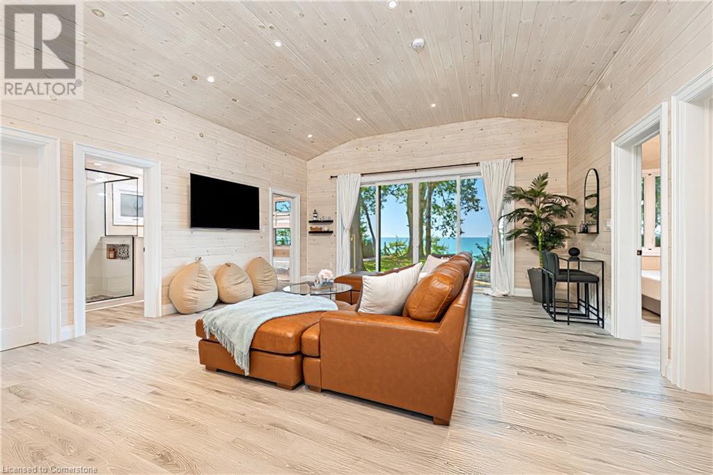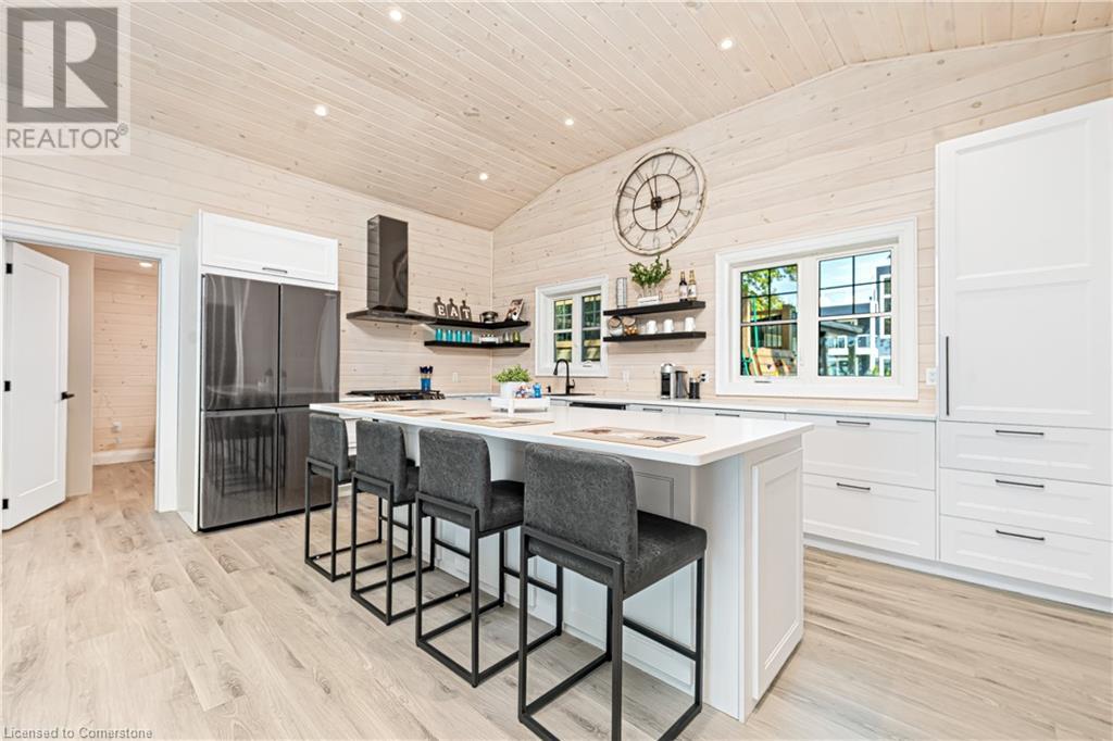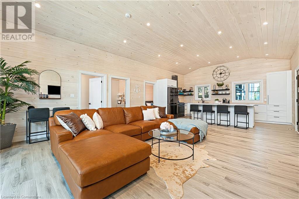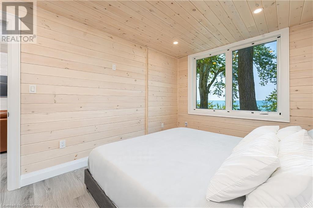 STUNNING LAKEFRONT COTTAGE COMPLETELY REBUILT IN 2023, CONVENIENTLY NESTLED BETWEEN GRAND BEND AND BAYFIELD, TURN-KEY PARADISE AWAITS! Backing directly onto Lake Huron between Grand Bend and Bayfield, this breathtaking 4 season cottage is the epitome of luxury and easy living. Vacation time is made simple here where EVERYTHING in the cottage is brand new. Designed for the ultimate experience combined with low-maintenance ownership, this 3-bedroom retreat features jaw-dropping sunsets and endless activities. There’s even a 12x10 foot fully insulated Bunkie (also built in 2023) perfect for the kids or weekend visitors along with a tree house play area and custom climbing centre. Back inside there’s 2 bathrooms, laundry and a luxurious kitchen featuring Cambria countertops, black stainless steel appliances, breakfast counter and beautiful white cabinetry with pot drawers and built in organization. The entire interior of this home is cladded in beautiful white-washed tongue and groove pine and every inch of the space exudes elegance and comfort. The stunning cathedral ceilings lead your eyes to mind-blowing lake-views. Outside, you’ll enjoy a large deck, fire pit, outdoor shower and steps down to your private beach with new double seawall, there’s lookout areas for endless relaxation and the best beach & water recreation you could imagine. Furniture is negotiable, making this a true turn-key opportunity. Seize the chance to own your slice of paradise today! (id:55009)
