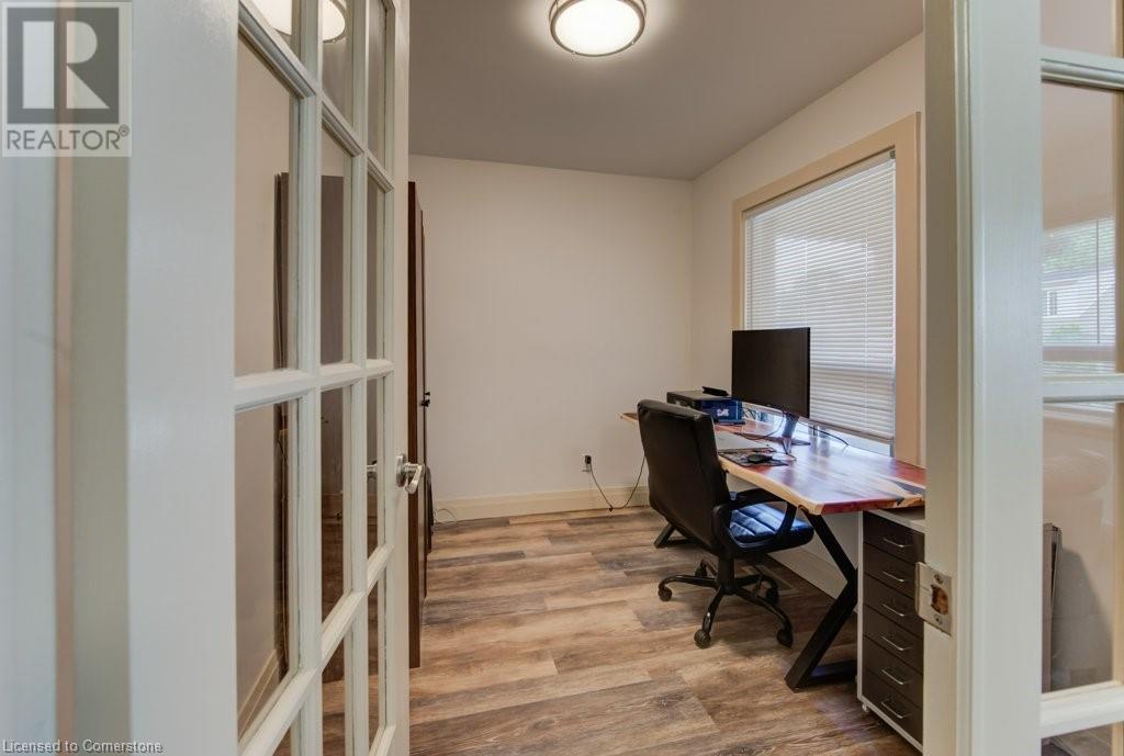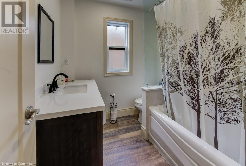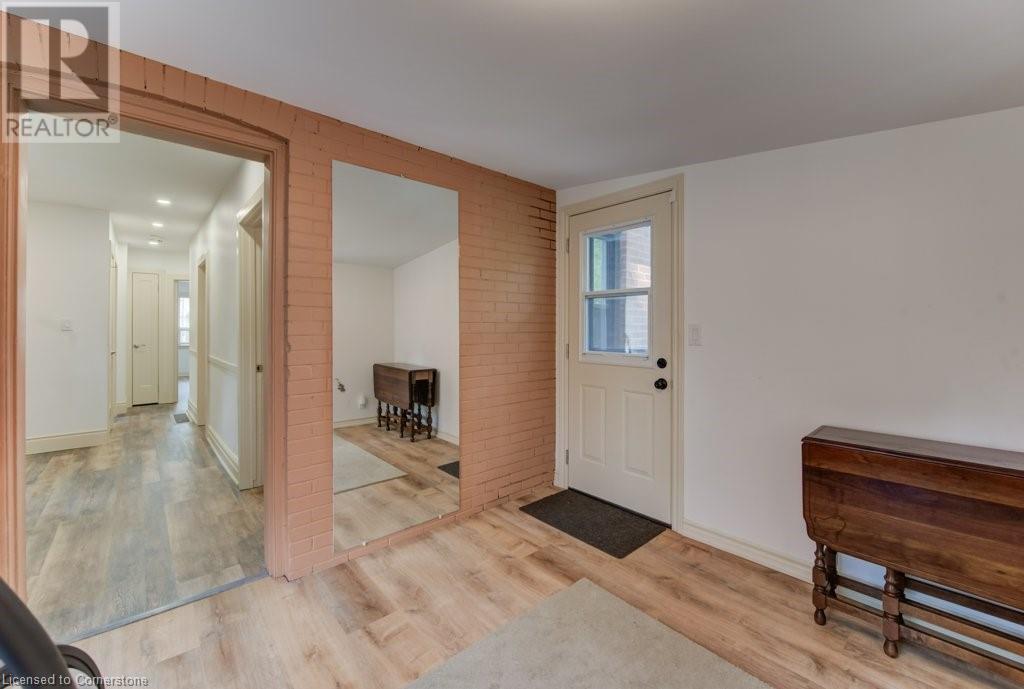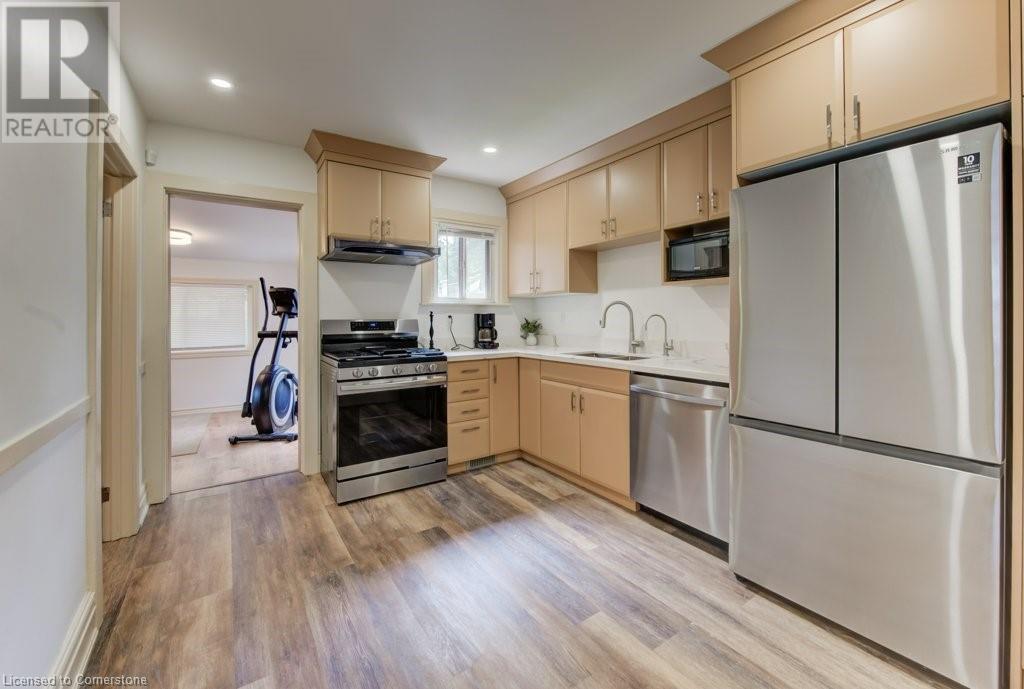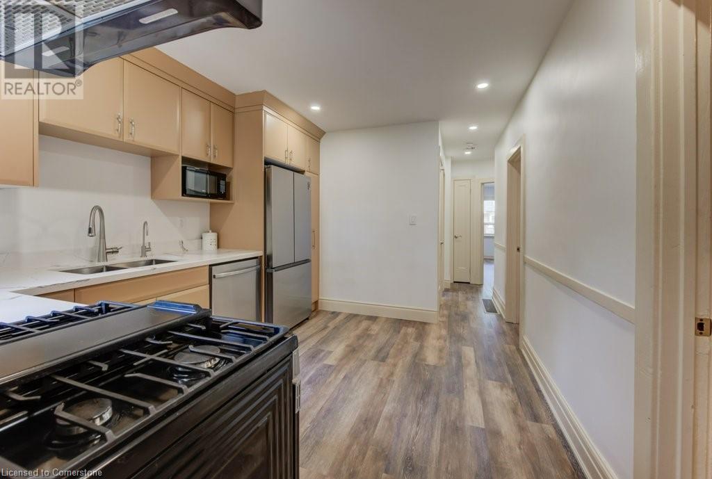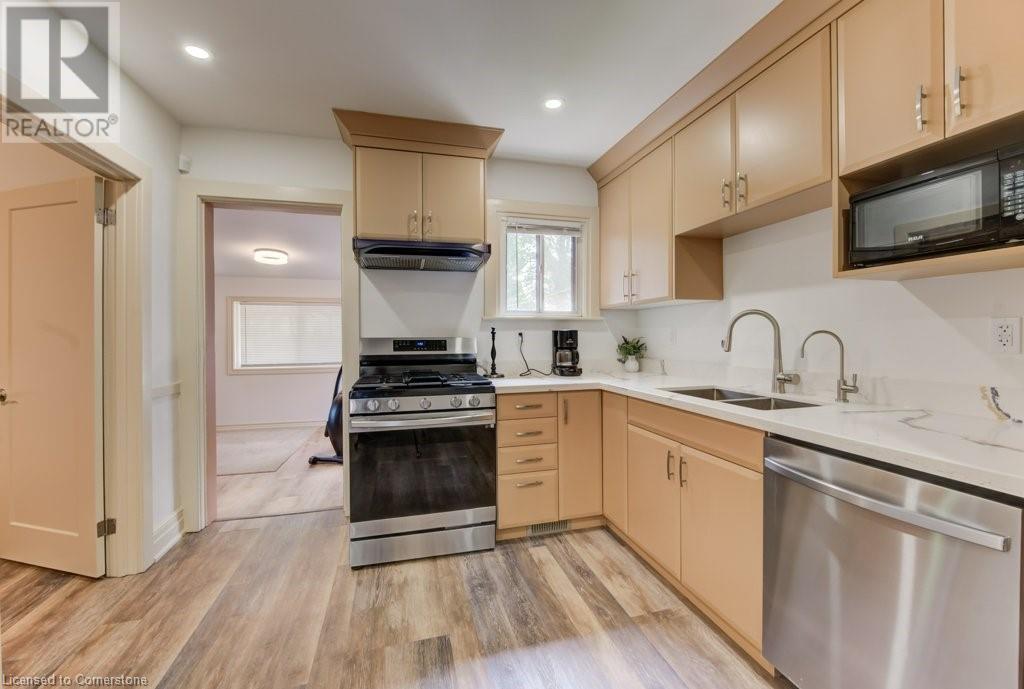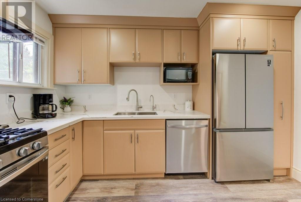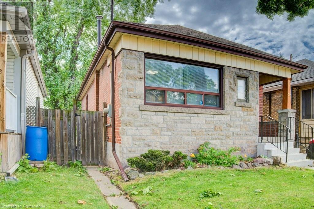 Discover the charm of this inviting brick bungalow, designed with first-time home buyers, downsizers, and savvy investors in mind, all nestled in the friendly neighborhood of Hamilton's Crown Point East. This lovely home features two comfortable bedrooms and a conveniently located bathroom, along with a cozy sunroom that enhances the main floor. Enjoy the serenity of a peaceful area that offers both privacy and comfort. The spacious, unfinished lower level presents a fantastic opportunity for you to personalize and create a space that showcases your unique style. The generous 100' lot includes a fully fenced backyard with a patio, perfect for summer gatherings or quiet moments outdoors. Located just a short distance from the lively Centre on Barton, you'll have access to a range of amenities, trendy shops, and delightful dining options on Ottawa Street. With the possibility of adding a side or front drive (pending buyer's due diligence), this property is more than just a house; it's a place to truly call home. Recent updates include new stainless steel appliances (fridge, stove, dishwasher, exhaust), fresh laminate flooring, updated interior trim and doors, a modern kitchen with a double sink and quartz countertops, custom cabinetry, and a newly installed bathroom. The front room features a new window, and the entrance is enhanced by new concrete steps. In 2021, a new HVAC unit and HEPA systems were installed (rental), and in 2023, two new bedroom windows and one bathroom window were added, along with a reverse osmosis system in the kitchen (rental). Additionally, a backwater valve was installed in the basement in 2024. The backyard boasts an interlocking brick patio, an awning, and a spacious yard for your enjoyment. (id:55009)