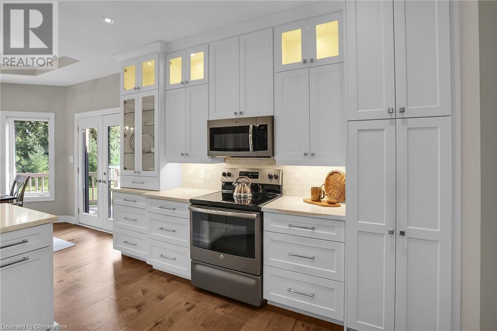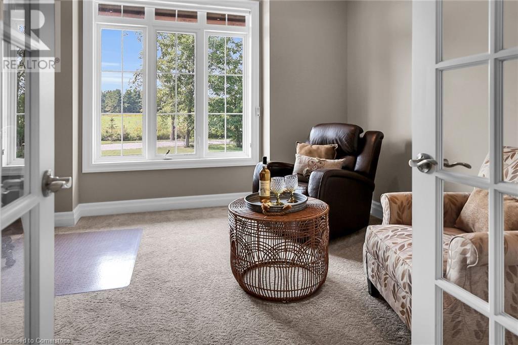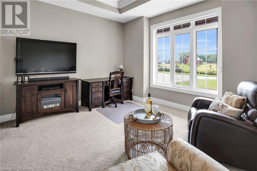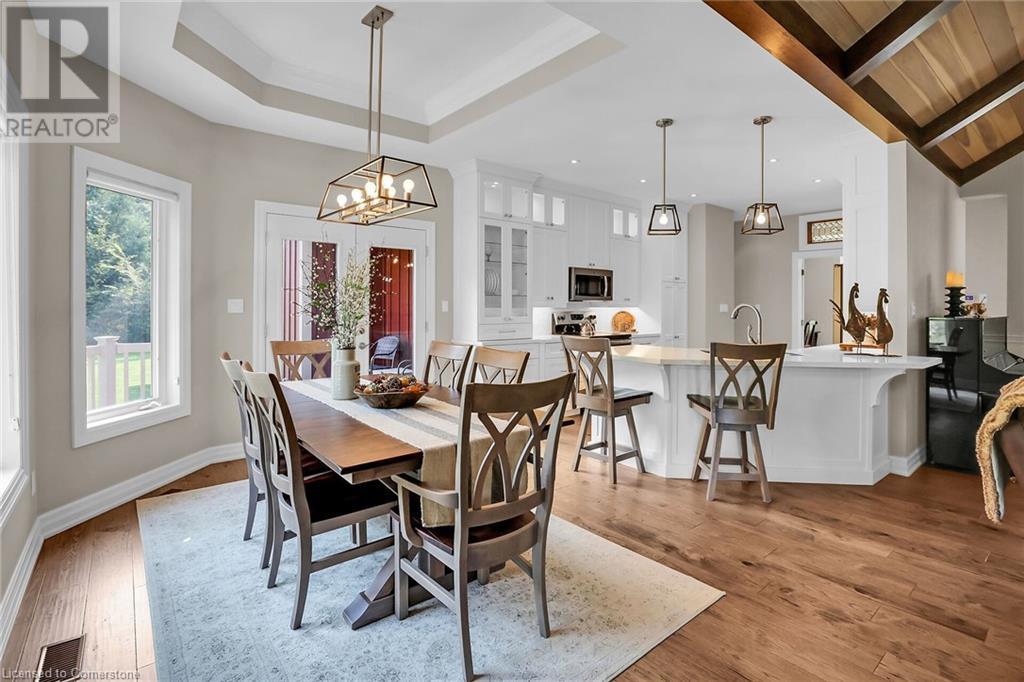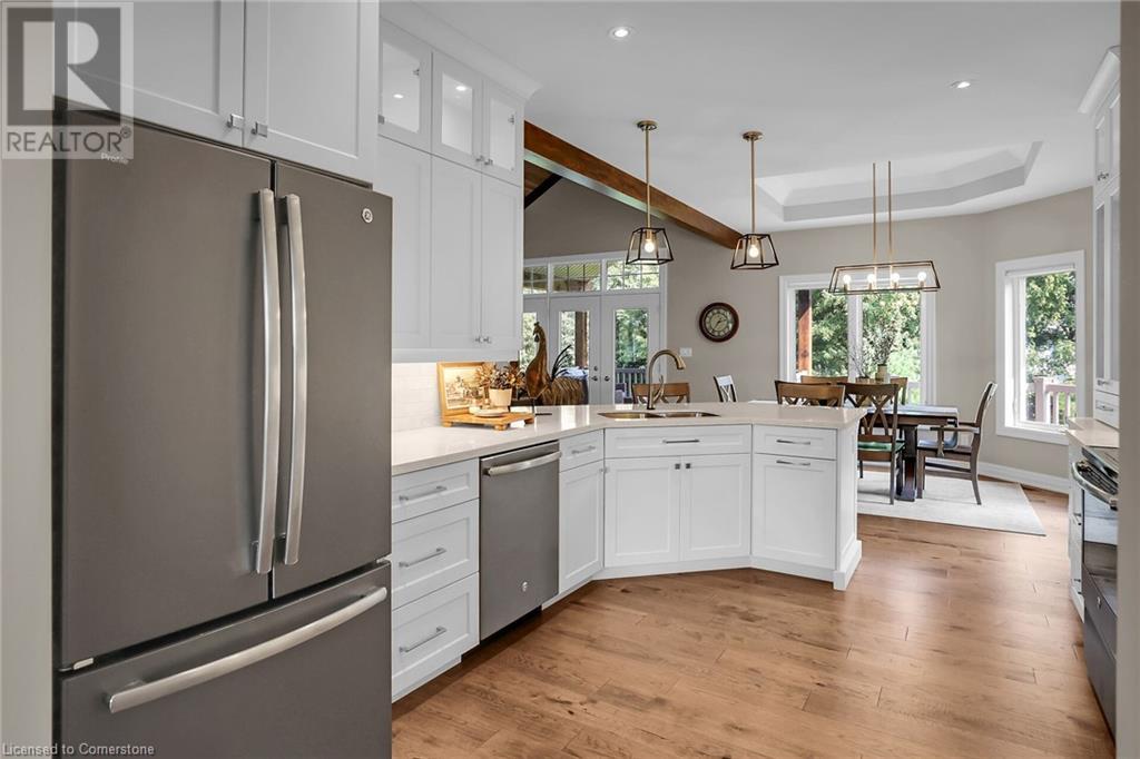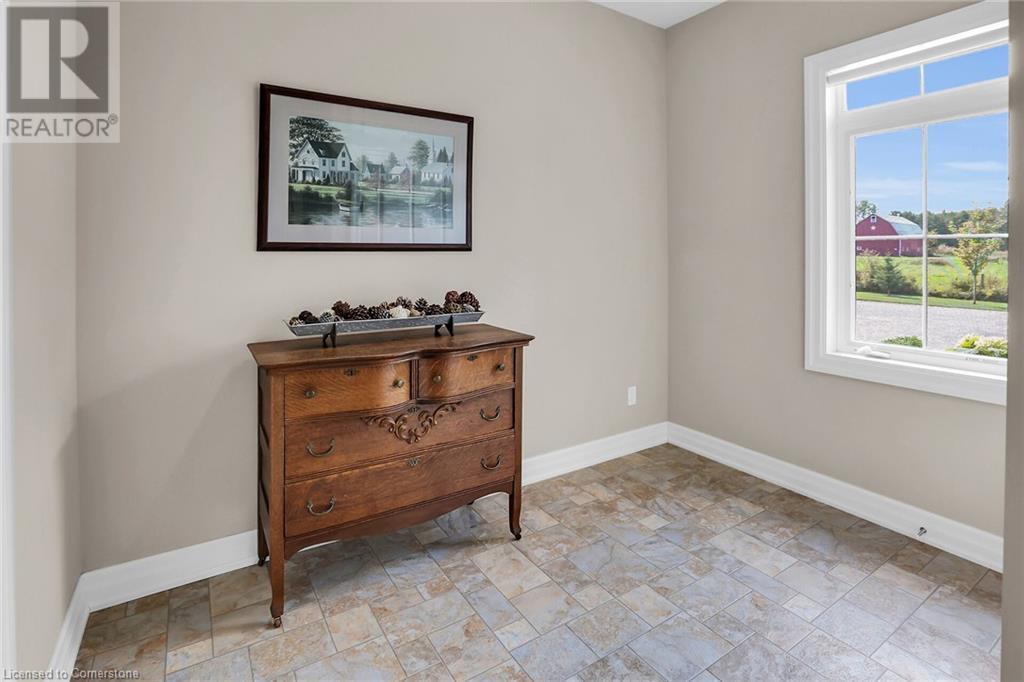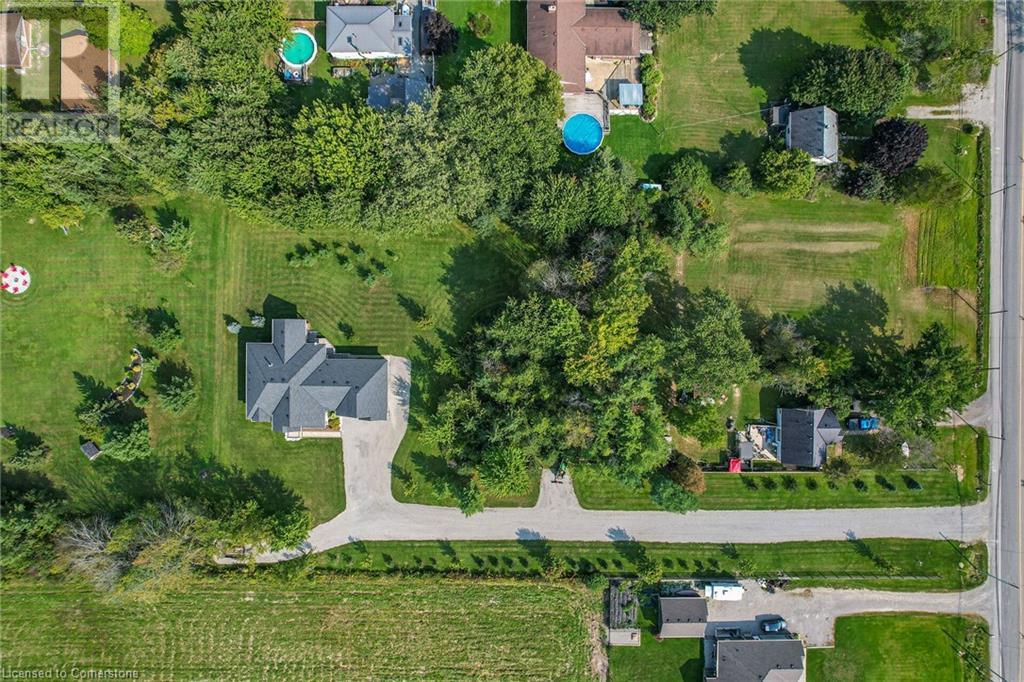 ‘Rarely offered’ custom executive bungalow in the desirable hamlet of Byng – just minutes to the Dunnville town core. Built in 2018, this attractive home sits on a treed lot of nearly one acre adjacent to Byng Conservation Park and steps to the Grand River. A timber-framed covered porch offers a “Grand” welcome into a defined foyer accented w/ crown moulding & arched openings. Your eyes are drawn to the soaring cathedral ceiling of the living room tastefully finished w/ t&g pine, wood beam accents, and a cozy stone gas f/p. Seamlessly connected to a dining area, featuring a tray ceiling, overlooks the rear yard. The ‘magazine-worthy’ kitchen offers ample cabinetry, quartz countertops, breakfast peninsula, & warm lighting. The master bedroom is located right off the living room & is spacious in size, finished with carpeting & crown moulding, & has a large walk-in closet, and a 4pc ensuite. MF is completed w/ a second bedroom, 2pc bath/laundry combo, and a front den/office that could be converted into a 3rd bedroom. Basement is a clean slate awaiting your finishes – has vinyl flooring and rough in bath. Garage has a tonne of room (29x26) with three wood grain overhead doors. Extras: upgraded Hardie board siding, 280sf of composite decking, 9’ ceilings thru-out, 200AMP hydro service, 6000+gallon cistern, +++! Seize this opportunity where luxury meets nature, & location meets convenience! (id:55009)