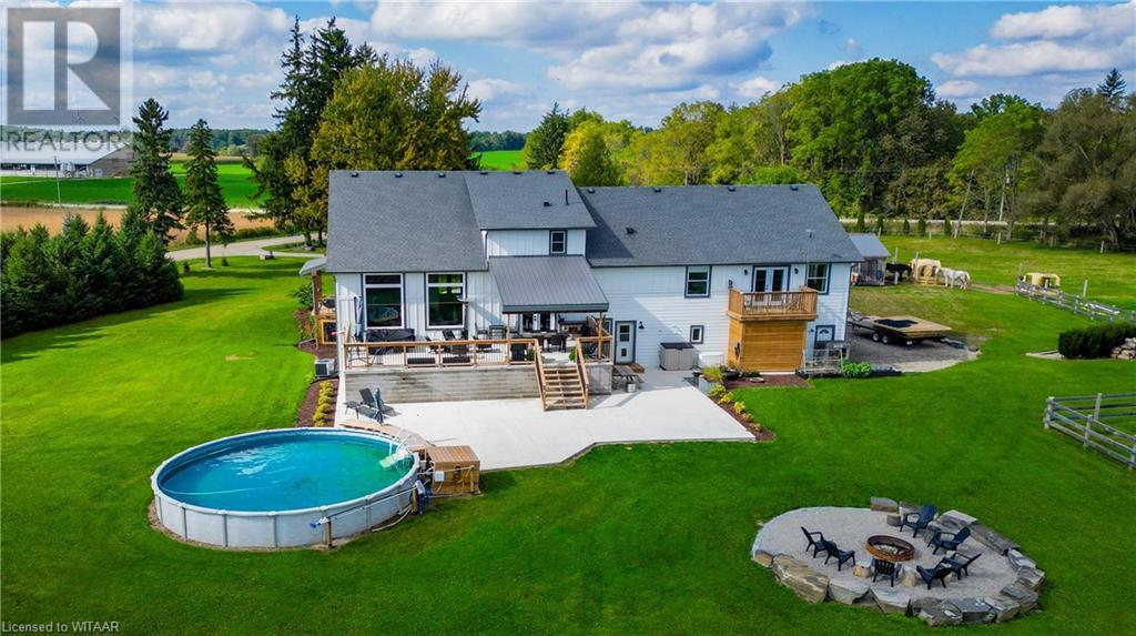 Welcome to your family’s dream sanctuary! This fully renovated 4-bedroom, 4-bathroom home on 5 sprawling acres perfectly blends modern luxury and country charm. The exterior boasts a charming front porch, and a spacious 3-car garage, alongside a horse pasture with a small barn and paddocks. Enjoy summer days in the above-ground pool or unwind on the massive concrete porch and back deck, ideal for family gatherings and relaxing evenings. Step inside to discover an open-concept layout featuring a brand-new white kitchen with modern appliances, flowing seamlessly into a family room with soaring ceilings. The spacious dining area opens directly to the patio, perfect for al fresco dining. A large office on the main level provides a quiet space for work or study. Ascend to your primary bedroom retreat, complete with a cozy seating area, private balcony, and a luxurious 5-piece ensuite featuring a double sink vanity, free-standing tub, and water closet. Three additional large bedrooms and two full bathrooms ensure ample space for everyone, while a massive mudroom helps manage the hustle and bustle of family life. Downstairs, you’ll find a versatile gym space, generous storage, and a massive rec room perfect for play and relaxation. Imagine weekends spent tending to horses, splashing in the pool, and creating cherished memories in this idyllic setting. This property is not just a house; it’s a lifestyle where lasting moments are made. (id:55009)