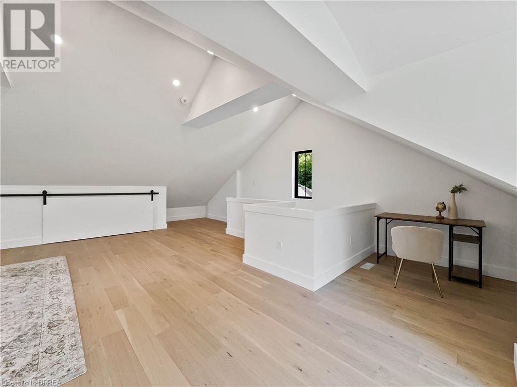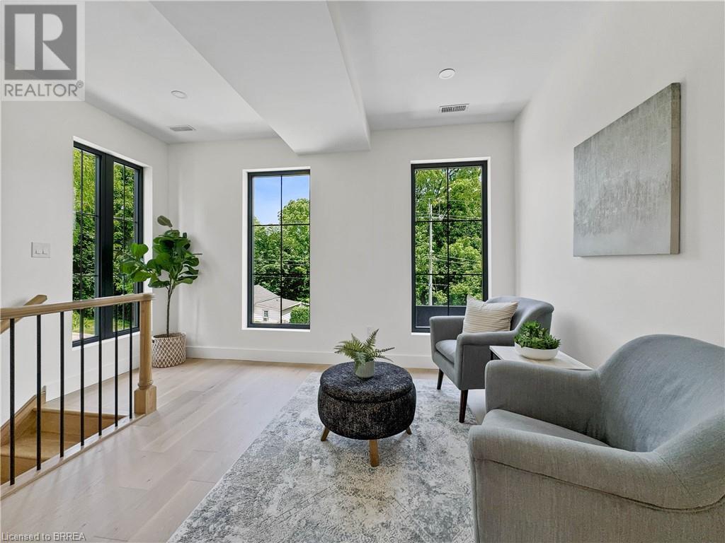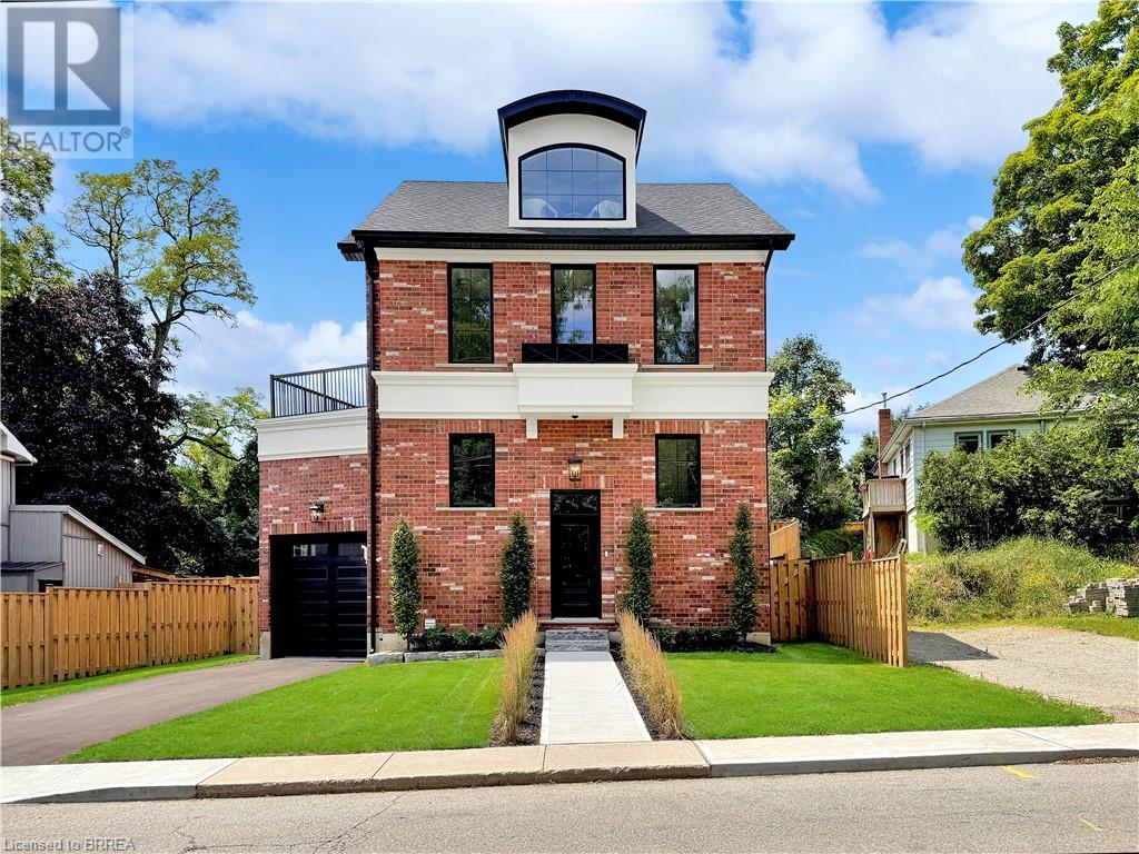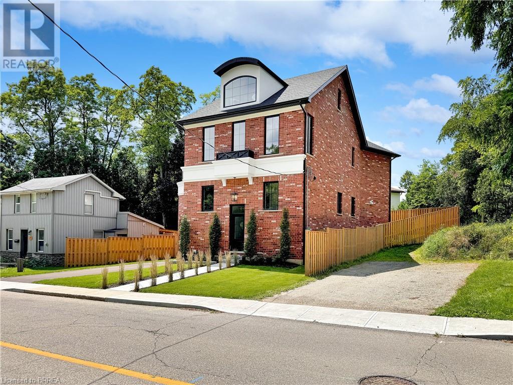 Welcome to 75 Grand River St. S., a stunning custom-built home by Stephan Andrew Homes, perfectly located just steps from the Grand River and the charming Downtown Paris. This 3-storey residence features a timeless brick and stucco exterior and offers 3,049 sqft of meticulously designed living space. With four spacious bedrooms and three luxurious bathrooms, this home is ideal for families seeking comfort and style. The open concept main level boasts a custom kitchen equipped with high-end stainless steel appliances and a butler's pantry, making it perfect for both everyday living and entertaining. The second floor includes a massive master bedroom with a private balcony and a spa-like ensuite, a guest bedroom, an office, and a guest bath. The third floor is a full-floor loft space with huge windows, offering endless possibilities as a home theater, entertainment room, spa, or even a second master suite. The professionally landscaped yard enhances the home's curb appeal, and the fully fenced backyard with a deck off the kitchen is perfect for outdoor gatherings. Additionally, the full unfinished basement offers endless possibilities for customization to suit your needs. Don't miss this opportunity to own a piece of luxury just moments from the heart of Paris. Schedule your private showing today and experience fine living at its best. (id:55009)