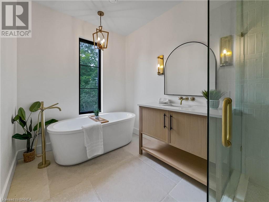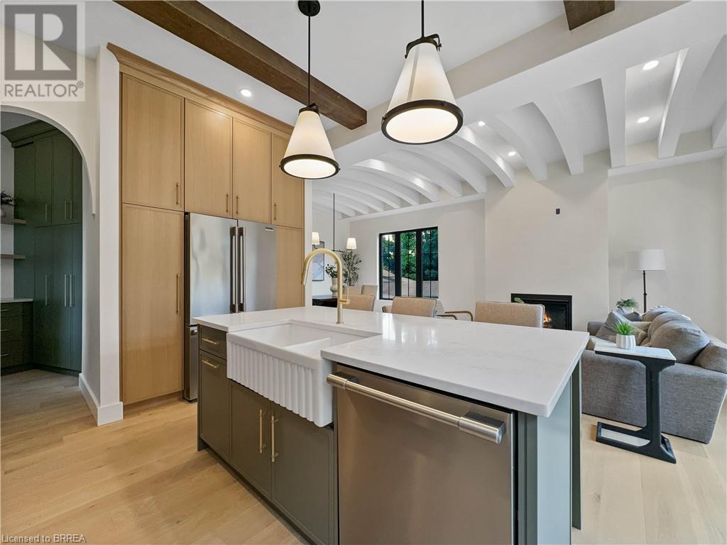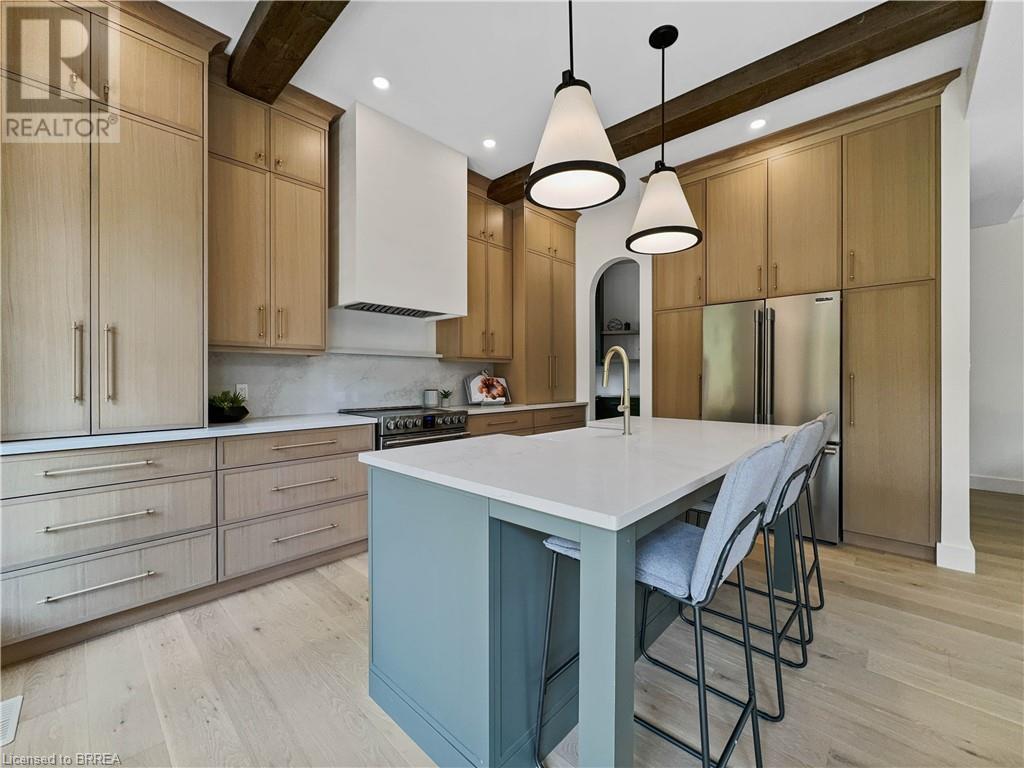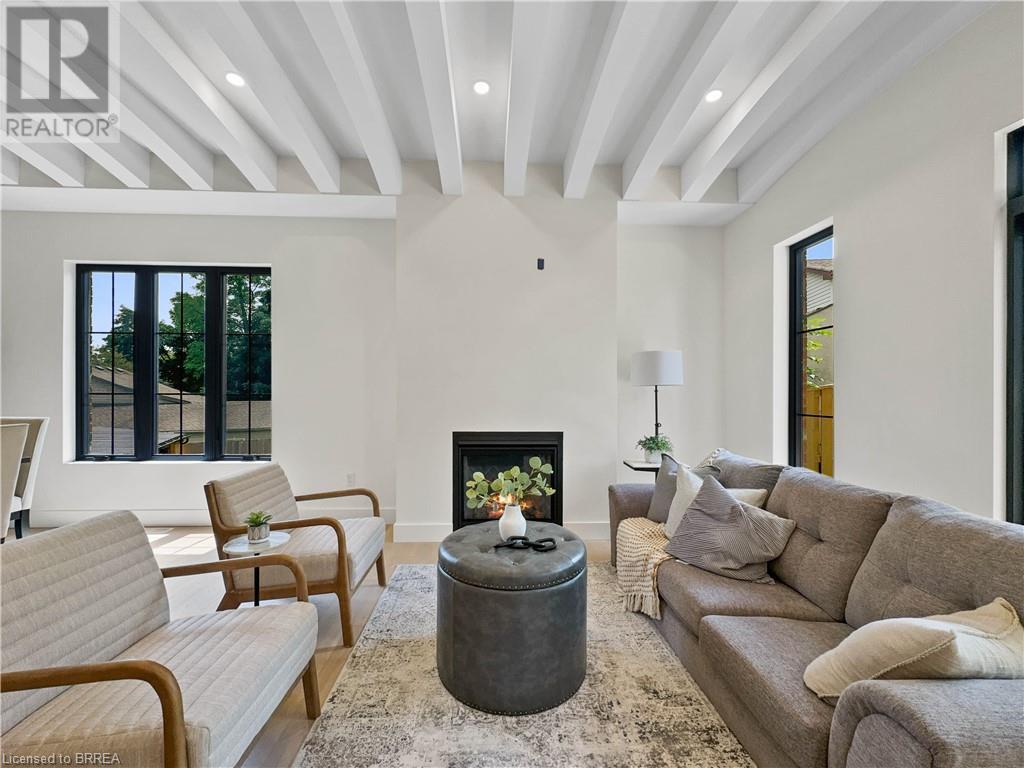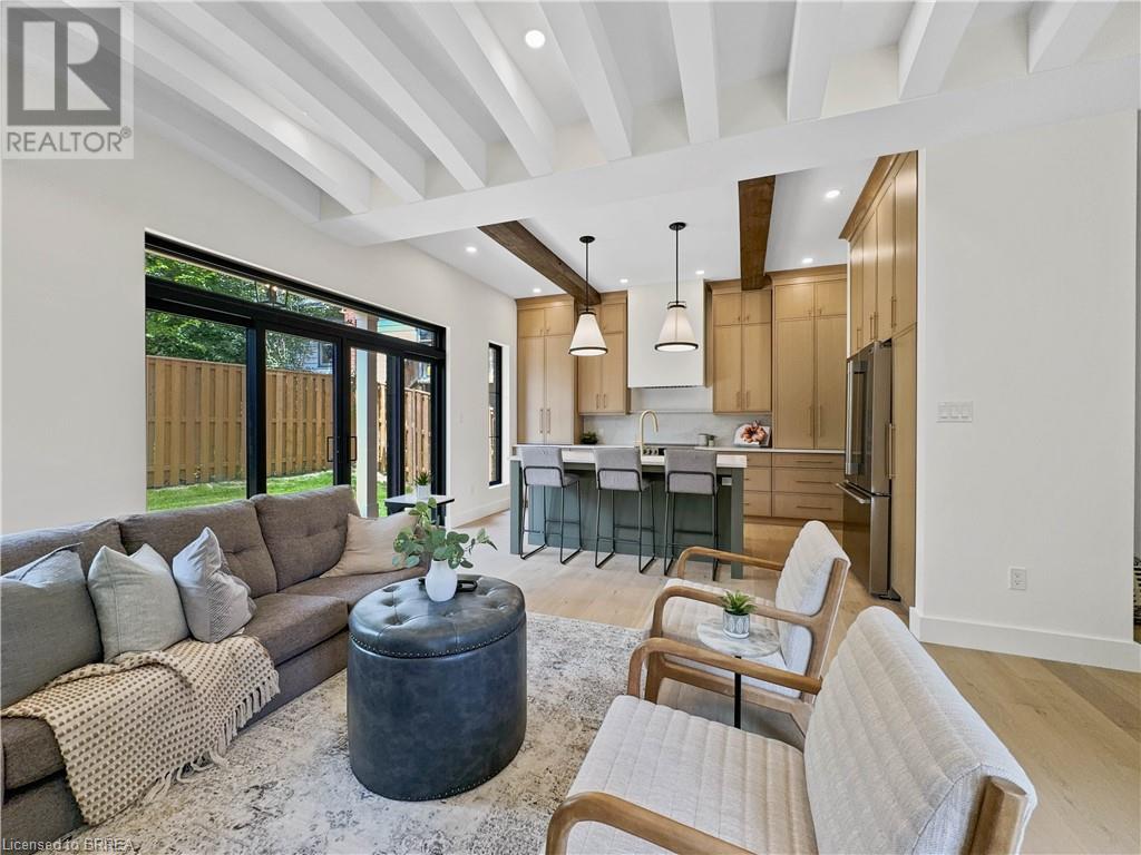 Welcome to 75 Grand River St. S., a stunning custom-built home by Stephan Andrew Homes, perfectly located just steps from the Grand River and the charming Downtown Paris. This 3-storey residence features a timeless brick and stucco exterior and offers 3,049 sqft of meticulously designed living space. With four spacious bedrooms and three luxurious bathrooms, this home is ideal for families seeking comfort and style. The open concept main level boasts a custom kitchen equipped with high-end stainless steel appliances and a butler's pantry, making it perfect for both everyday living and entertaining. The second floor includes a massive master bedroom with a private balcony and a spa-like ensuite, a guest bedroom, an office, and a guest bath. The third floor is a full-floor loft space with huge windows, offering endless possibilities as a home theater, entertainment room, spa, or even a second master suite. The professionally landscaped yard enhances the home's curb appeal, and the fully fenced backyard with a deck off the kitchen is perfect for outdoor gatherings. Additionally, the full unfinished basement offers endless possibilities for customization to suit your needs. Don't miss this opportunity to own a piece of luxury just moments from the heart of Paris. Schedule your private showing today and experience fine living at its best. (id:55009)