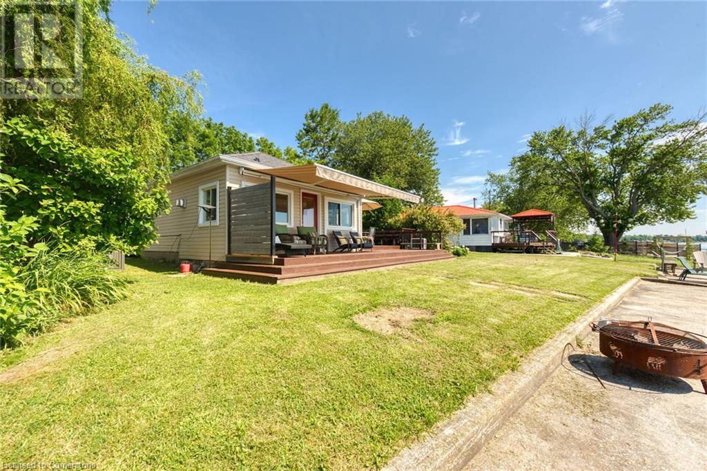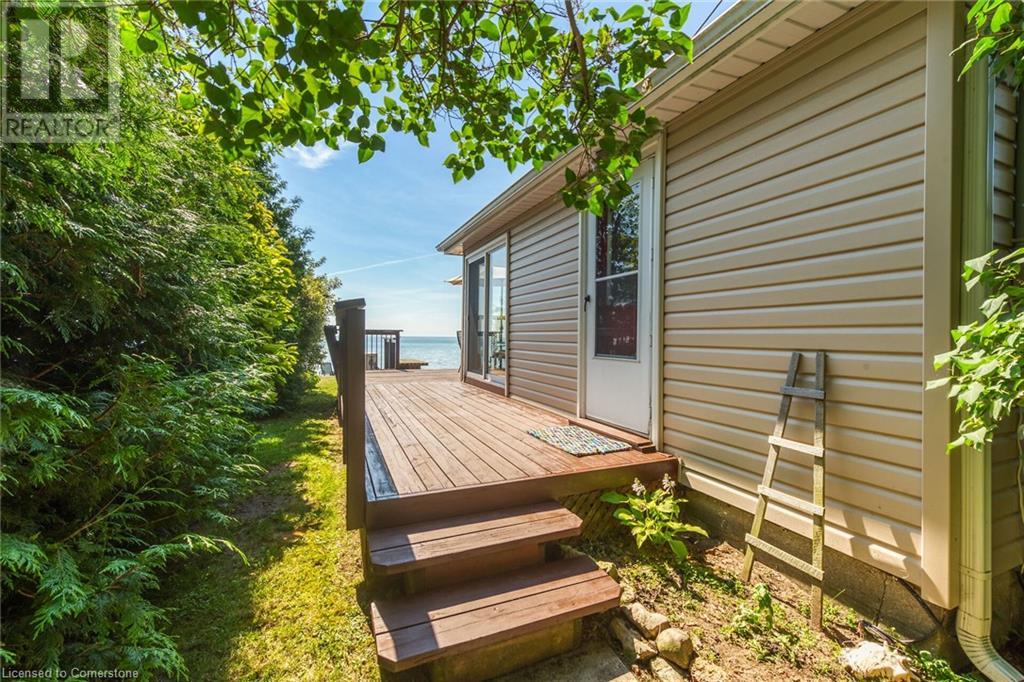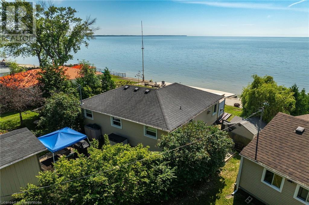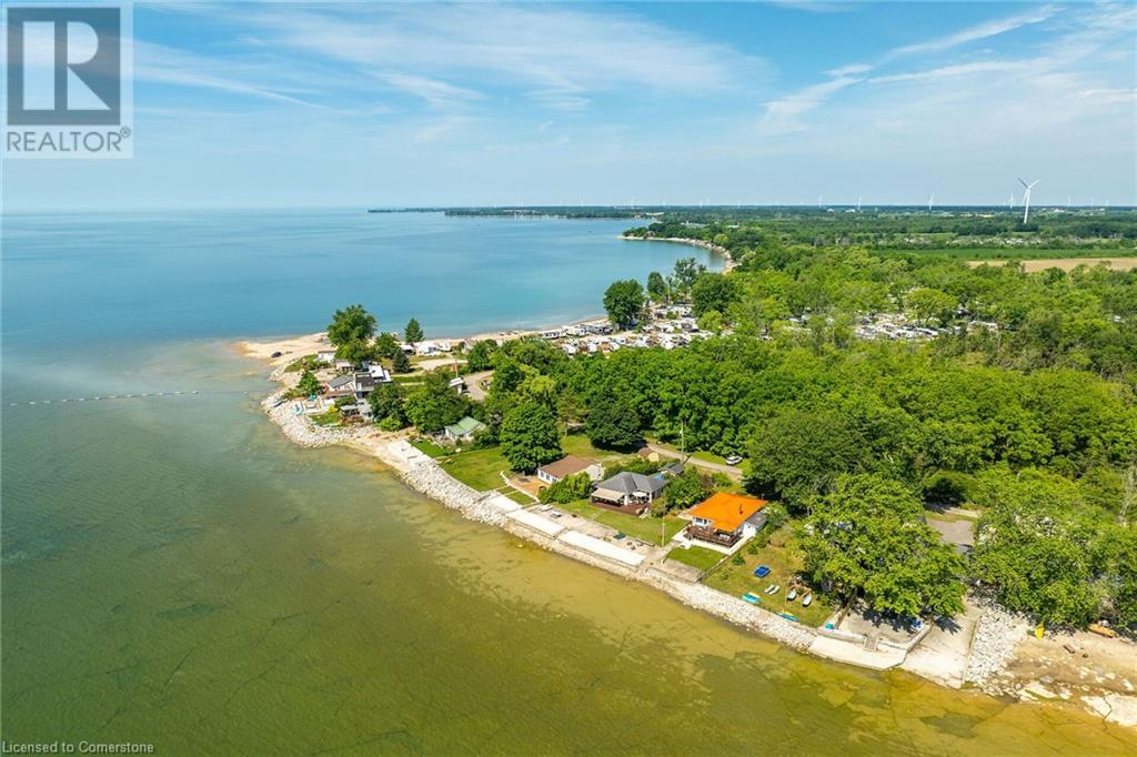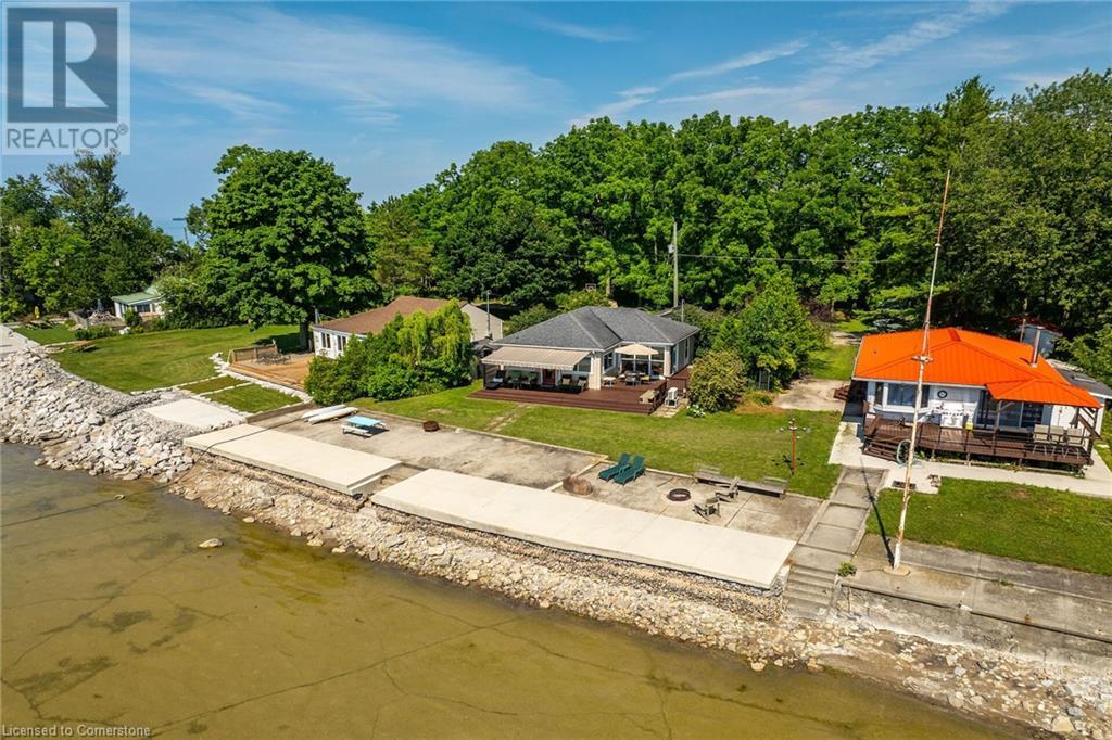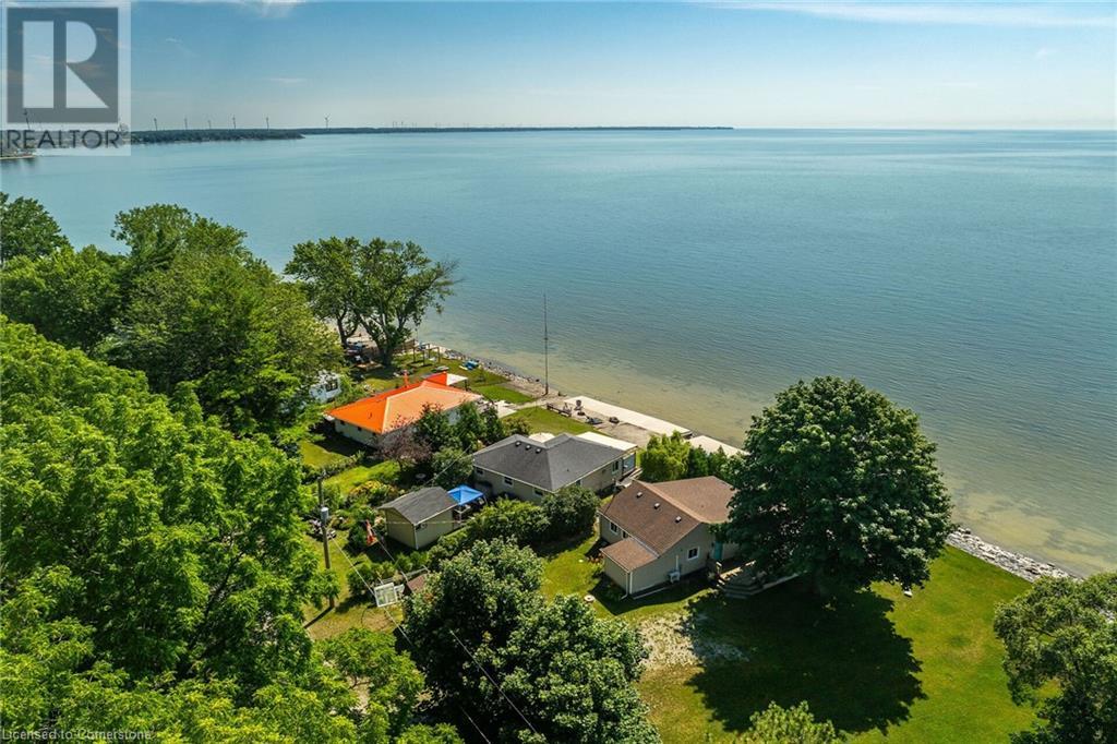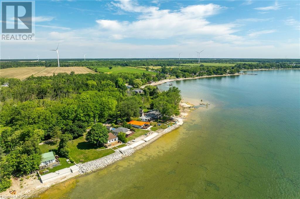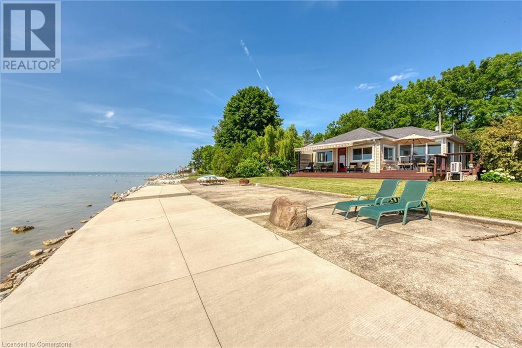 Discover a prized Lake Erie “Gem” tucked away off Lakeshore Road enjoying frontage near end of secluded, private lane. This waterfront “Treasure” reflects immense pride of lengthy ownership incs immaculate maintained 800sf cottage positioned proudly on 0.28 ac lot extending into beyond shoreline. Highlighted w/520sf freshly painted, lake facing entertainment deck-2010 shaded w/power sun awning - overlooking low profile terrain leads to recently improved/poured concrete break-wall-2020 w/staircase accessing smooth flat rock beach. If a surprise family or friends showing up unexpectedly - there is a 10x12 tastefully appointed bunkie! A plethora of oversized newer windows & patio door walk-outs-2019 promote bright interior ambience ensuring panoramic water views from most every vantage point. Introduces uncomplicated design incs fully equipped kitchen - segues to comfortable dining/living area - continues to radiant insulated sunroom boasting a sea of windows & p/g free-standing fireplace-2018. Completed w/3 bedrooms & totally renovated/stylish 4pc bath. Loaded w/notable extras inc - ductless HVAC heat/cool system-2022, window blinds-2019, vinyl exterior siding-2019, roof-2008, cinder block foundation w/accessible crawl space, upgraded 100 amp hydro-2010, 2000g cistern, economic septic (no costly pump-outs), triple wide driveway plus majority of furnishings. 50 mins commute to Hamilton, Brantford & 403 - 15 mins W/Dunnville & E of Knight’s Beach. Your Lake Escape has been Found! (id:55009)