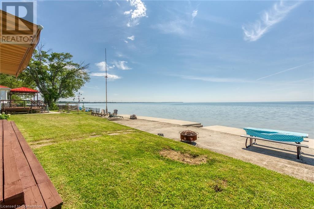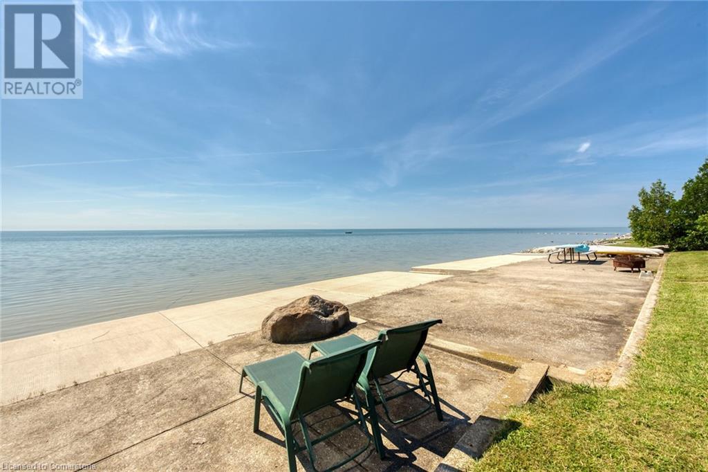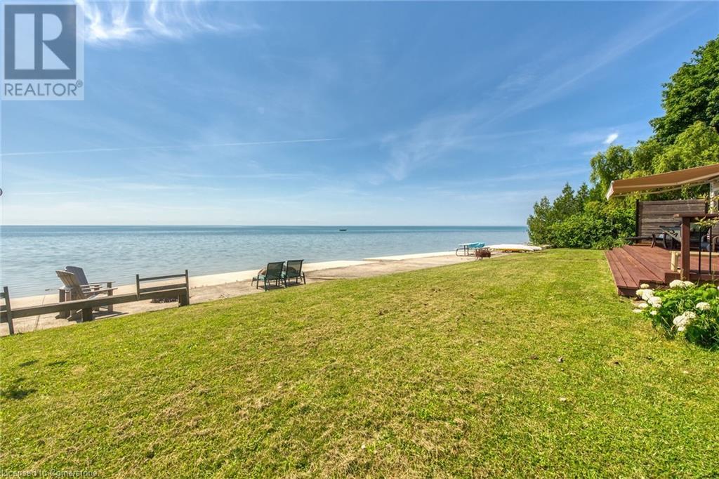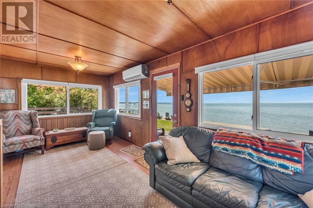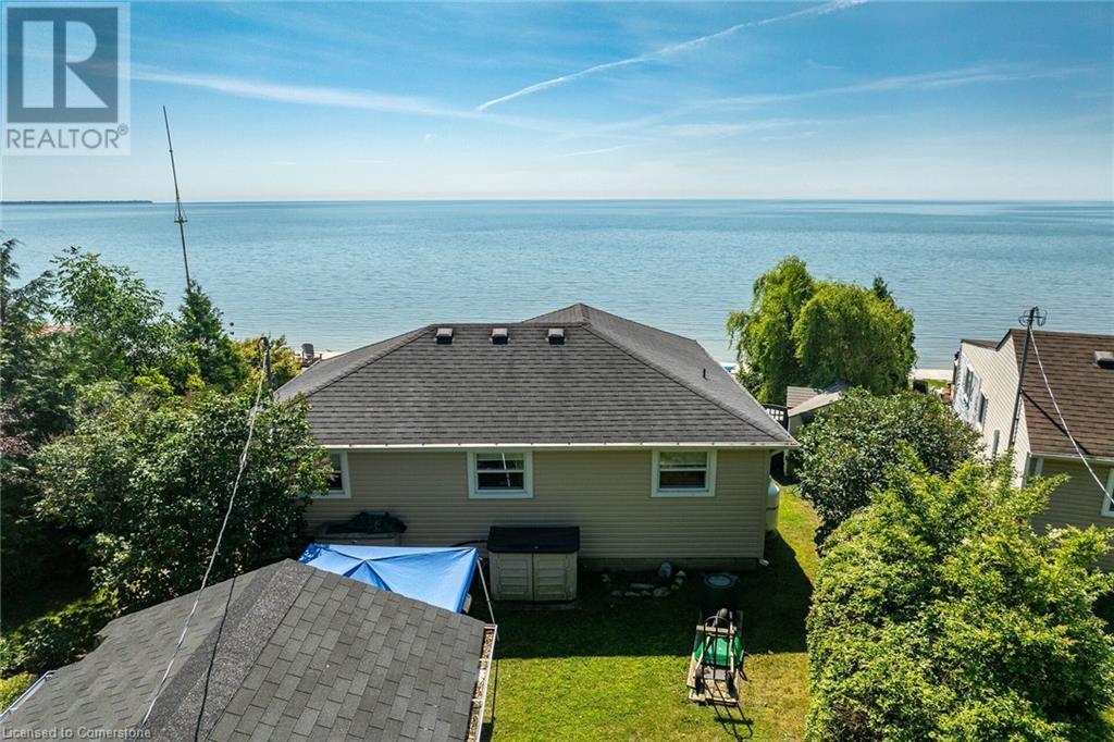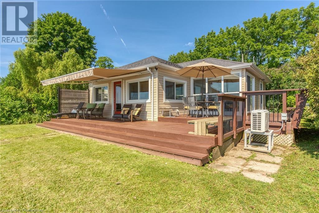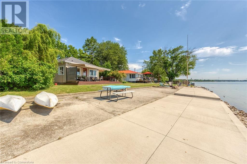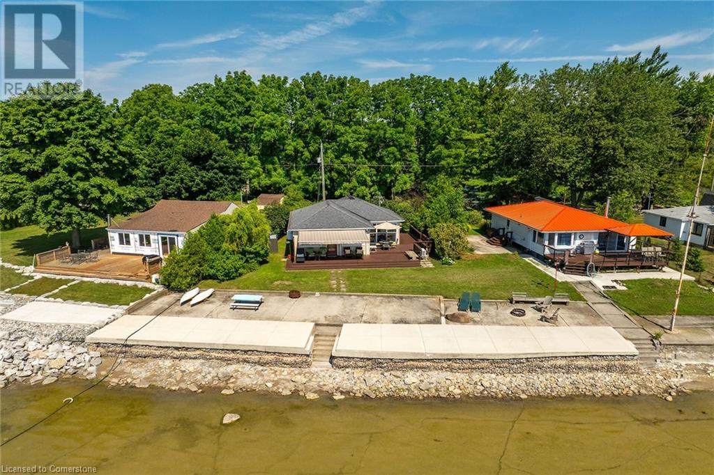Discover a prized Lake Erie “Gem” tucked away off Lakeshore Road enjoying frontage near end of secluded, private lane. This waterfront “Treasure” reflects immense pride of lengthy ownership incs immaculate maintained 800sf cottage positioned proudly on 0.28 ac lot extending into beyond shoreline. Highlighted w/520sf freshly painted, lake facing entertainment deck-2010 shaded w/power sun awning - overlooking low profile terrain leads to recently improved/poured concrete break-wall-2020 w/staircase accessing smooth flat rock beach. If a surprise family or friends showing up unexpectedly - there is a 10x12 tastefully appointed bunkie! A plethora of oversized newer windows & patio door walk-outs-2019 promote bright interior ambience ensuring panoramic water views from most every vantage point. Introduces uncomplicated design incs fully equipped kitchen - segues to comfortable dining/living area - continues to radiant insulated sunroom boasting a sea of windows & p/g free-standing fireplace-2018. Completed w/3 bedrooms & totally renovated/stylish 4pc bath. Loaded w/notable extras inc - ductless HVAC heat/cool system-2022, window blinds-2019, vinyl exterior siding-2019, roof-2008, cinder block foundation w/accessible crawl space, upgraded 100 amp hydro-2010, 2000g cistern, economic septic (no costly pump-outs), triple wide driveway plus majority of furnishings. 50 mins commute to Hamilton, Brantford & 403 - 15 mins W/Dunnville & E of Knight’s Beach. Your Lake Escape has been Found! (id:55009)