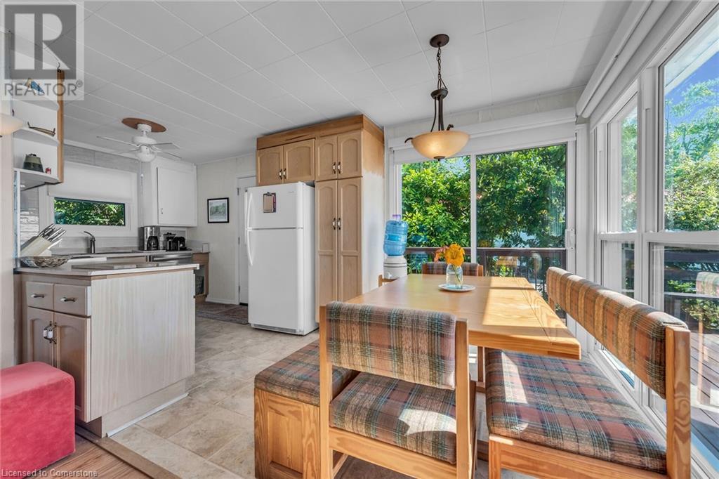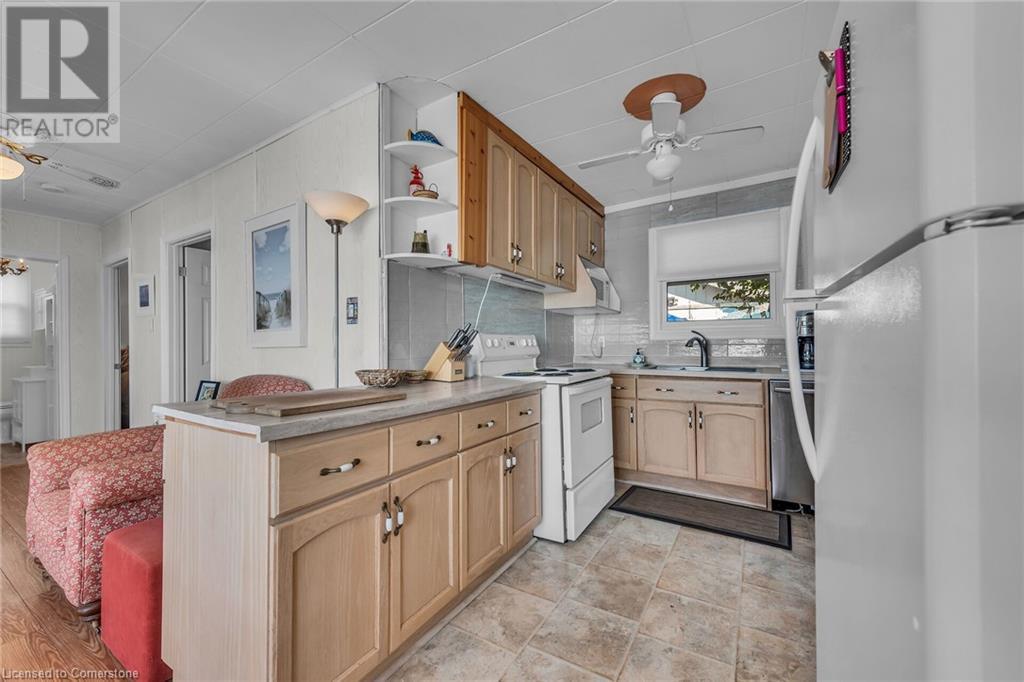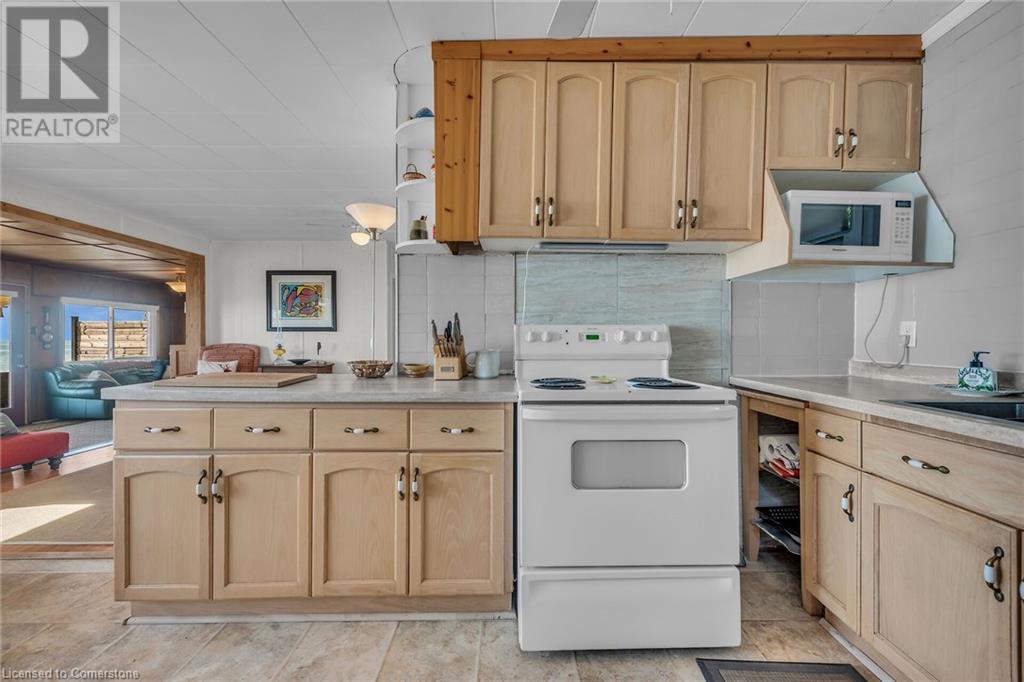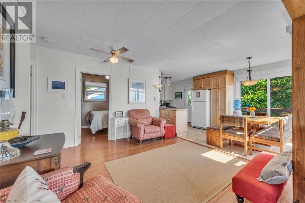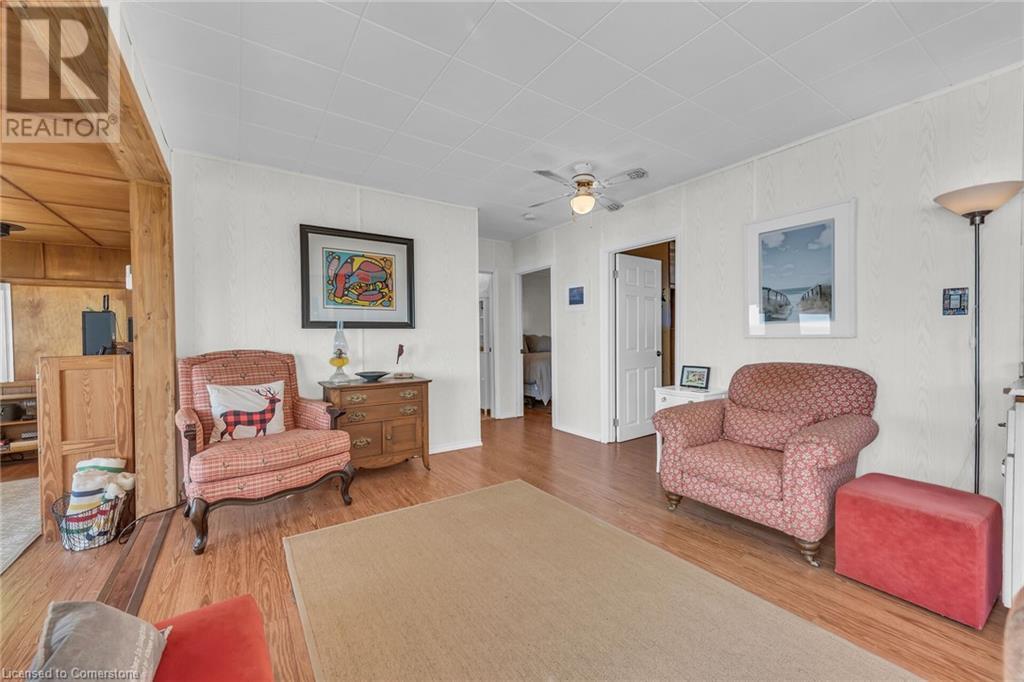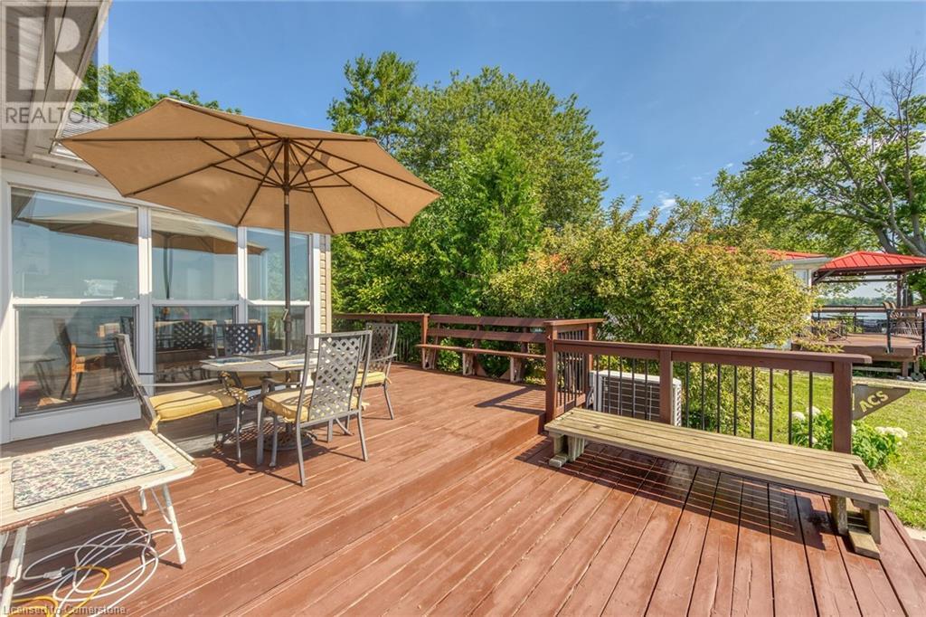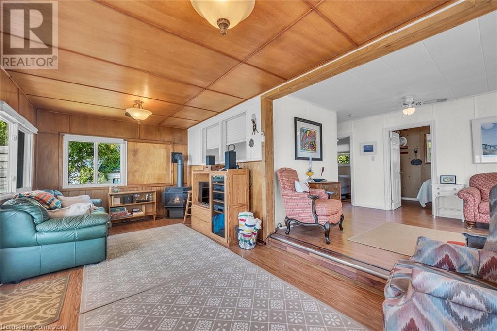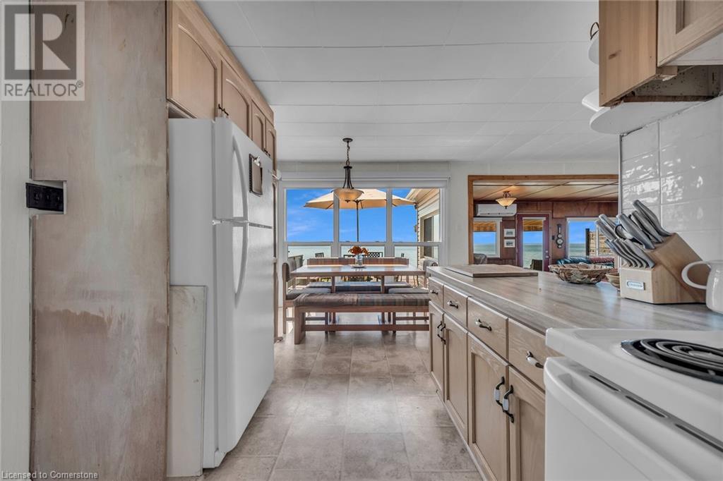 Discover a prized Lake Erie “Gem” tucked away off Lakeshore Road enjoying frontage near end of secluded, private lane. This waterfront “Treasure” reflects immense pride of lengthy ownership incs immaculate maintained 800sf cottage positioned proudly on 0.28 ac lot extending into beyond shoreline. Highlighted w/520sf freshly painted, lake facing entertainment deck-2010 shaded w/power sun awning - overlooking low profile terrain leads to recently improved/poured concrete break-wall-2020 w/staircase accessing smooth flat rock beach. If a surprise family or friends showing up unexpectedly - there is a 10x12 tastefully appointed bunkie! A plethora of oversized newer windows & patio door walk-outs-2019 promote bright interior ambience ensuring panoramic water views from most every vantage point. Introduces uncomplicated design incs fully equipped kitchen - segues to comfortable dining/living area - continues to radiant insulated sunroom boasting a sea of windows & p/g free-standing fireplace-2018. Completed w/3 bedrooms & totally renovated/stylish 4pc bath. Loaded w/notable extras inc - ductless HVAC heat/cool system-2022, window blinds-2019, vinyl exterior siding-2019, roof-2008, cinder block foundation w/accessible crawl space, upgraded 100 amp hydro-2010, 2000g cistern, economic septic (no costly pump-outs), triple wide driveway plus majority of furnishings. 50 mins commute to Hamilton, Brantford & 403 - 15 mins W/Dunnville & E of Knight’s Beach. Your Lake Escape has been Found! (id:55009)