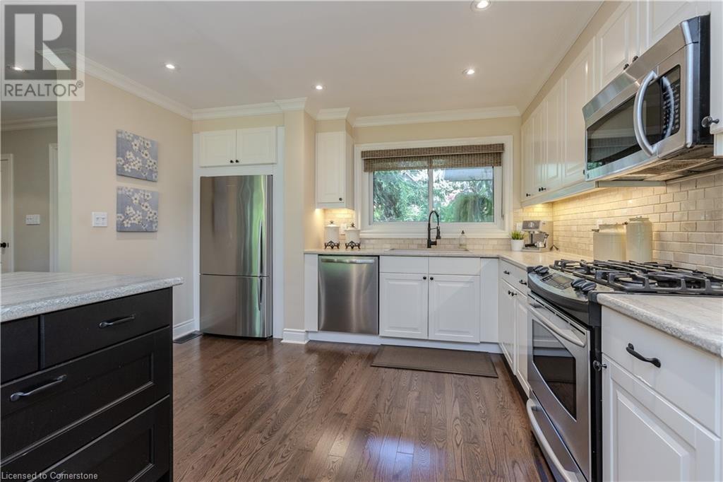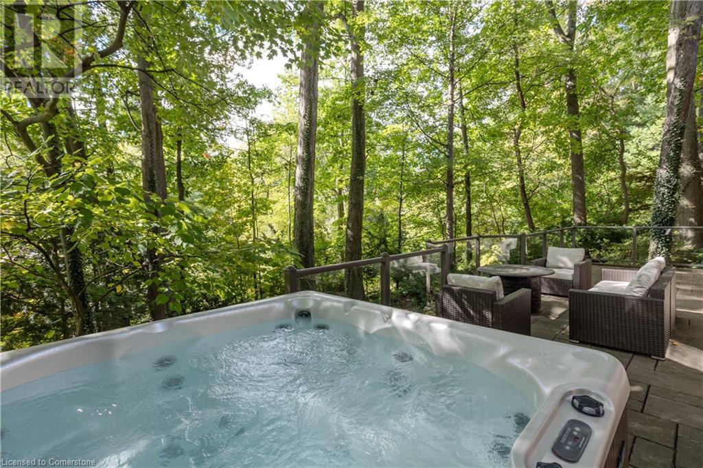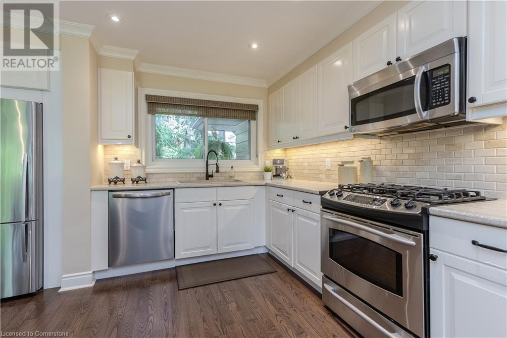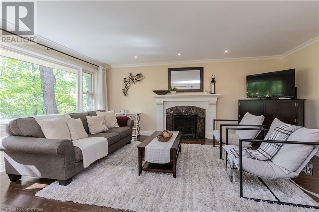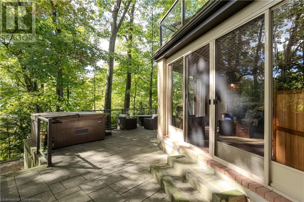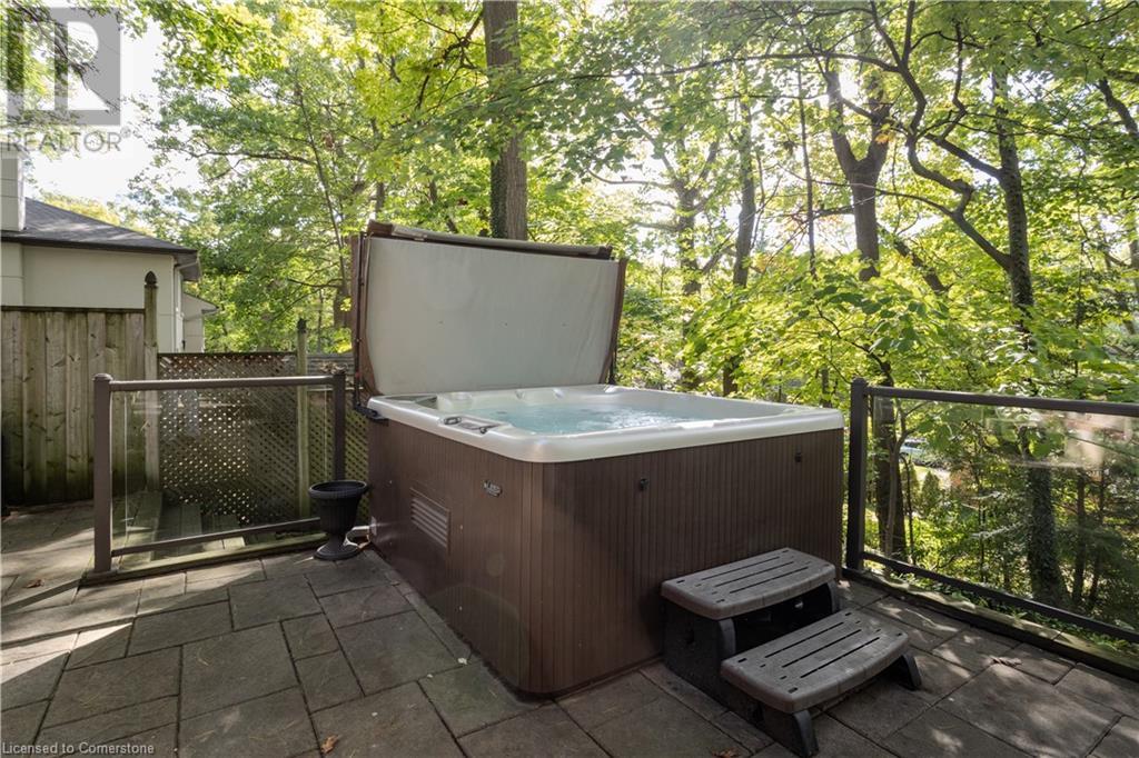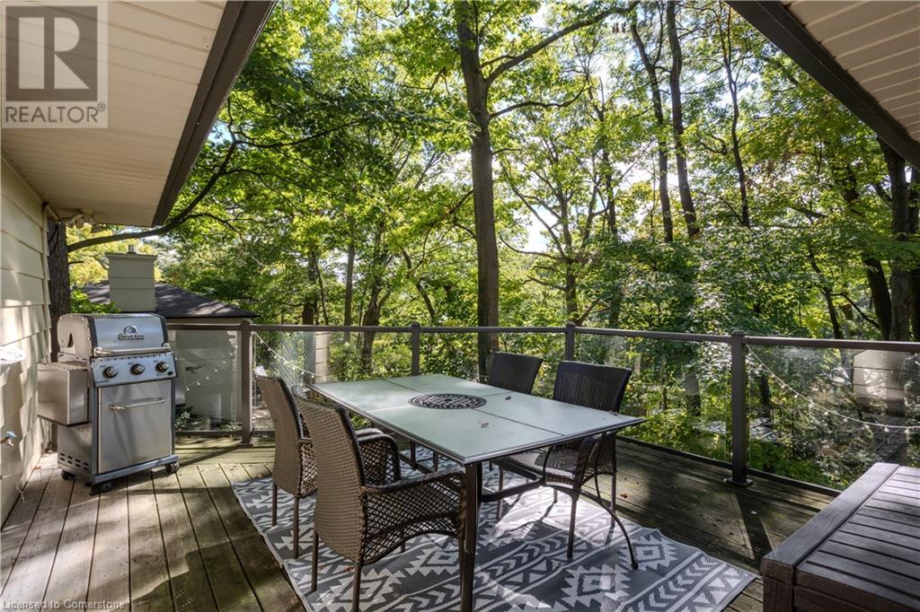 Incredible bungalow on one of Aldershot's prettiest streets! This beautifully and elegantly finished home offers seamless indoor-outdoor living with multiple access points to patios, porches, decks, and a sunroom. The professionally landscaped gardens blend perfectly into the stunning natural ravine, featuring an in-ground sprinkler system, exterior garden lighting, and seasonal views of the lake and harbour from fall to spring. Renovated by Bryan Baeumler in 2014 and featured on HGTV's Leave It to Bryan, the main floor and kitchen boast exquisite craftsmanship. Enjoy the open-concept living room with a cozy wood-burning fireplace, gorgeous hardwood, and ceramic floors. The updated kitchen features a pantry with rough-in for a future 2-piece bathroom, while the three-season sunroom could be easily converted into a four-season retreat. The main floor also includes two spacious bedrooms and a beautifully renovated bathroom (2021), with a walkout to a deck overlooking the serene ravine. The backyard offers a flagstone patio and a Beachcomber hot tub, perfect for relaxing and enjoying nature. The lower level features a walkout to the ravine, large picture windows, an additional bedroom, and a renovated bathroom with heated floors. There’s also a family room with a gas fireplace, a workout room, and updated laundry (2023). Updates include a double car garage with Tesla EV charger (2022), roof shingles (2012), and extra storage under the garage. This property is not to be missed! (id:55009)