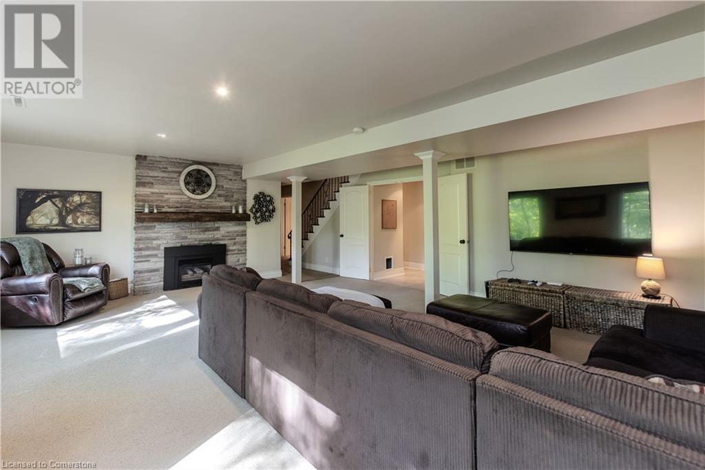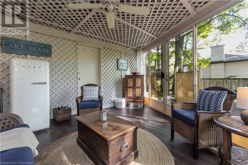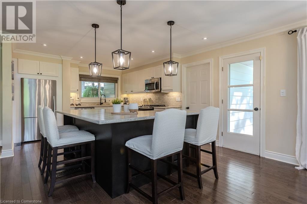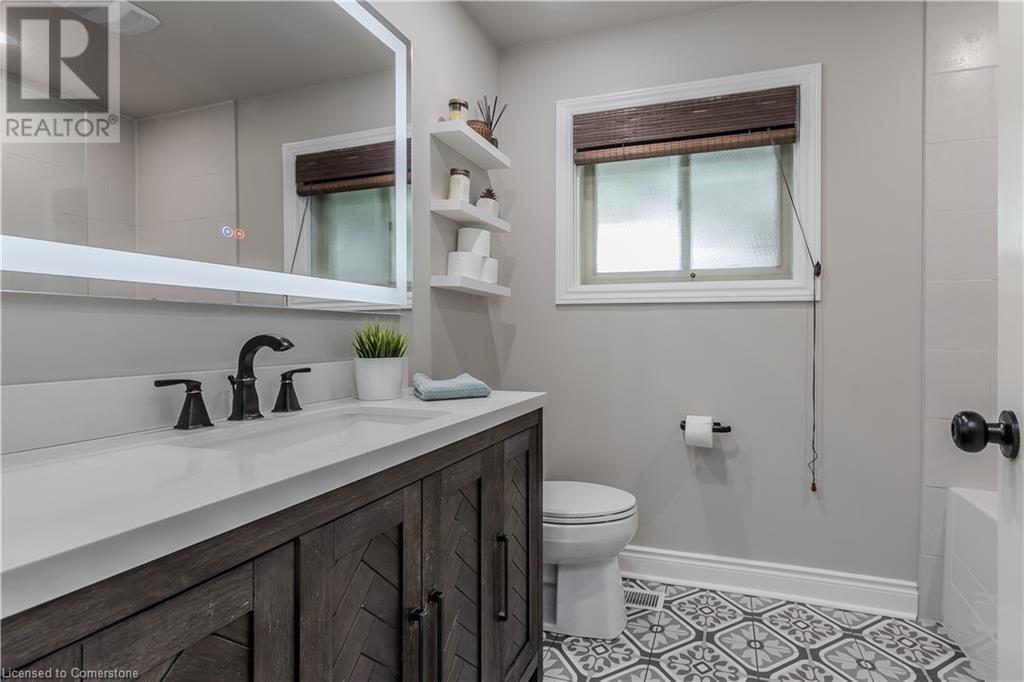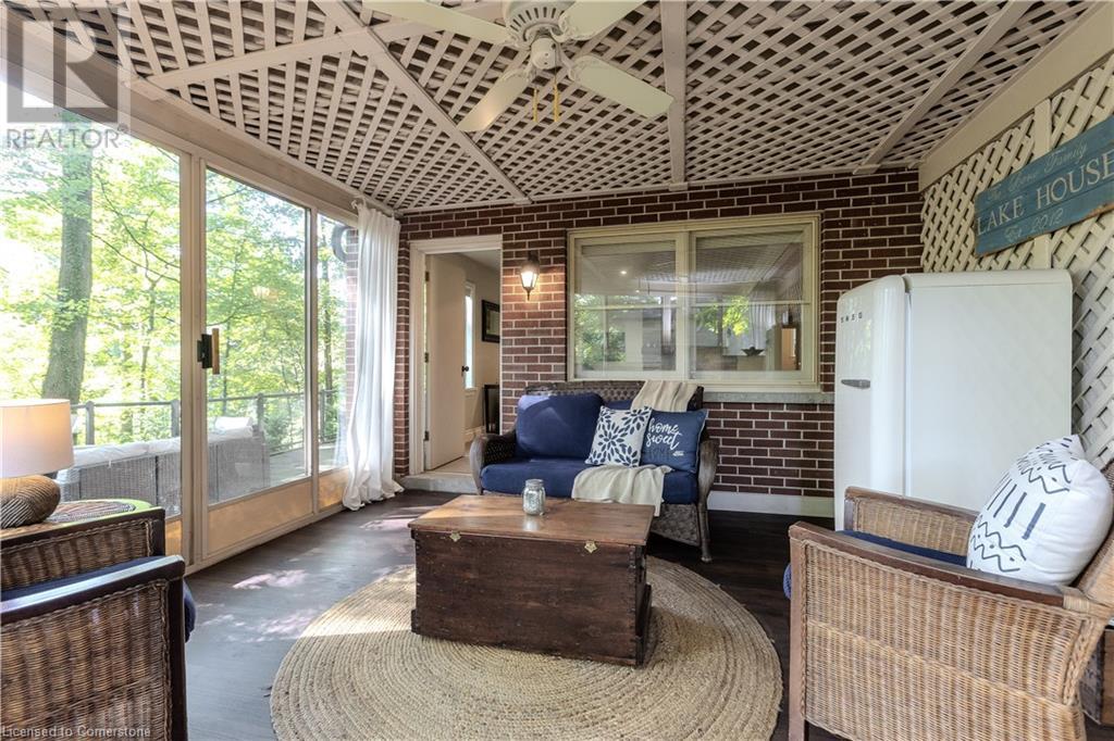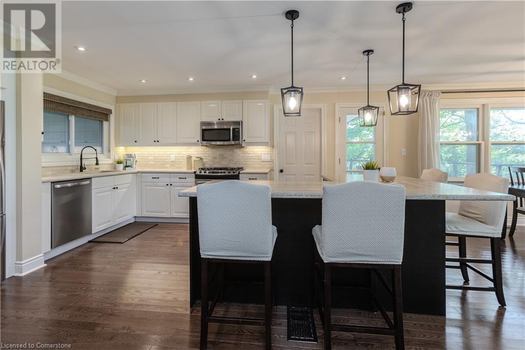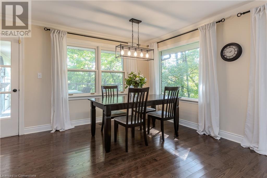 Incredible bungalow on one of Aldershot's prettiest streets! This beautifully and elegantly finished home offers seamless indoor-outdoor living with multiple access points to patios, porches, decks, and a sunroom. The professionally landscaped gardens blend perfectly into the stunning natural ravine, featuring an in-ground sprinkler system, exterior garden lighting, and seasonal views of the lake and harbour from fall to spring. Renovated by Bryan Baeumler in 2014 and featured on HGTV's Leave It to Bryan, the main floor and kitchen boast exquisite craftsmanship. Enjoy the open-concept living room with a cozy wood-burning fireplace, gorgeous hardwood, and ceramic floors. The updated kitchen features a pantry with rough-in for a future 2-piece bathroom, while the three-season sunroom could be easily converted into a four-season retreat. The main floor also includes two spacious bedrooms and a beautifully renovated bathroom (2021), with a walkout to a deck overlooking the serene ravine. The backyard offers a flagstone patio and a Beachcomber hot tub, perfect for relaxing and enjoying nature. The lower level features a walkout to the ravine, large picture windows, an additional bedroom, and a renovated bathroom with heated floors. There’s also a family room with a gas fireplace, a workout room, and updated laundry (2023). Updates include a double car garage with Tesla EV charger (2022), roof shingles (2012), and extra storage under the garage. This property is not to be missed! (id:55009)