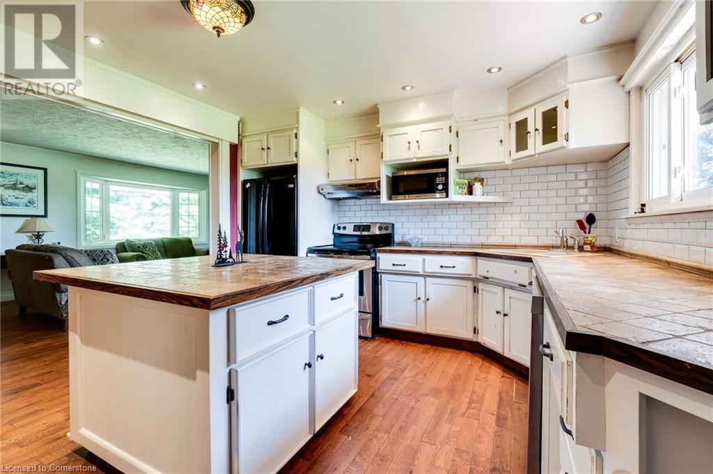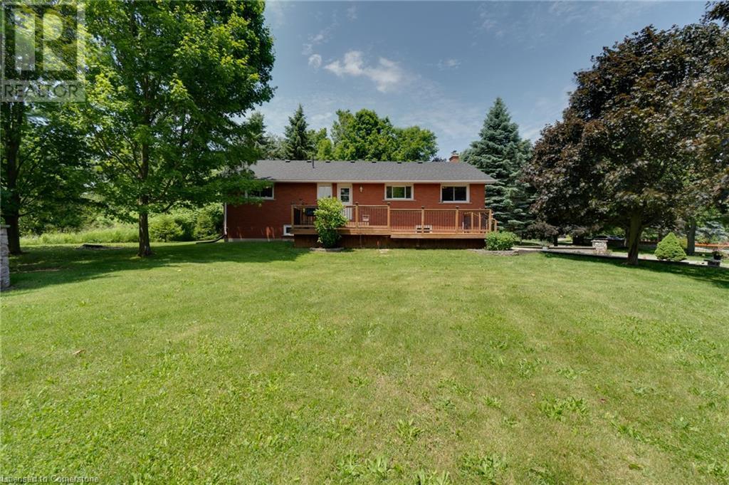 Nestled on a serene half-acre country property in Halton Hills, this charming 3-bedroom, 2-bath bungalow showcases meticulous pride of ownership with just two owners since its construction in 1973. The home features a detached garage and a separate basement entrance, offering 1,465 square feet of upper-floor living space that includes a primary bedroom with ensuite privileges. This spacious home boasts a large kitchen with abundant counter space, perfect for culinary enthusiasts. It includes a separate dining room ideal for hosting gatherings. The property boasts an additional 1465 square feet of lower living space, highlighted by a generously sized entertainer's rec room that offers ample room for leisure and social activities, complete with a wet bar. Experience tranquility in this home's serene setting, complemented by a farmer's field behind, providing additional privacy with no rear neighbours. Outdoor amenities include a spacious back deck perfect for entertaining. Located between Milton and Acton, this rural retreat provides a perfect balance of peaceful country living and convenient access to nearby amenities. (id:55009)