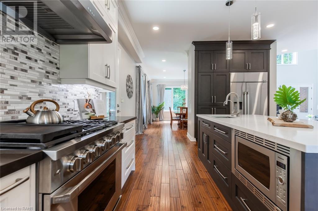 This stunning custom-built home completed in 2021, is nestled in the heart of escarpment country.Multiple upgrades include high-end DACOR kitchen appliances; 6 burner s/s gas stove,s/s fridge,s/s dishwasher, 2 sinks,4x8ft island,open,Acacia Hardwood flooring throughout,10FT Ceilings,TWO luxurious primary bedrooms with ensuite bathrooms equipped with heated towel racks and floors,a lower-level entertainment area with fireplace, kitchenette, bedroom, 3 piece bath. The home offers a sense of expansiveness with its light-filled open-concept design,skylight brightening the living space, and large windows framing scenic views of nature.Independent heating and air conditioning systems for the upper and lower levels ensure optimal comfort.Enjoy both indoor luxury and outdoor serenity with covered and open decks and inviting patios.Benefit from Milton city services, lively entertainment and nightlife,all while embracing the beauty of the great outdoors.Explore seven conservation areas in Halton, offering activities like hiking,biking,swimming,skiing, or simply relax at Kelso beach.Access the Bruce Trail directly from your backyard. A quick 5-minute drive will take you to the charming restaurants and shops of downtown Campbellville. Conveniently situated near the 401, GO Train stations,restaurants,shops, and grocery stores in Milton,Mississauga,and Burlington. Only a 25-minute drive to Pearson airport;45 minutes to Toronto.10-15min to local schools (HDSB). View more: 7774GuelphLine.com (id:55009)