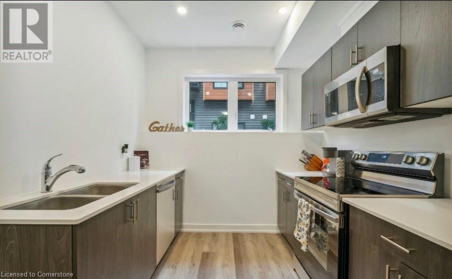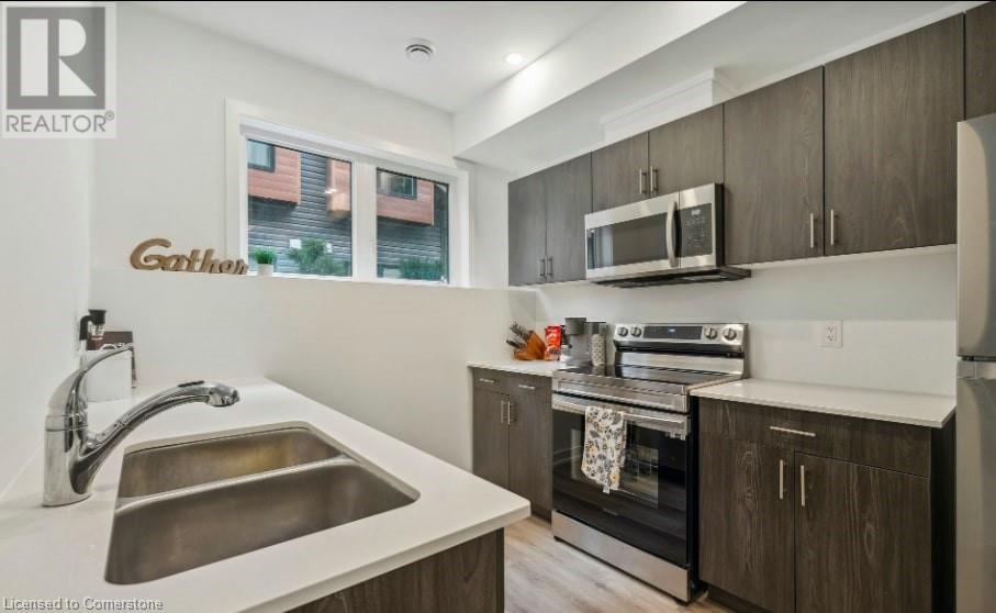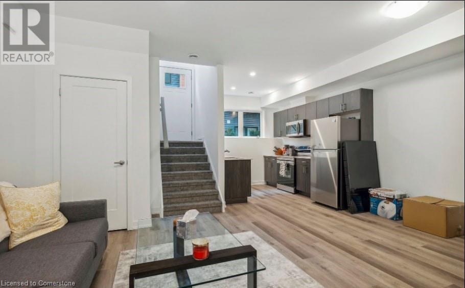 Welcome to this stunning newly constructed townhouse in the charming city of Welland, a true gem in an excellent position. With one bedroom and one bathroom, this home provides an amazing living experience. Step inside and be enchanted by the abundant natural light and inviting areas. - Amazing townhouse with one large bedroom! - Open concept and improved kitchen with newer stainless steel appliances (FRIDGE, STOVE AND MICROWAVE) and ample storage in the magnificent cabinets. Ideal for cooking a delicious supper while spending time with family and friends. - Right next to the kitchen is a wonderfully lit living room where you may watch movies and spend quality time with loved ones. Oversized windows that let in plenty of natural light! - Vinyl flooring is easy to maintain throughout the house, including the carpets in the bedroom. - Spacious bathroom comes with a walk-in shower with shower seat. - Available parking spaces on the driveway. - This townhome is very close to the Niagara College Welland campus and has easy access to the 406 highway (id:55009)