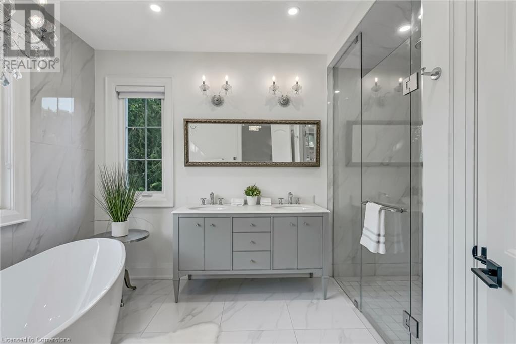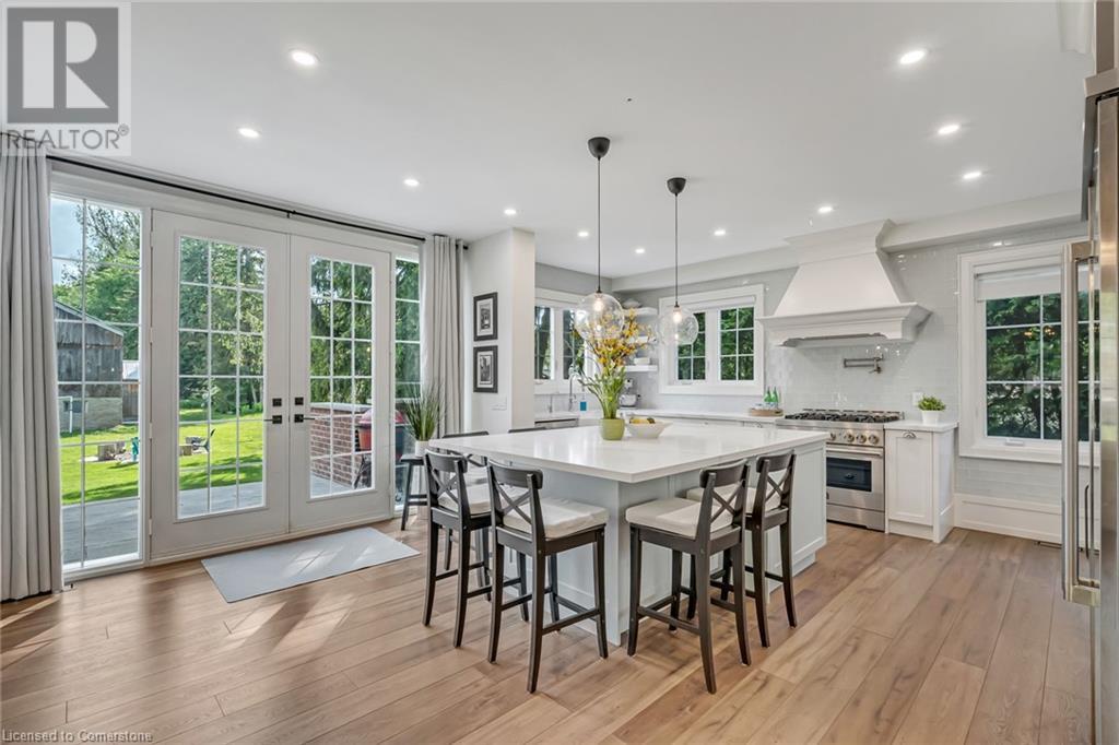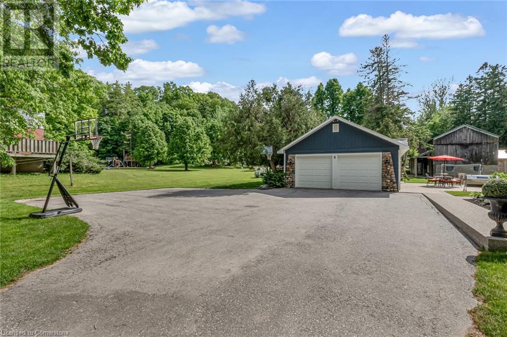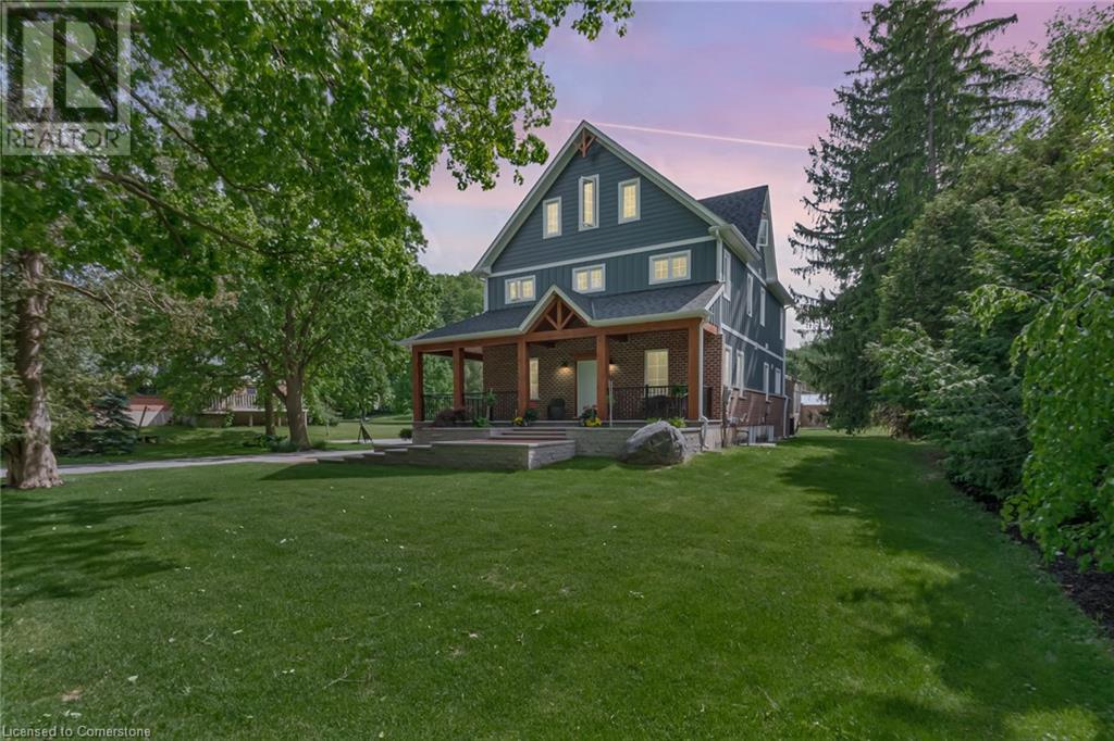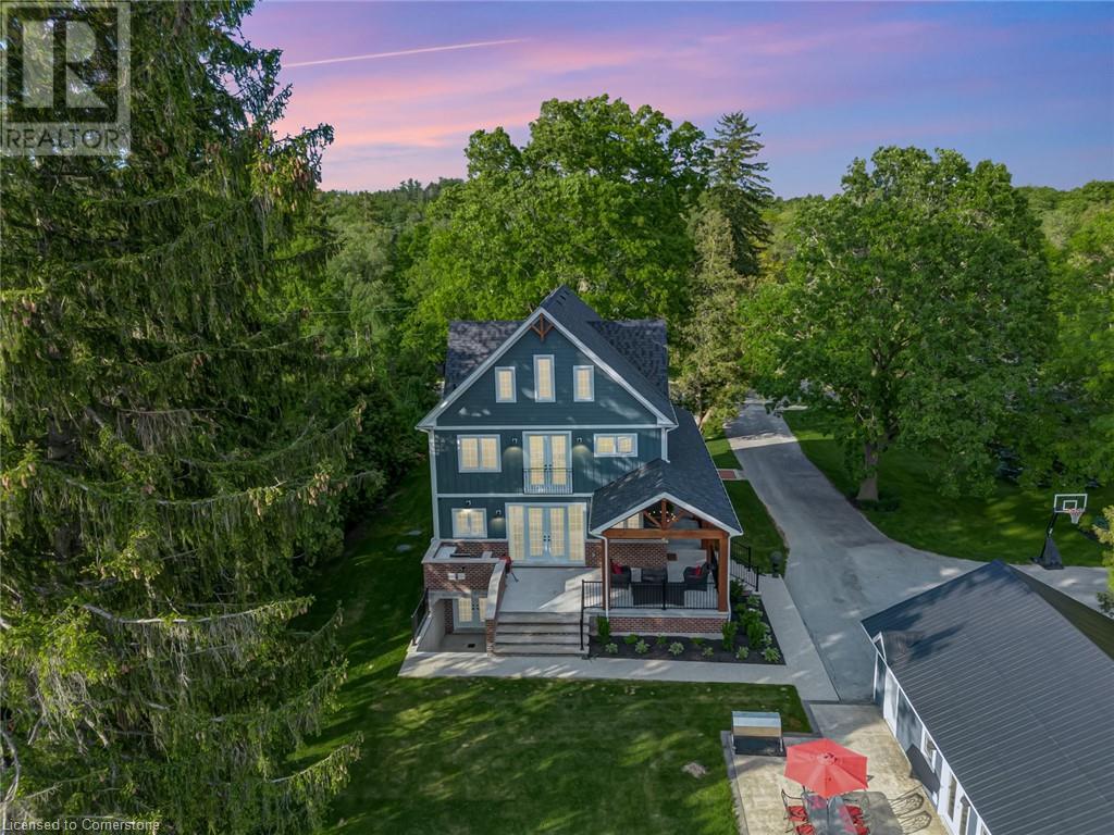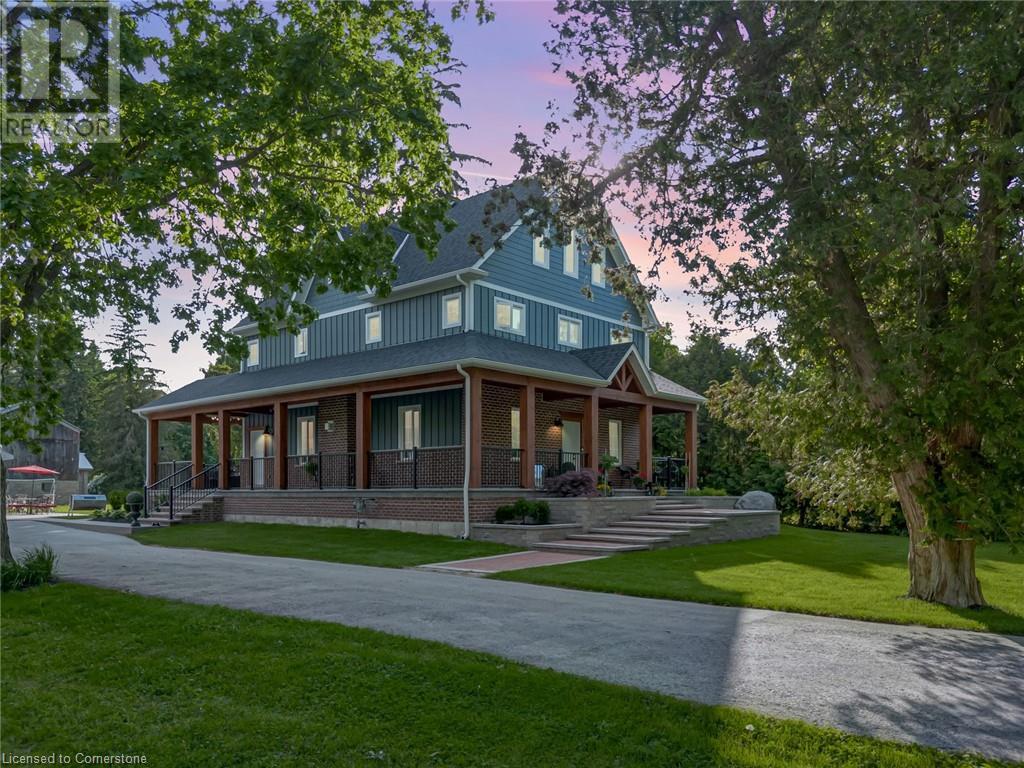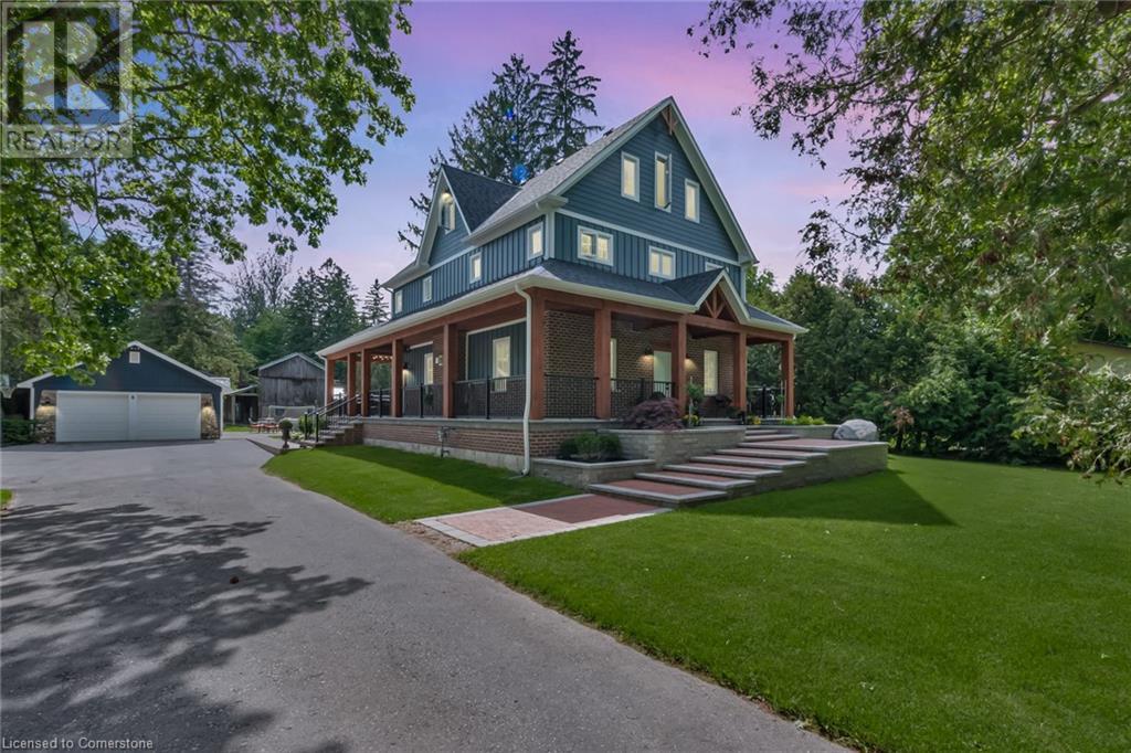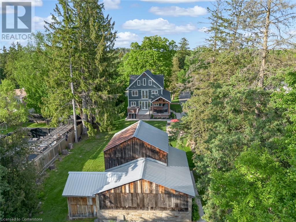 Discover modern style and historic charm in this exceptional modern farmhouse 5-bed, 5-bath custom built home on nearly 1 acre in Glen Williams, Georgetown, Ontario. This stunning property boasts a nearly 3,100 sq. ft. home, separate 4 car-garage and a large functional barn; and features a wrap-around porch, 9' ceilings on all levels; a gourmet kitchen with high-end appliances and a walk-in pantry with a built-in freezer; heated floors in all washrooms and in-floor heating throughout the basement; and a large double door walk-up to the large pool-sized yard. The main floors open-concept design includes a family room with a gas fireplace, a dining area and private office. The 2nd floor offers a large primary suite with a Juliet balcony, a large walk-in closet and a luxurious 5-piece ensuite with heated floors; 2 additional bedrooms with large closets and a 4 piece jack and jill washroom; laundry room with natural light. The third-floor loft includes two additional large bedrooms with a 3 piece jack and jill ensuite; and a media room. The unfinished basement offers in-floor heating, rough-ins for a kitchen and bathroom, a large cantina with a walkout, and above-grade windows. Equipped with a furnace, tankless boiler, hot water tank, 200 Amp service, and a separate walk-up entrance, this smart home also features Bluetooth control and a security system with cameras. The 4-car tandem garage includes a full kitchen and a 3-piece bathroom, adding versatility. Perfect for entertaining, the backyard includes a covered patio, outdoor gas BBQ, large barn with a mezzanine, bonus shed, and a tree house with electricity. This modern farmhouse offers a unique blend of style, location, and functionality and is just a short walk to the hamlet of Glen Williams, enjoy easy access to kayaking, fishing, local shops, restaurants, and cafes. Nearby Georgetown GO station and Eagle Ridge Golf Club add to the lifestyle and convenience.. Don't miss this exceptional property! (id:55009)