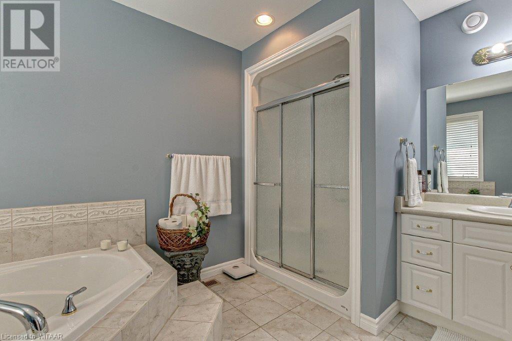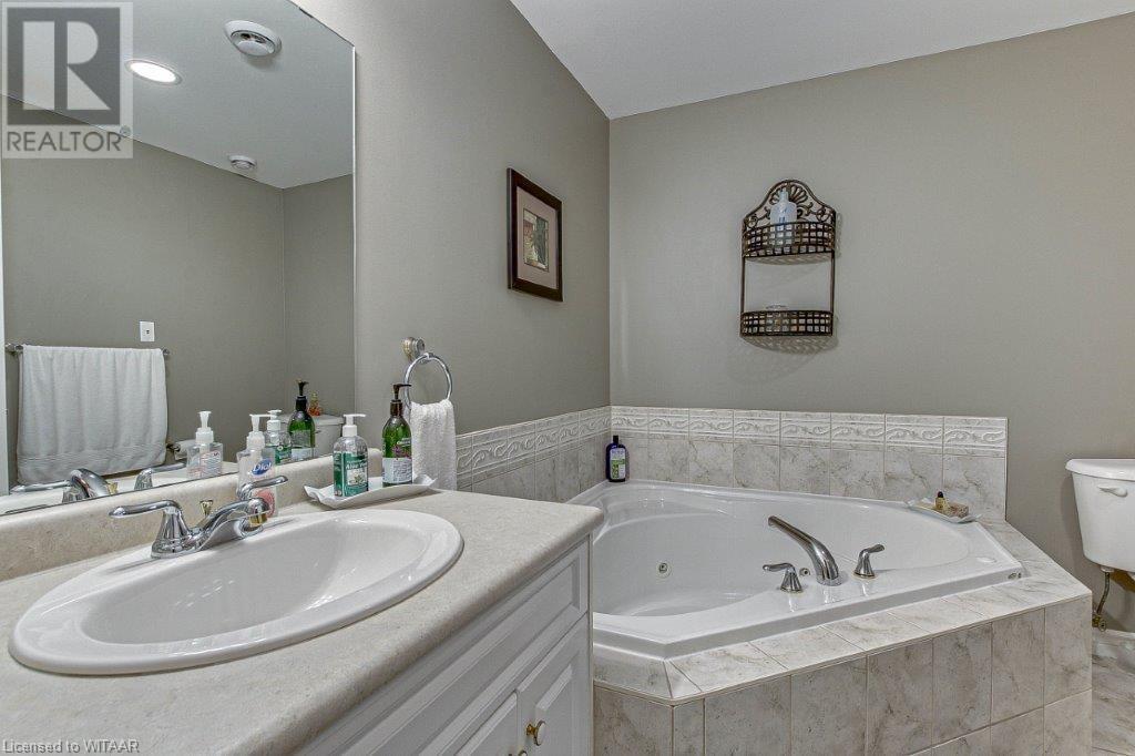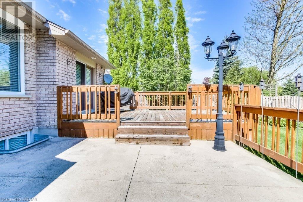 LOVELY BUNGALOW SITUATED IN THE QUIET CUL DE SAC OF NORSWORTHY LANE A HIGHLY DESIRED NEIGHBOURHOOD OF SOUTH-EAST INGERSOLL. CUSTOM DESIGNED ONE OWNER HOME BUILT BY WILLSIE DISTINCTIVE HOMES. ATTRACTIVE OPEN CONCEPT FLOOR PLAN WITH IMPRESSIVE TEN FOOT CEILING CORRIDOR FROM FOYER THROUGH THE GREAT ROOM. BEAUTIFUL KITCHEN WITH UPGRADED CABINETRY, WALK-IN PANTRY AND BREAKFAST COUNTER. SPACIOUS DINING ROOM, STATELY GAS FIREPLACE WITH CUSTOM OAK MANTEL AND PATIO DOOR ACCESS TO A 12 X 18 FT DECK AND EXTENDED PATIO. GENEROUS SIZE PRIMARY BEDROOM WITH 5 PC ENSUITE AND WALK-IN CLOSET. FRONT BEDROOM OR POSSIBLE OFFICE, 2 PC POWDER ROOM AND CLOSET WITH MAIN FLOOR LAUNDRY OPTION. THERE ARE 2 ADDITIONAL BEDROOMS IN THE BASEMENT AND ANOTHER 5 PC BATHROOM, A LARGE REC ROOM, GAMES ROOM PLUS A SIZEABLE UTILITIES STORAGE ROOM. BONUS PRIVATE ENTRANCE FROM GARAGE DIRECTLY TO BASEMENT PROVIDES AN IDEAL OPPORTUNITY FOR AN IN-LAW SUITE OR LIVING SPACE FOR YOUR EXTENDED FAMILY. AMPLE PARKING WITH THE DOUBLE CAR GARAGE AND INTERLOCKING STONE DRIVEWAY. 8 X 10 STORAGE SHED ON A CONCRETE PLATFORM WITH HYDRO IN THE FULLY FENCED BACK YARD WHICH IS LANDSCAPED AND PRIVATE. CLOSE TO ALL AMENITIES WITH EAST ACCESS TO MAJOR HIGHWAYS. SIMPLY A WONDERFUL HOME!!! (id:55009)