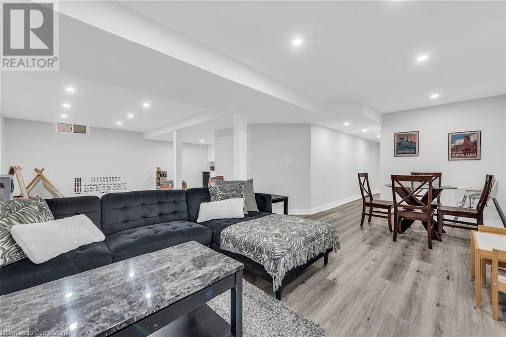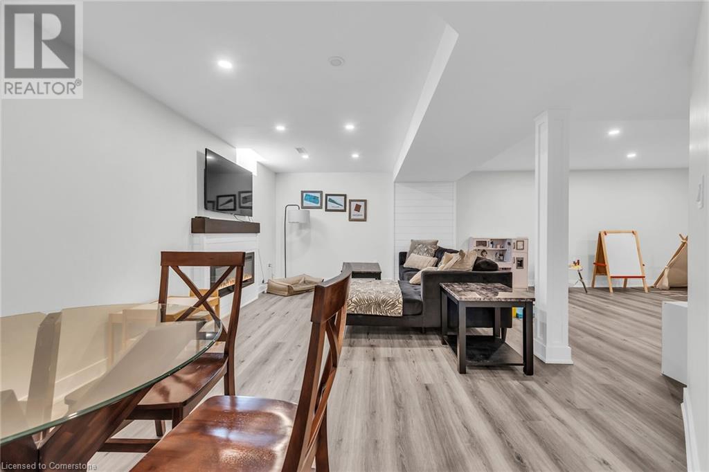 LAKESIDE STUNNER!!! Welcome to one of Stoney Creek’s most sought-after neighborhoods, just steps from the scenic beauty of Lake Ontario and minutes from all amenities. This stunning 3-bed, 4-bathroom home offers a perfect blend of luxury and comfort. As you step through the front door, you'll be greeted by a charming foyer, complete with a spacious closet and a stylish 2-piece bath. As you enter the formal dining room with gleaming hardwood floors, seamlessly flowing into a gourmet kitchen. Featuring granite countertops, chic backsplash, breakfast bar, and stainless steel appliances, perfect for both everyday living and entertaining. Adjacent to the kitchen, the cozy dinette area overlooks your private, fully fenced backyard backing onto green space with no direct rear neighbors. The family room with custom mantel and fireplace, creates a perfect setting for gatherings and relaxation. Upstairs, the luxurious primary bedroom awaits, featuring a walk-in closet and 5-pc ensuite bath with double sinks, soaker tub, and shower. Two additional bedrooms, a 4-pc bath, and a convenient laundry room complete the upper level. The fully finished basement offers even more living space, including a cozy living room with mantel and fireplace, a versatile play area or rec room with a wet bar and a convenient 2-pc bath. . Situated in a family-friendly neighborhood, you’re within walking distance of parks and schools and just minutes from the QEW. (id:55009)
