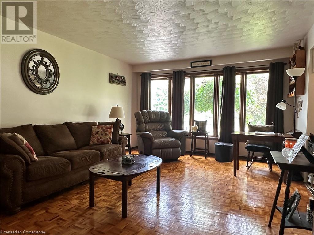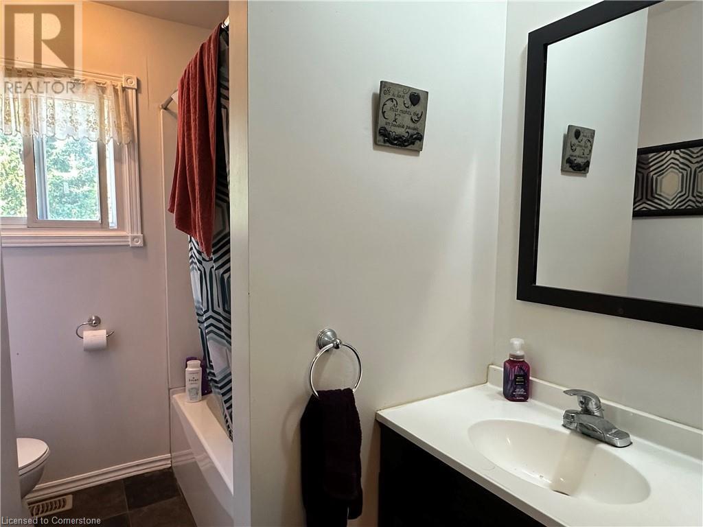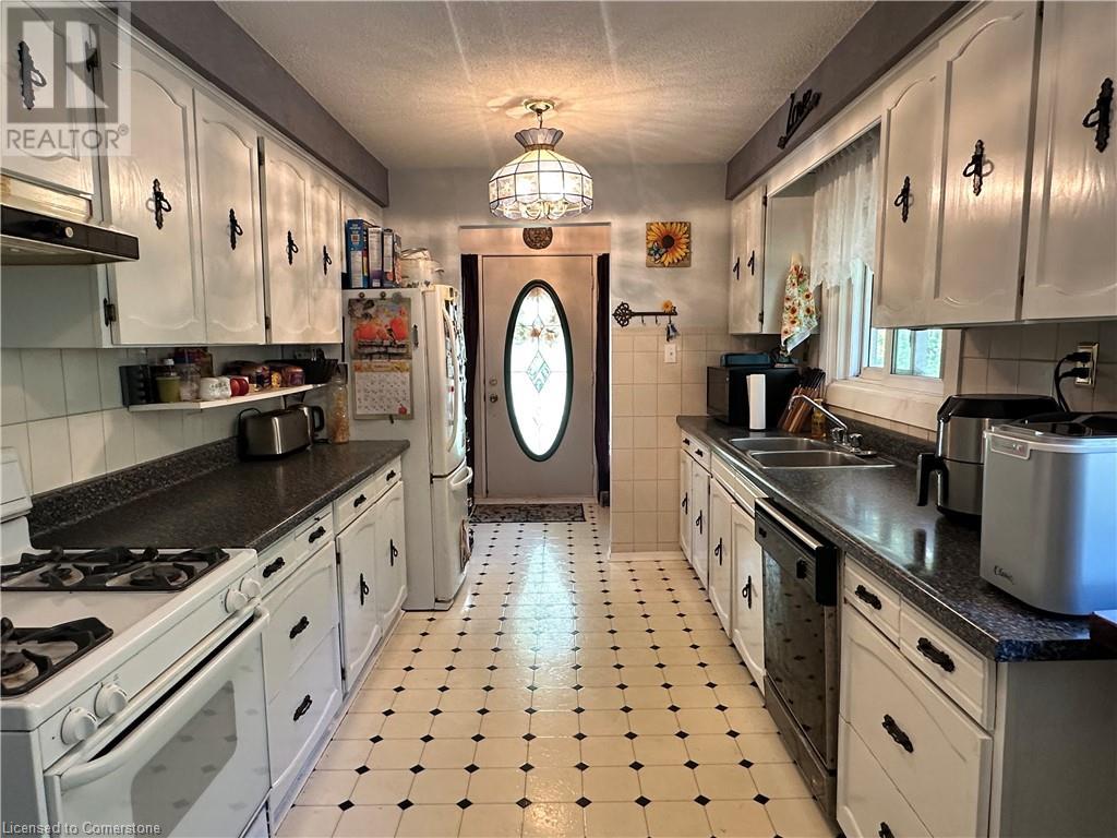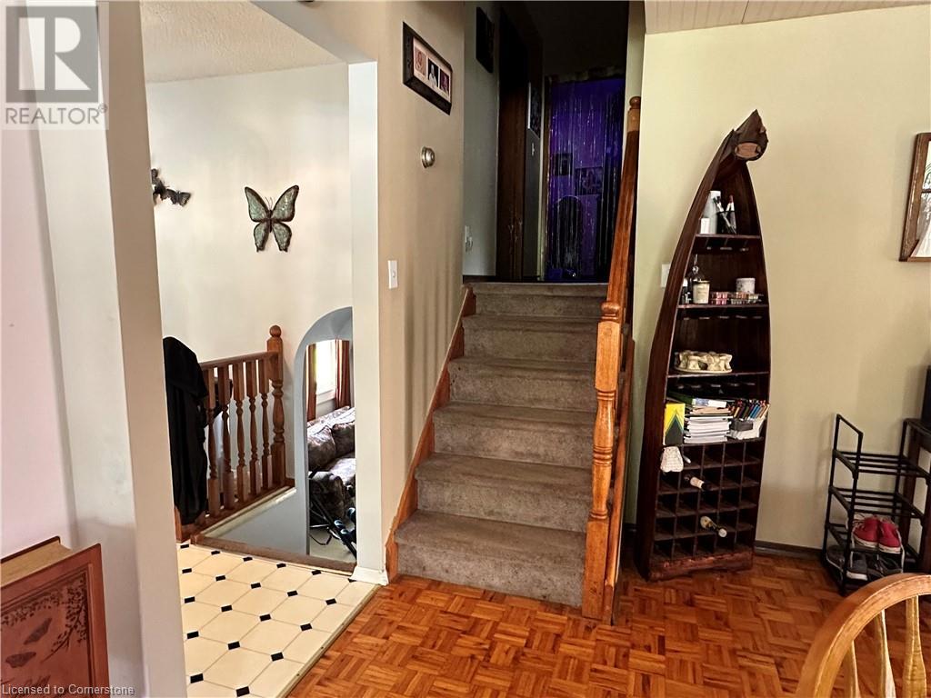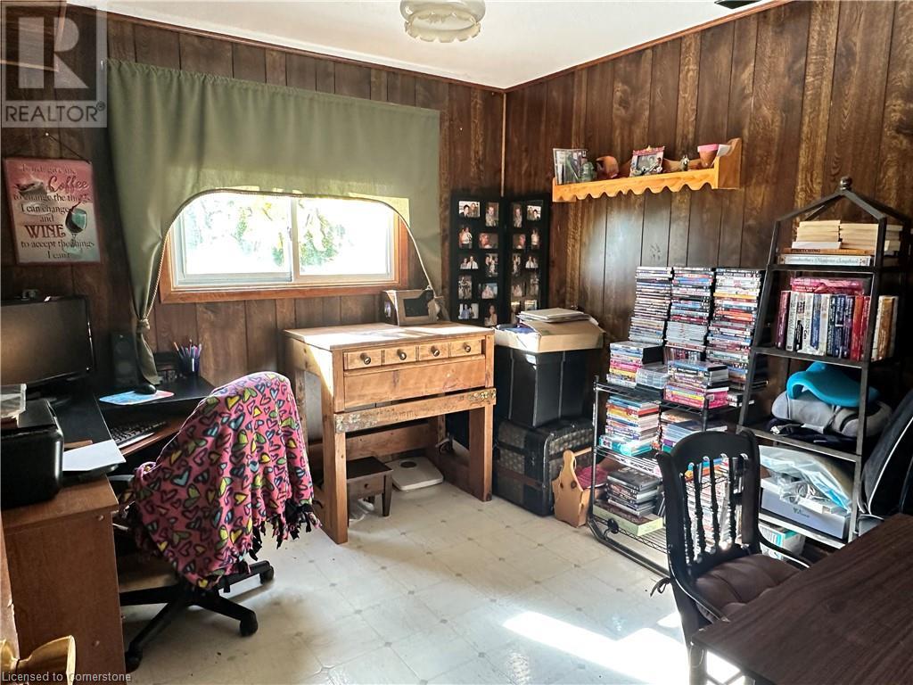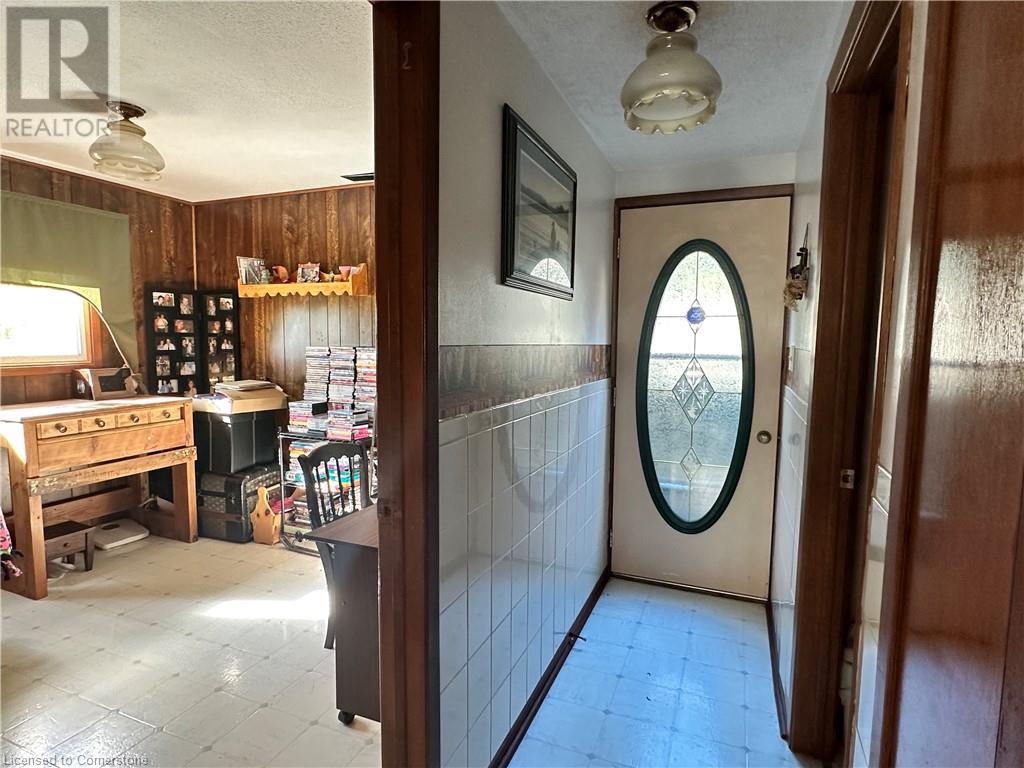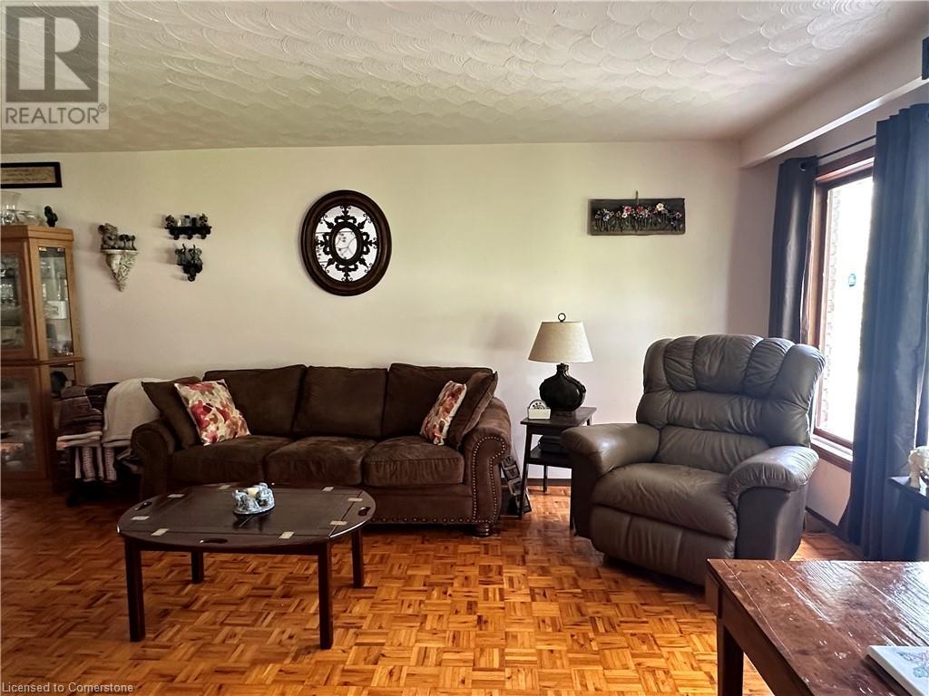 Ideal multi level on sought after mature country lot. Offers wide open southern views over farm fields-plus neighbouring forest on the west blocks prevailing winds and provides great privacy. The wide paved drive leads to brick home with covered front porch and oversized 2 car garage . Inside the main floor eat in kitchen with white cabinetry living room / dining room slider to roomy deck with hot tub. The lower lever features a rec room with natural gas fire place, a second bath, a den (or 4th bedroom) and walk up to the side yard. The basement offers a cedar sauna, a hobby room with natural gas stove on a brick hearth and a bonus second walk up to the garage. Other features include a 2019 metal roof and recent garage door! (id:55009)