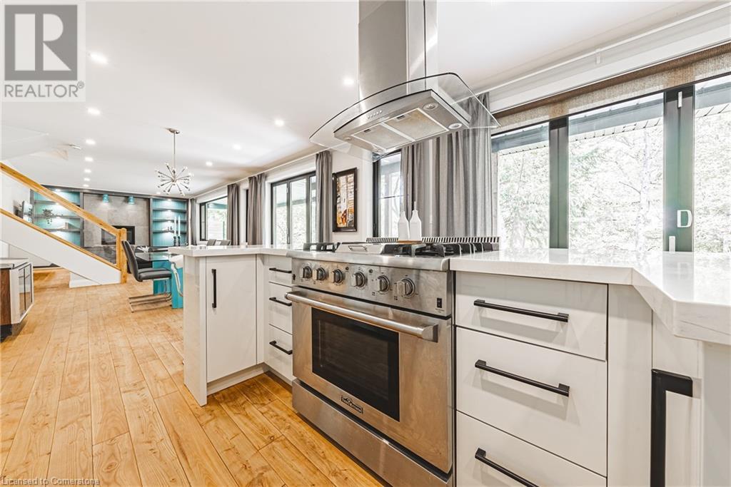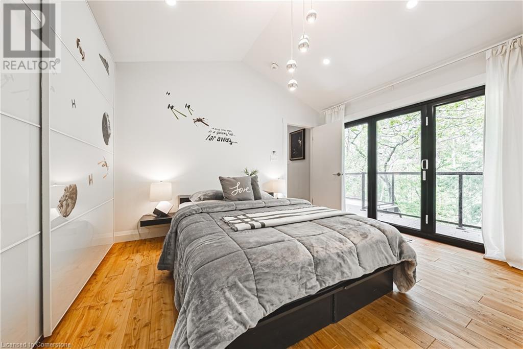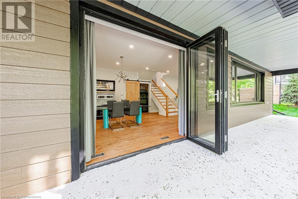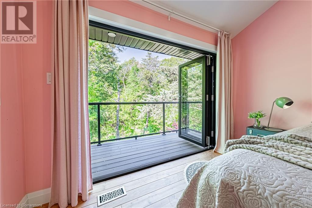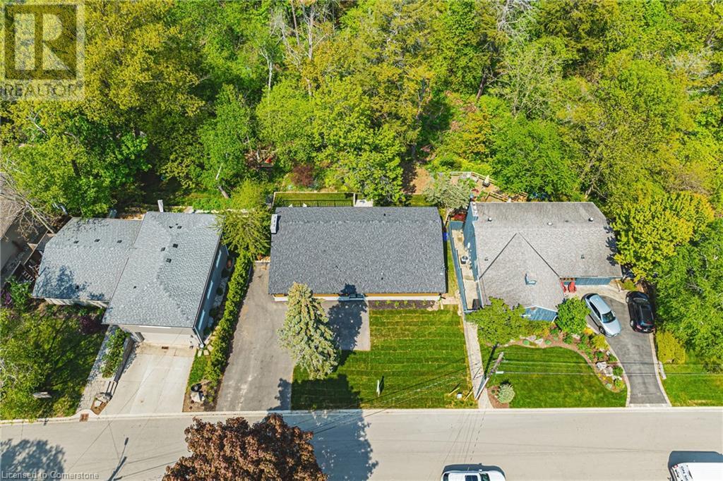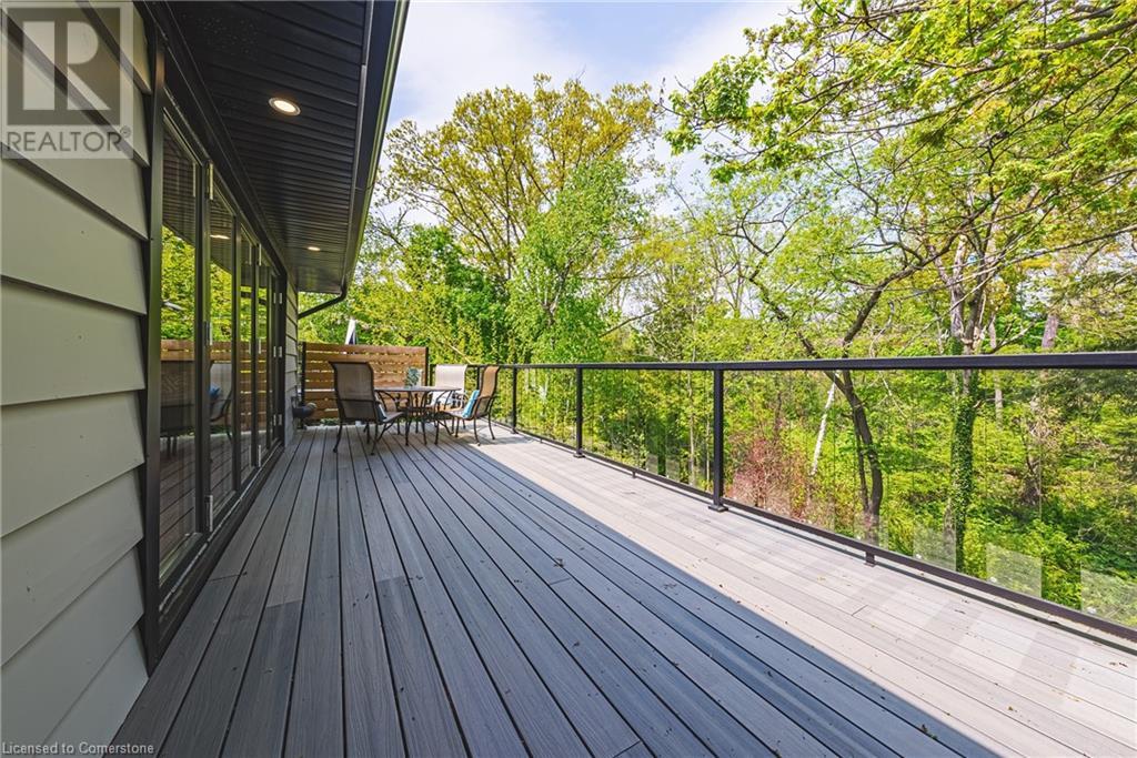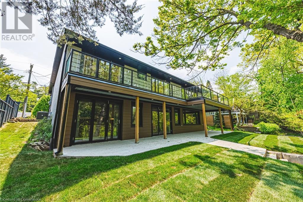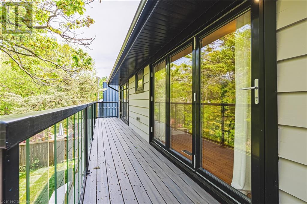 This stunningly renovated mid-century modern home is situated in the prestigious North Shore area of Aldershot. Property has been remodeled top to bottom with premium features including high-end cabinetry and appliances, Concertina doors connect the interior of the home to an abundance of outdoor entertaining space & ravine views. Spacious entryway has hall closet and easy access to all 4 levels of the home. An office complete with laundry and guest/second master suite are located on this level. Beautifully finished open-concept living/dining/kitchen area complete with 2nd prep kitchen adorns the lower level and provides access to additional storage and a mechanical room. Built-in cabinetry, spacious seating area, gas-burning fireplace & views of the ravine make this space an entertainer's dream. Upper family room provides further space for hosting or relaxing and comes with pellet stove for those cold winter nights, original 70's disco ball and balcony area for unforgettable evenings. This level is finished with two well-sized bedrooms, both of which have access to the balcony that runs the entire length of the home and come complete with ensuite privileges, floor-to-ceiling closets & uninterrupted ravine views. Both the interior and exterior of the home have been expertly finished with remarkable craftsmanship and attention to detail. Freshly laid sod and landscaping completed this past spring. Architectural drawings for garage/master suite addition available. (id:55009)
