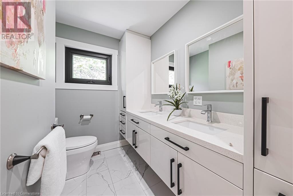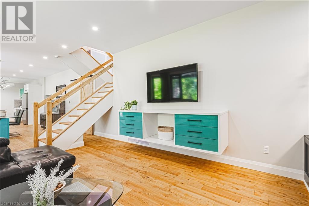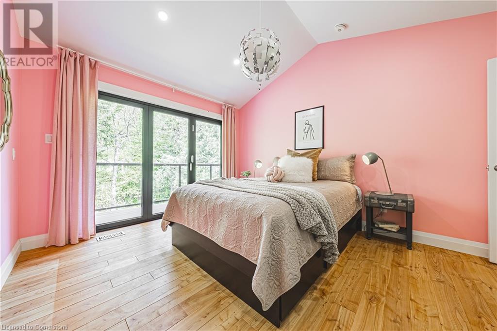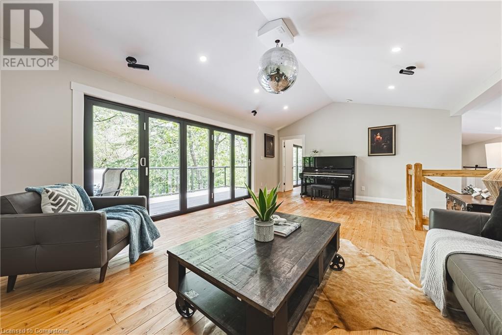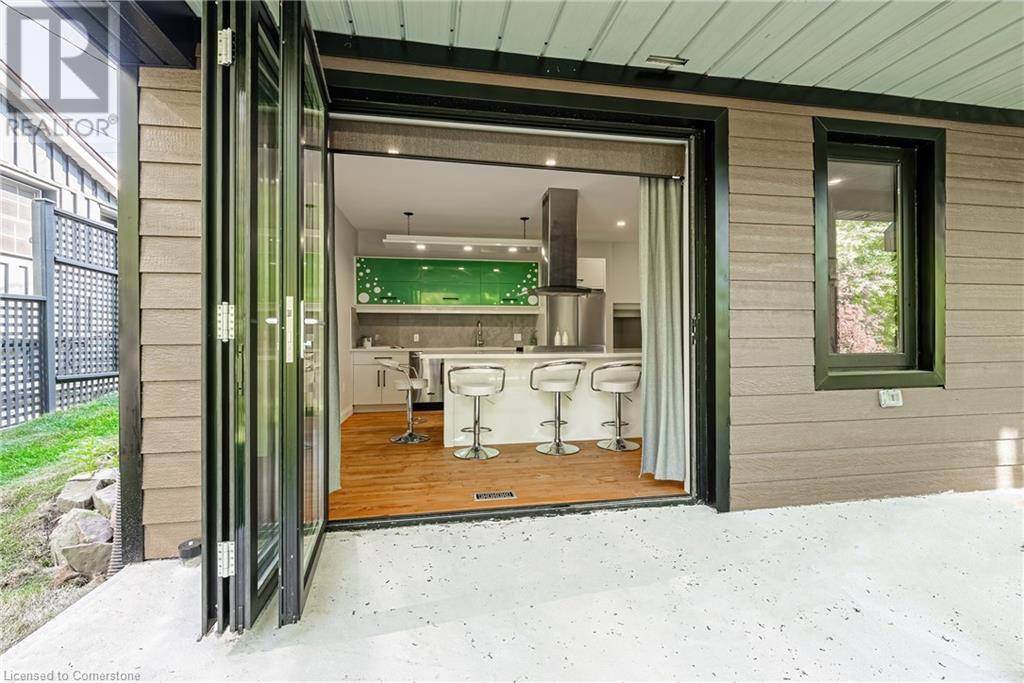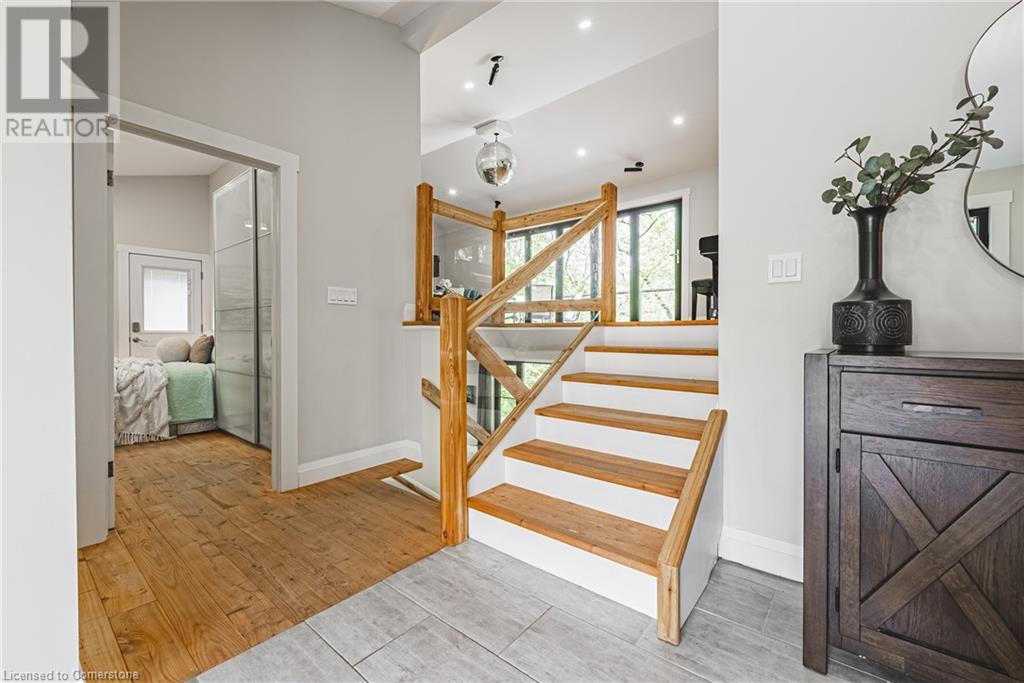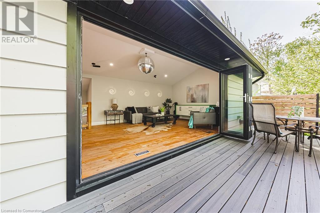 This stunningly renovated mid-century modern home is situated in the prestigious North Shore area of Aldershot. Property has been remodeled top to bottom with premium features including high-end cabinetry and appliances, Concertina doors connect the interior of the home to an abundance of outdoor entertaining space & ravine views. Spacious entryway has hall closet and easy access to all 4 levels of the home. An office complete with laundry and guest/second master suite are located on this level. Beautifully finished open-concept living/dining/kitchen area complete with 2nd prep kitchen adorns the lower level and provides access to additional storage and a mechanical room. Built-in cabinetry, spacious seating area, gas-burning fireplace & views of the ravine make this space an entertainer's dream. Upper family room provides further space for hosting or relaxing and comes with pellet stove for those cold winter nights, original 70's disco ball and balcony area for unforgettable evenings. This level is finished with two well-sized bedrooms, both of which have access to the balcony that runs the entire length of the home and come complete with ensuite privileges, floor-to-ceiling closets & uninterrupted ravine views. Both the interior and exterior of the home have been expertly finished with remarkable craftsmanship and attention to detail. Freshly laid sod and landscaping completed this past spring. Architectural drawings for garage/master suite addition available. (id:55009)