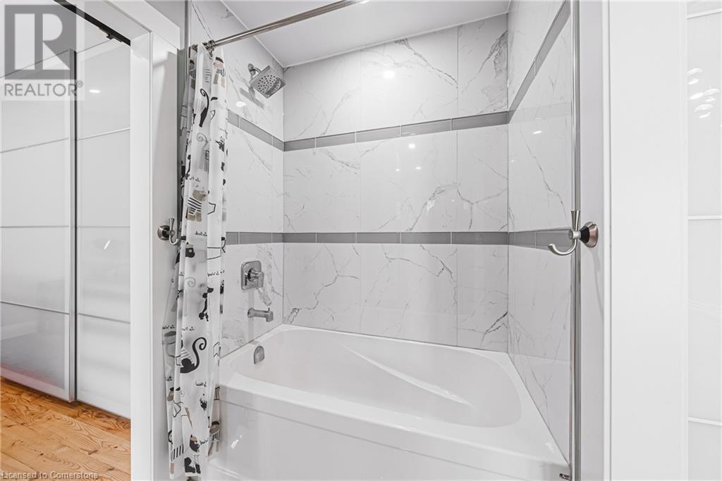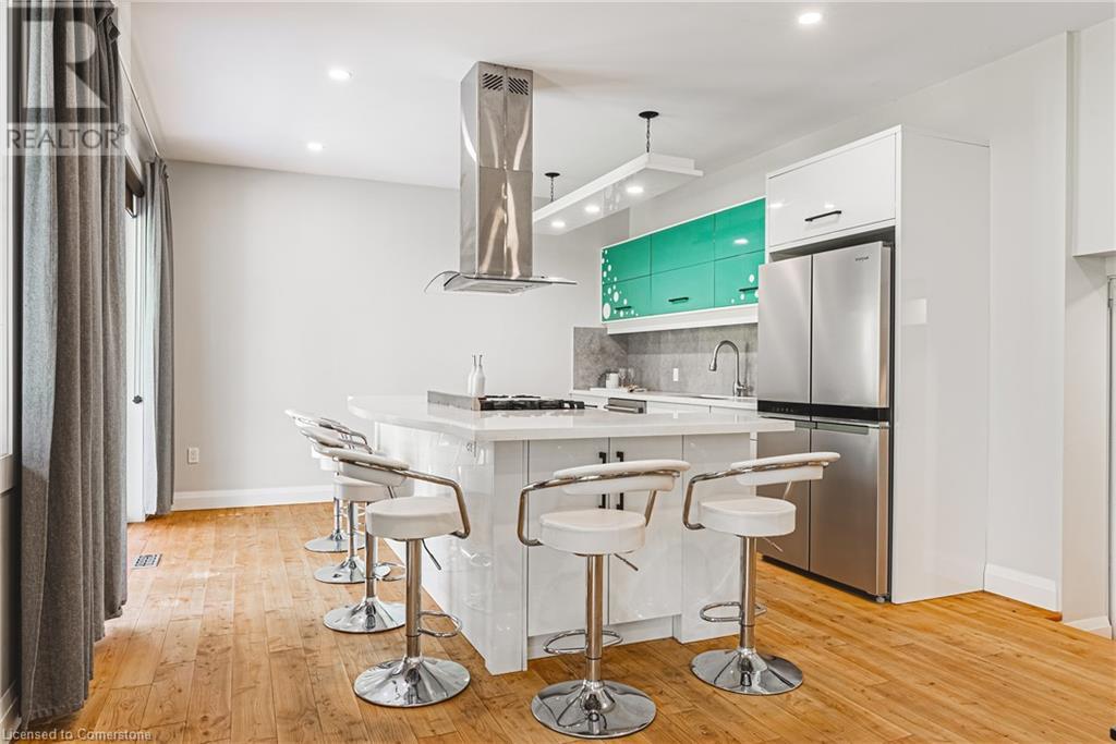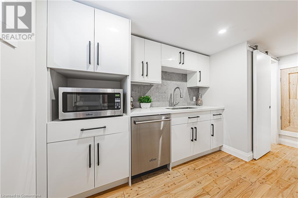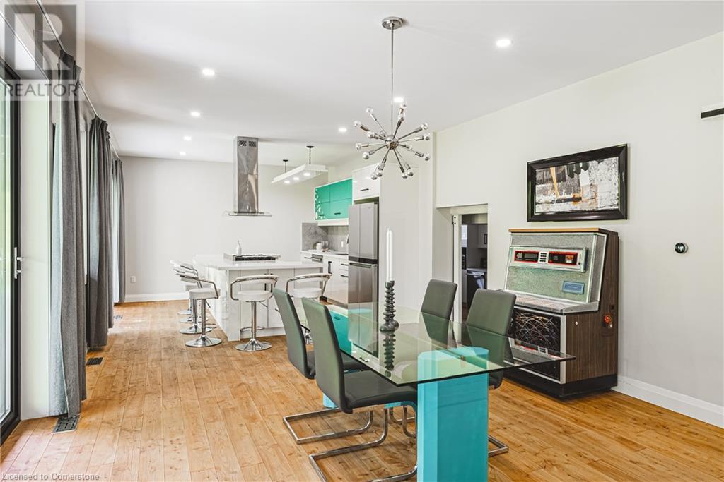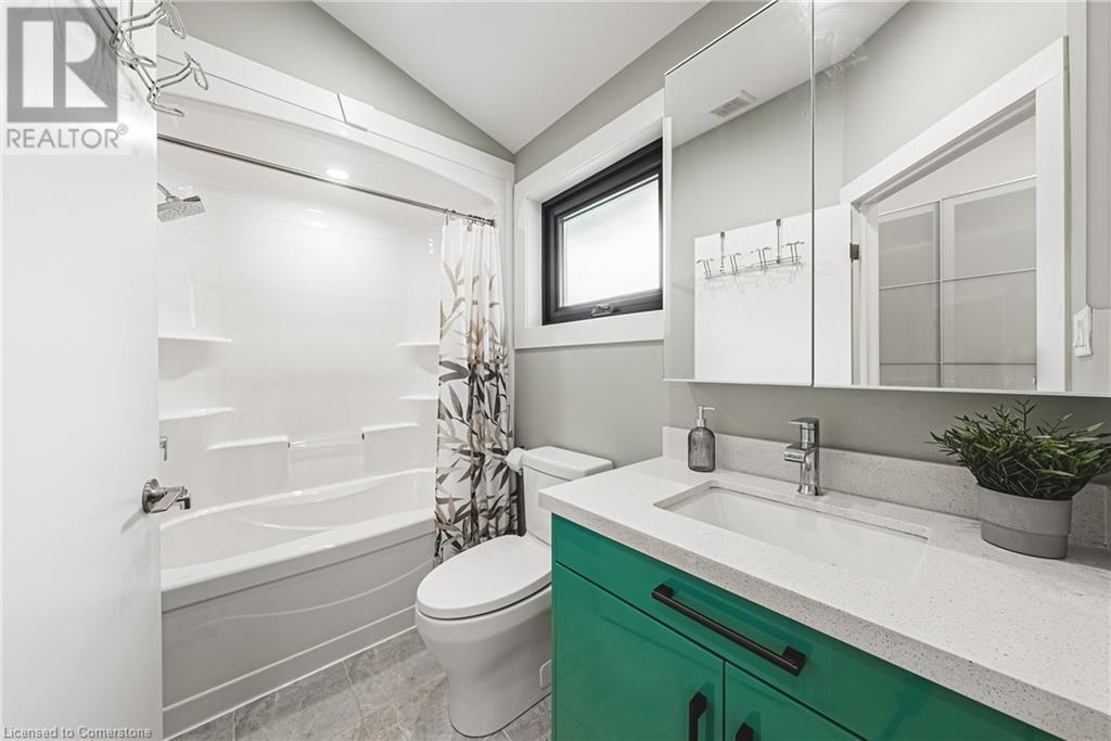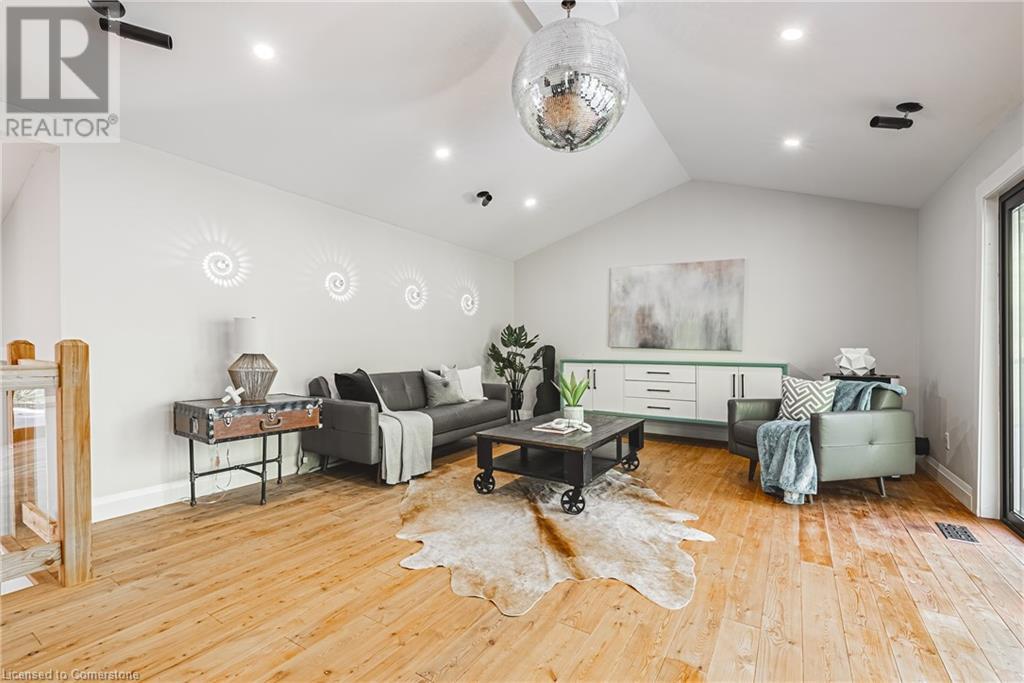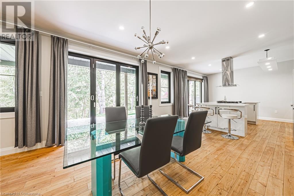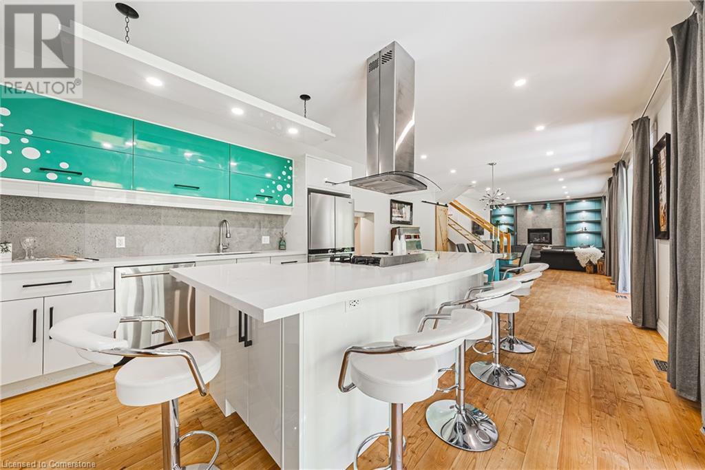 This stunningly renovated mid-century modern home is situated in the prestigious North Shore area of Aldershot. Property has been remodeled top to bottom with premium features including high-end cabinetry and appliances, Concertina doors connect the interior of the home to an abundance of outdoor entertaining space & ravine views. Spacious entryway has hall closet and easy access to all 4 levels of the home. An office complete with laundry and guest/second master suite are located on this level. Beautifully finished open-concept living/dining/kitchen area complete with 2nd prep kitchen adorns the lower level and provides access to additional storage and a mechanical room. Built-in cabinetry, spacious seating area, gas-burning fireplace & views of the ravine make this space an entertainer's dream. Upper family room provides further space for hosting or relaxing and comes with pellet stove for those cold winter nights, original 70's disco ball and balcony area for unforgettable evenings. This level is finished with two well-sized bedrooms, both of which have access to the balcony that runs the entire length of the home and come complete with ensuite privileges, floor-to-ceiling closets & uninterrupted ravine views. Both the interior and exterior of the home have been expertly finished with remarkable craftsmanship and attention to detail. Freshly laid sod and landscaping completed this past spring. Architectural drawings for garage/master suite addition available. (id:55009)