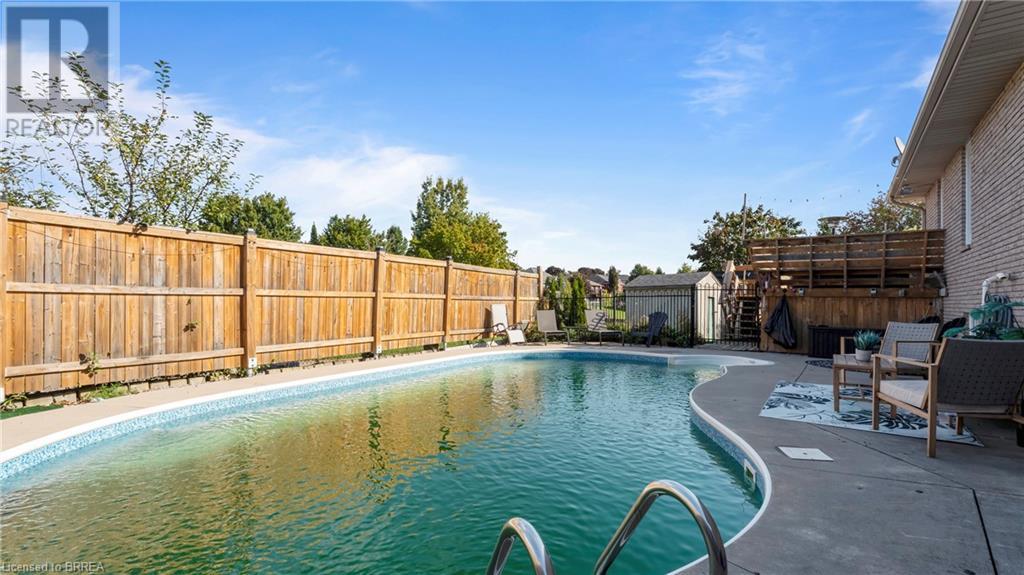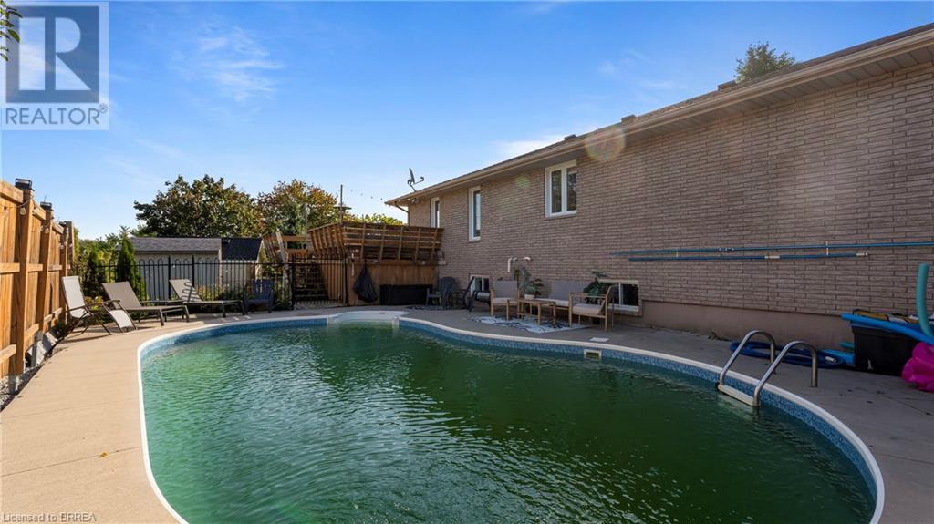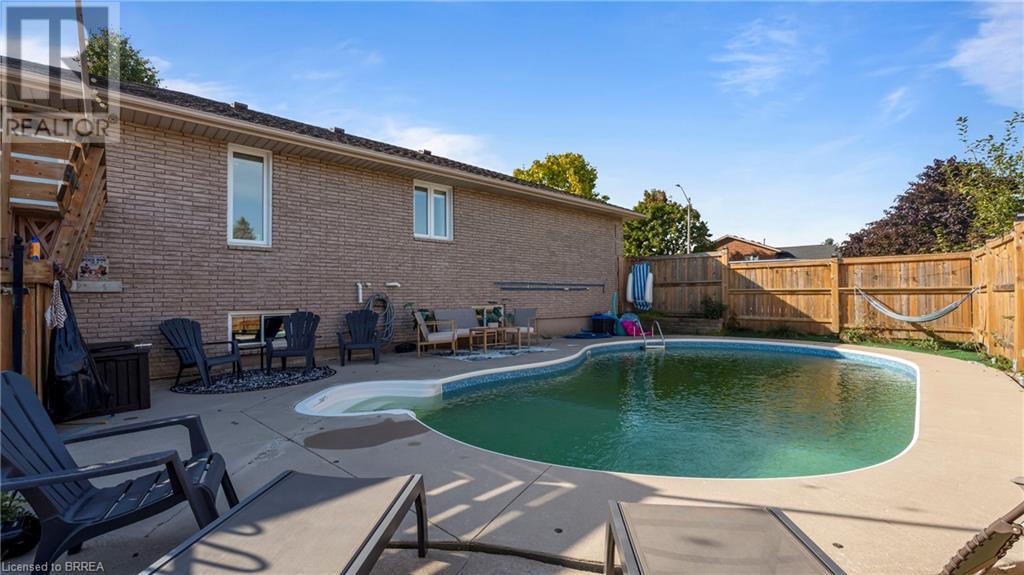 Welcome to your dream family home in the desirable town of St. George! This beautifully finished bungalow features 3 spacious bedrooms and 2.5 bathrooms, perfect for growing families. The updated kitchen boasts modern finishes, ample counter space, and a walk-in pantry, ideal for home chefs and entertaining. Large finished basement with rec room, bar area and 2 large rooms for extra living space. Step outside to your private oasis, complete with a pool and hot tub, perfect for enjoying summer days and starry evenings. The property backs onto a serene park, with playground, providing extra space for outdoor activities. Located in a family-friendly neighborhood, this home offers a blend of comfort and convenience in a community you'll love. Don't miss out on this incredible opportunity to make this house your forever home! Large deck (2020), updated pool liner (2022), pool heater (2023), pool pump filter (2024), New roof in 2017, new windows 2019. appliances as is, Hottub is working but as is. (id:55009)