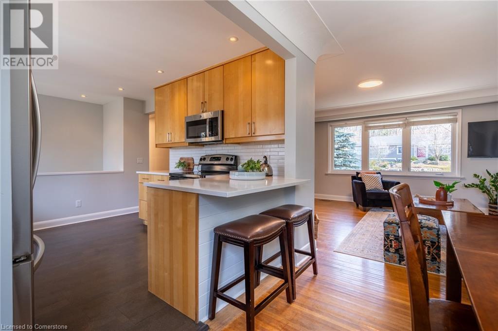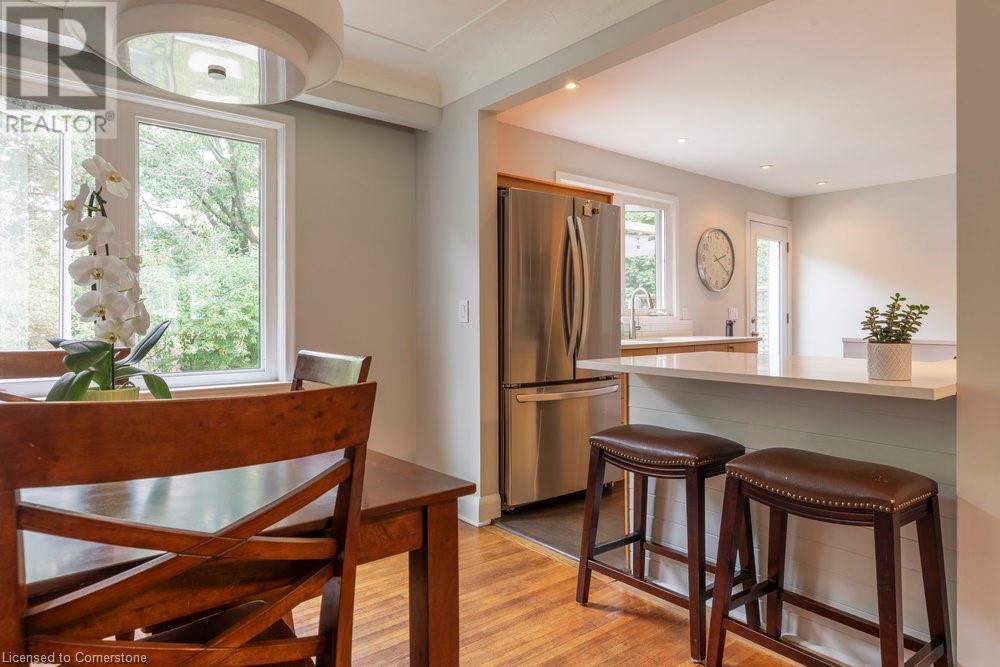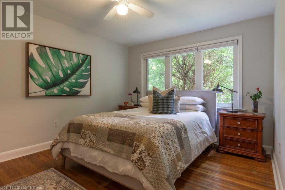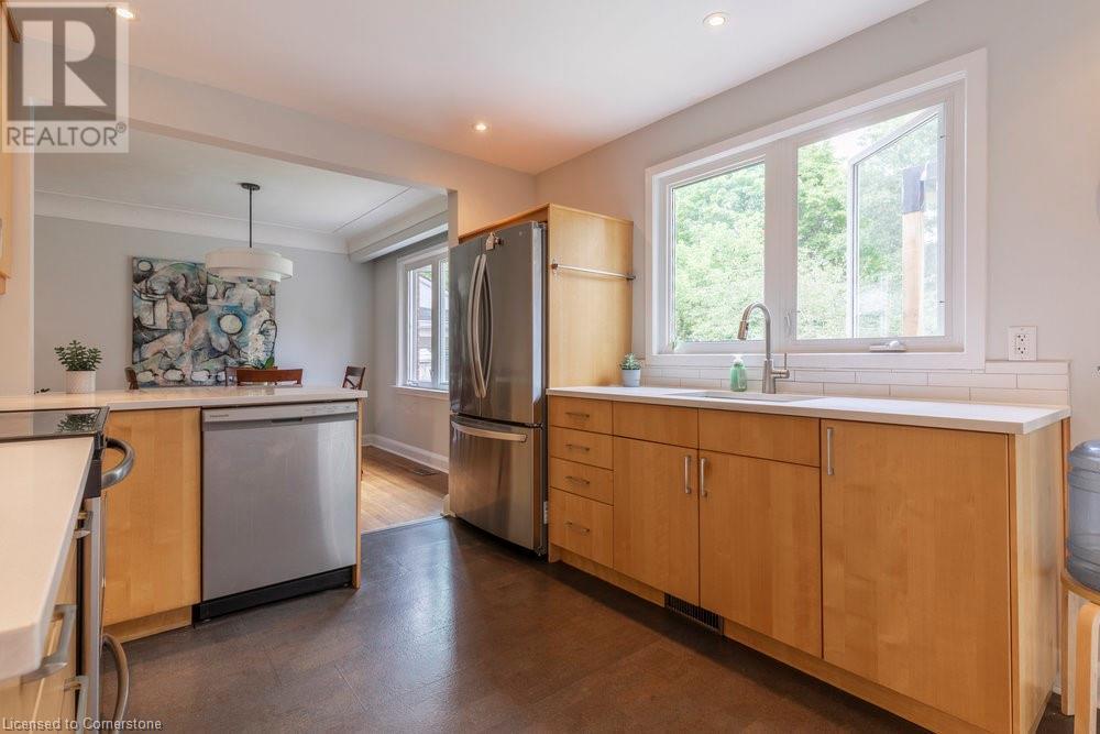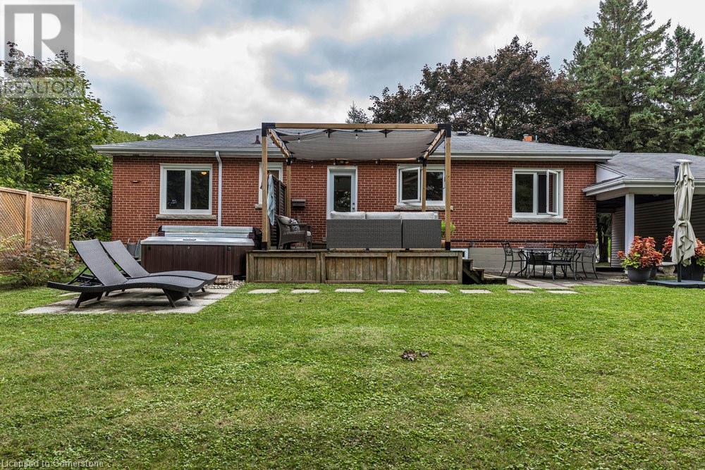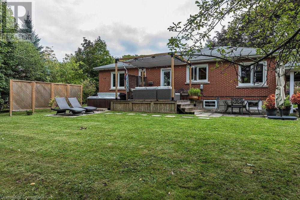 Solid 3-bedroom bungalow in beautiful Ancaster location! Easy access to west Hamilton & Dundas, this well-established neighbourhood is highly sought-after. Mature trees, large front lawn, single car garage and huge driveway with plenty of parking. This home offers an entry foyer with cork floors, a large L-shaped living and dining room with original hardwoods and coved ceilings. The cork floors continue throughout the kitchen which has been updated with quartz counter tops, maple cabinets, tile backsplash and stainless-steel appliances! The 4-piece bathroom has been modernized with a good-sized bath/shower, tile surround and glass shower doors. You will find 3 generous bedrooms, all with original hardwood floors! The recently renovated basement offers fabulous extra living space with a separate rec room, 3-piece bathroom, laundry and utility room and 2 additional bedrooms, The spacious backyard is mature, private and offers a patio space, lawn and hot tub. Freshly painted throughout, this home is ready for you to move-in and enjoy! (id:55009)