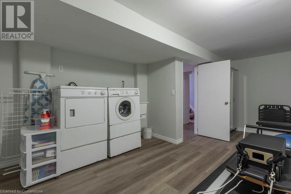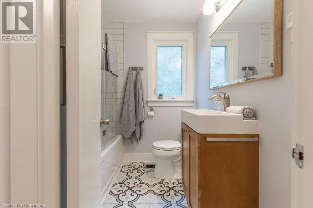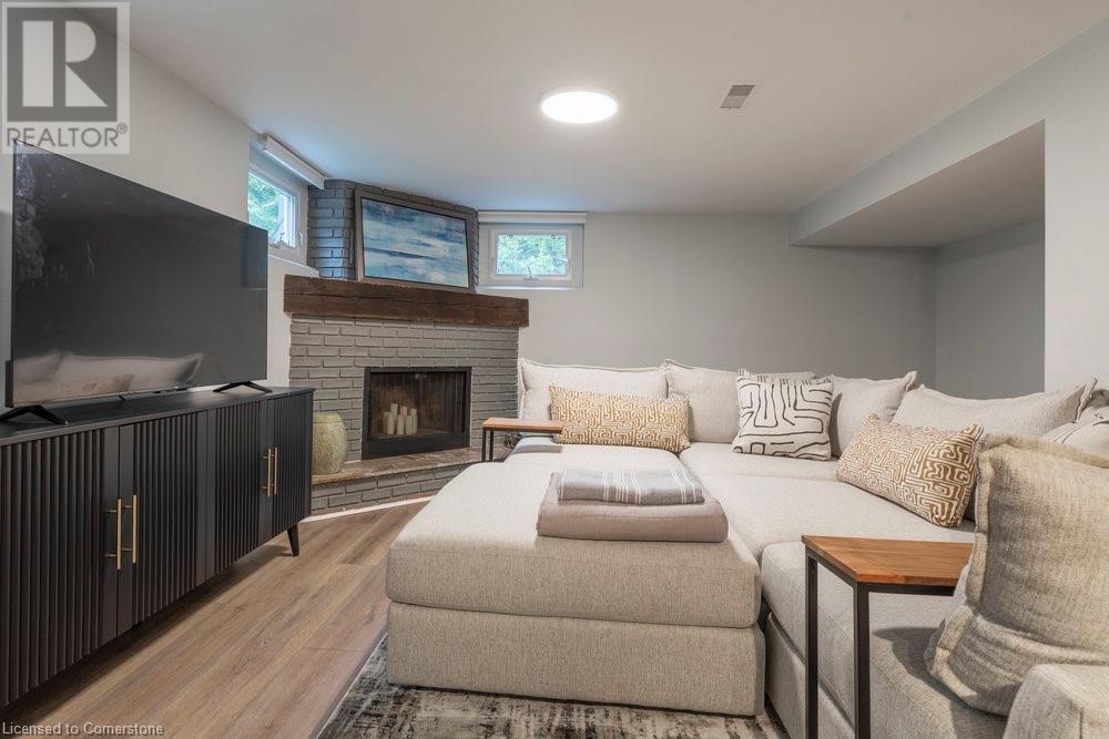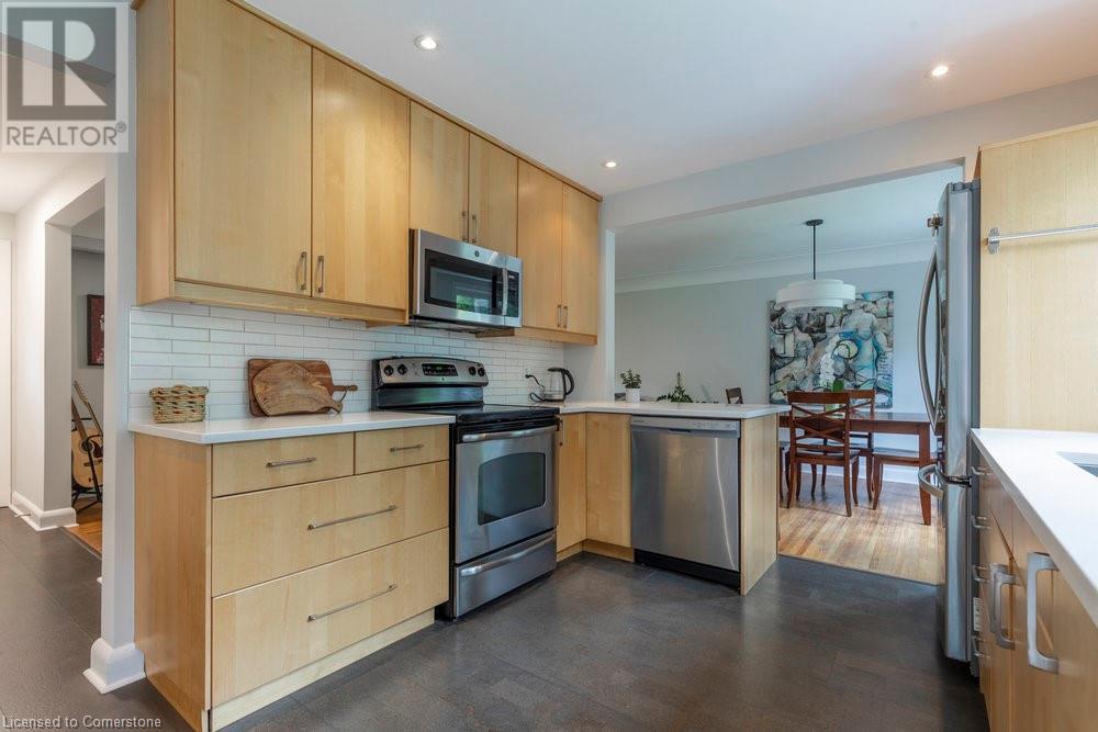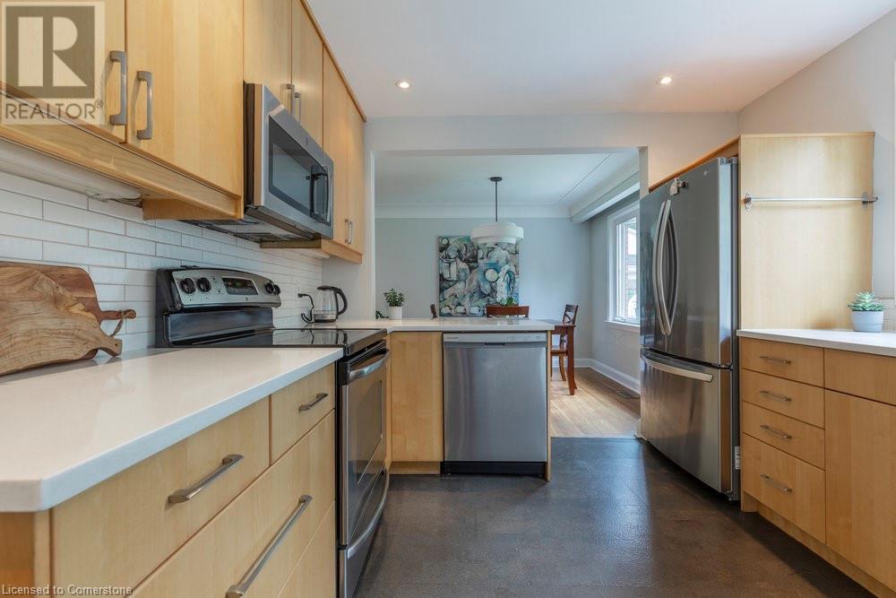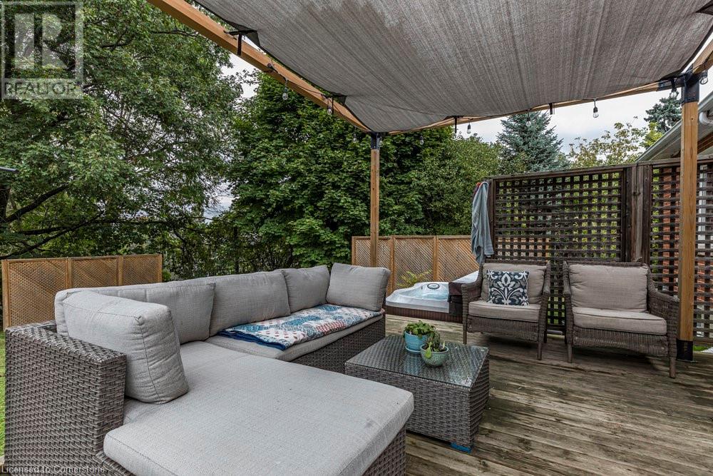 Solid 3-bedroom bungalow in beautiful Ancaster location! Easy access to west Hamilton & Dundas, this well-established neighbourhood is highly sought-after. Mature trees, large front lawn, single car garage and huge driveway with plenty of parking. This home offers an entry foyer with cork floors, a large L-shaped living and dining room with original hardwoods and coved ceilings. The cork floors continue throughout the kitchen which has been updated with quartz counter tops, maple cabinets, tile backsplash and stainless-steel appliances! The 4-piece bathroom has been modernized with a good-sized bath/shower, tile surround and glass shower doors. You will find 3 generous bedrooms, all with original hardwood floors! The recently renovated basement offers fabulous extra living space with a separate rec room, 3-piece bathroom, laundry and utility room and 2 additional bedrooms, The spacious backyard is mature, private and offers a patio space, lawn and hot tub. Freshly painted throughout, this home is ready for you to move-in and enjoy! (id:55009)