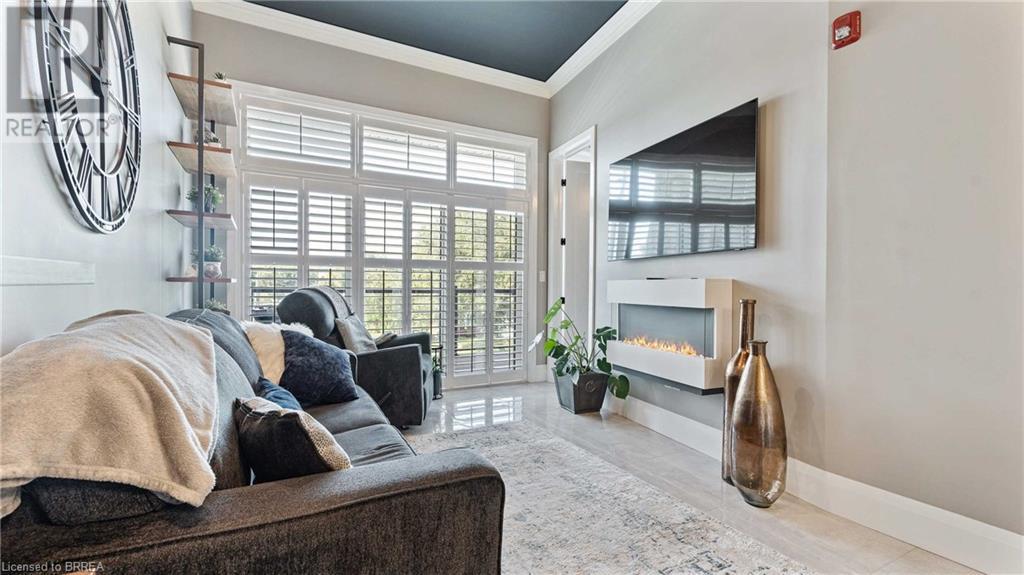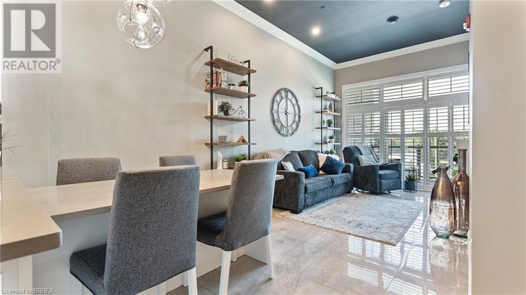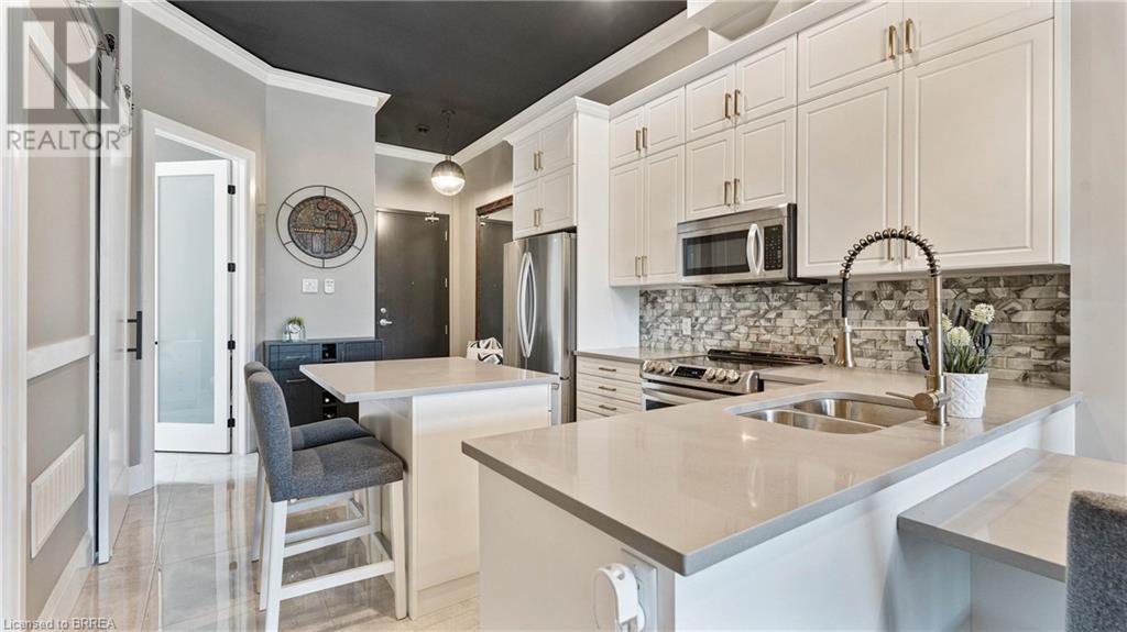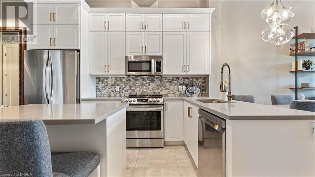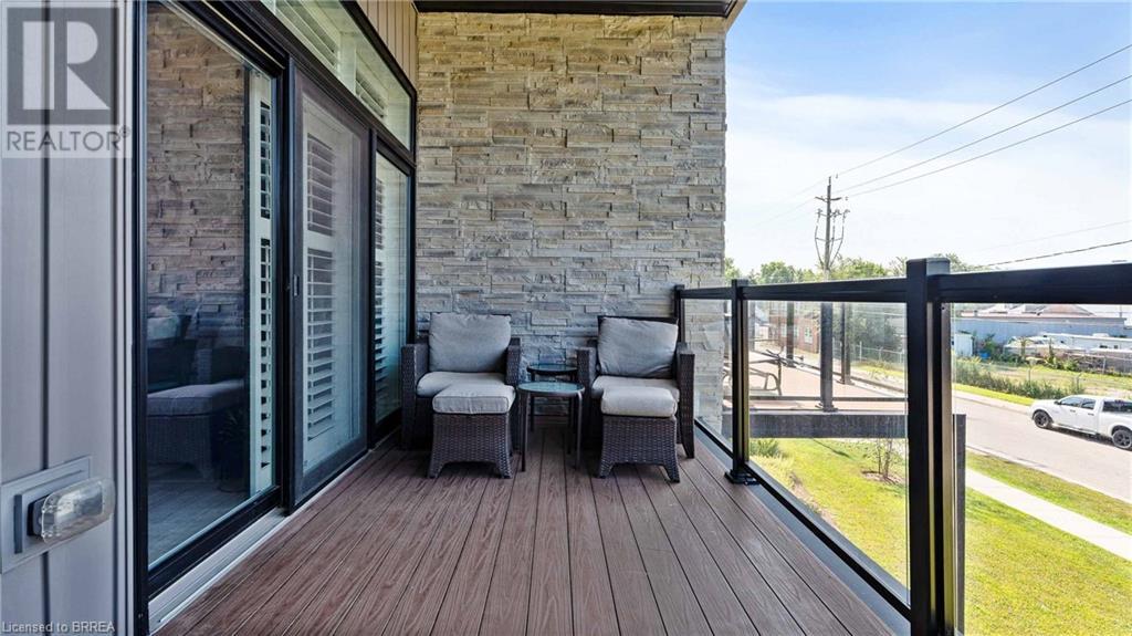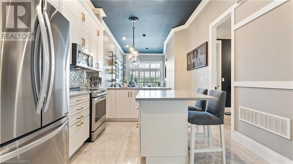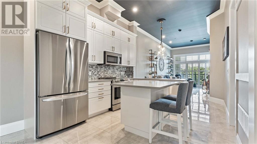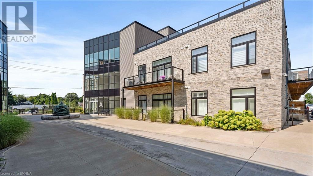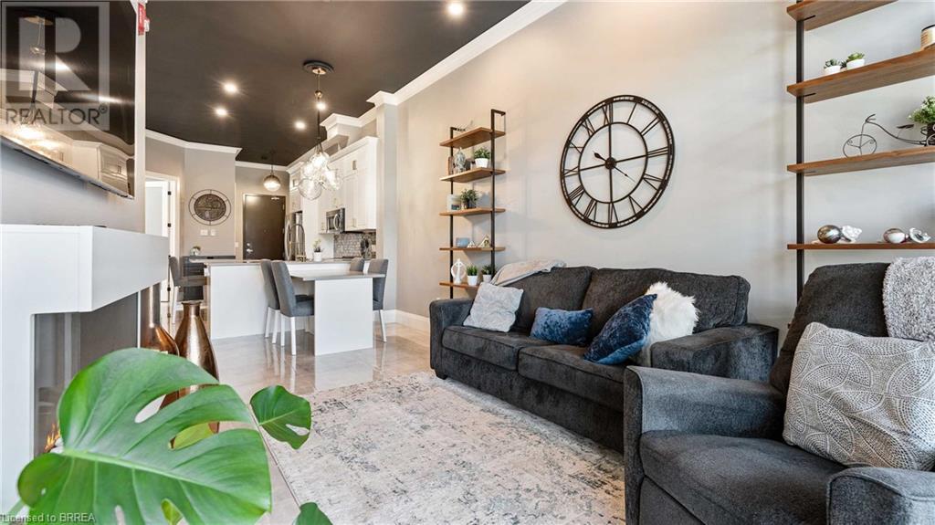$401.61 MonthlyWelcome to 85 Morrell Street Unit 205A in Brantford. This 2 bedroom, 1 bathroom quality executive 1-level suite offers the convenience of so many amenities including trails, restaurants, and more! Featuring 2 parking spaces, high-end finishes and completely move-in ready, this is an amazing opportunity for those who are looking to downsize and want to enjoy maintenance free living! Open and spacious with 12 foot ceilings, 8 foot doorways, pot lighting and the perfect ambience throughout. Oversized porcelain tile throughout, beautiful kitchen with island and breakfast bar with an extension makes this perfect for four, stainless steel appliances, quartz countertops and an abundance of natural light throughout. Just off the living area is a spacious guest bedroom with skylight. Large primary bedroom with feature wall and ample closet space. Just off the living room is a beautiful 9x20’ private balcony with ample space for seating and entertaining. Enjoy a quiet morning coffee in a great location opposite to the parking side offering plenty of privacy. Don’t miss out on this amazing opportunity and book your private showing today. (id:55009)