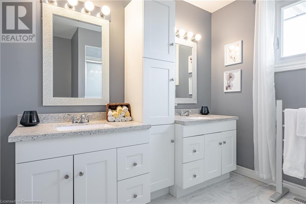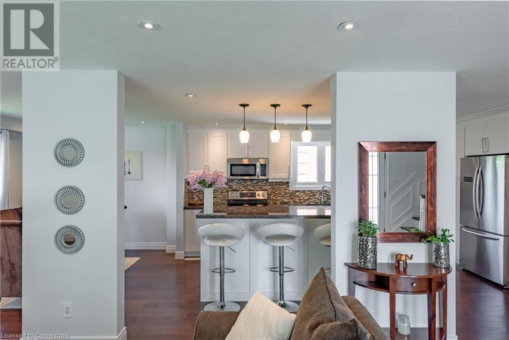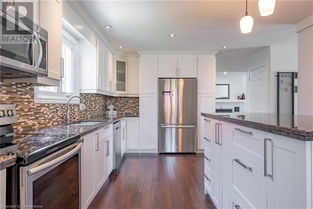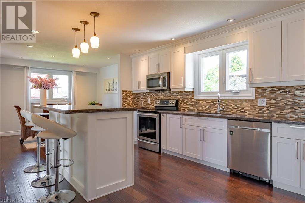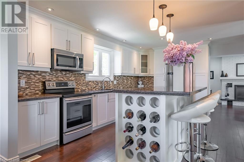 Welcome to 87 Monte Drive, a stunning 3+1-bedroom home offering modern comfort and exceptional living spaces. This property features a full in-law suite with a separate entrance, perfect for extended family or rental potential. Step inside to be greeted by gleaming hardwood flooring throughout the main living areas. The bright eat-in kitchen is a chef’s delight, boasting granite counter tops, large kitchen island new stainless steel appliances and ample cabinetry. The separate family room is a cozy retreat with a charming wood-burning fireplace, ideal for relaxing evenings. The fully finished basement, accessible through a separate entrance, houses the in-law suite, providing privacy and convenience. This suite includes a spacious living area, kitchen, and full bathroom, making it a versatile space for guests or additional income. Situated on a beautifully landscaped lot, this home offers plenty of outdoor space for entertaining or unwinding. The attached double car garage and large concrete driveway provide ample parking and storage options. Recent major updates ensure peace of mind: all windows (2023), shingles (2023), and air conditioner (2023). Don’t miss the opportunity to make 87 Monte Drive your new home in Hamilton. (id:55009)