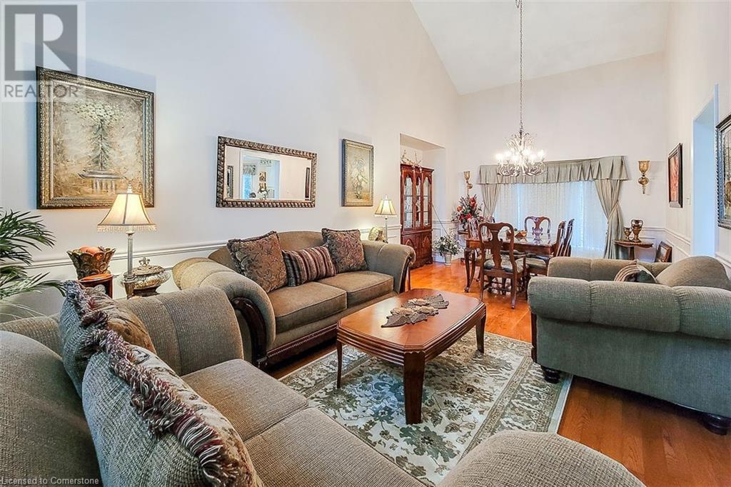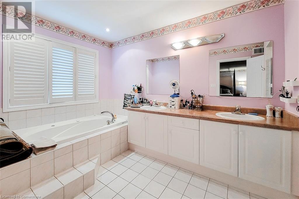 In the heart of Ancaster (Hamilton area) Meadowlands 60x160 lot backing onto street. Long driveway to park 4 cars. Double car garage. 2500 sq ft above grade with 4 bedrooms. Master bedroom has ensuite with jacuzzi tub double sink vanity and standing shower. Walk-in closet and extra wall closets. Three more bedrooms with one bath on second floor. No carpet on both levels. Oak staircase. Main level huge living/dining room combination with vault ceiling. Twenty ft high foyer welcomes you in the house. Formal family room with gas fireplace. Kitchen with newer stove and 36 inches side by side refrigerator with ice and water dispenser. B/I dishwasher. Lots of cabinets. sliding door from dinette to huge patio. Long deep backyard can accommodate any size and shape of pool. Deep backyard can be used to put extra living space. main floor laundry and powder room with double closets. Entrance from garage to laundry area. Garage opens to the backyard with huge shed for storage. Lower level has huge bedroom with ensuite privilege. Kitchen with oak cabinets, gas stove, B/I dishwasher and side by side fridge and freezer. Open area with gas fireplace and oak wall unit with lots of cabinets and glass showcases. Roof, furnace and Air-conditioner are under ten years old. Over 3500 sq ft living space. Good for growing or extended family. Quick closing is also possible. 1998 built with lots of upgrades. Kitchen and bathrooms are original. Sprinkler system, C/V and HRV (ALL AS IS) Seller is related to listing agent. RSA (id:55009)