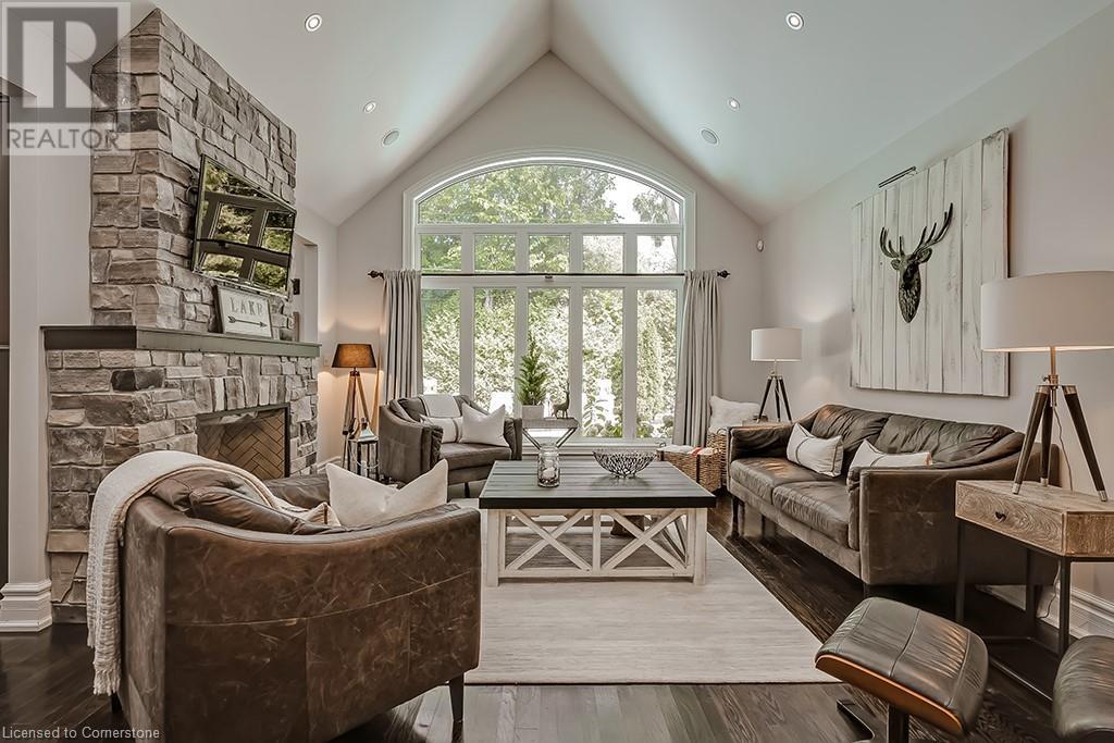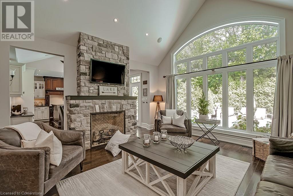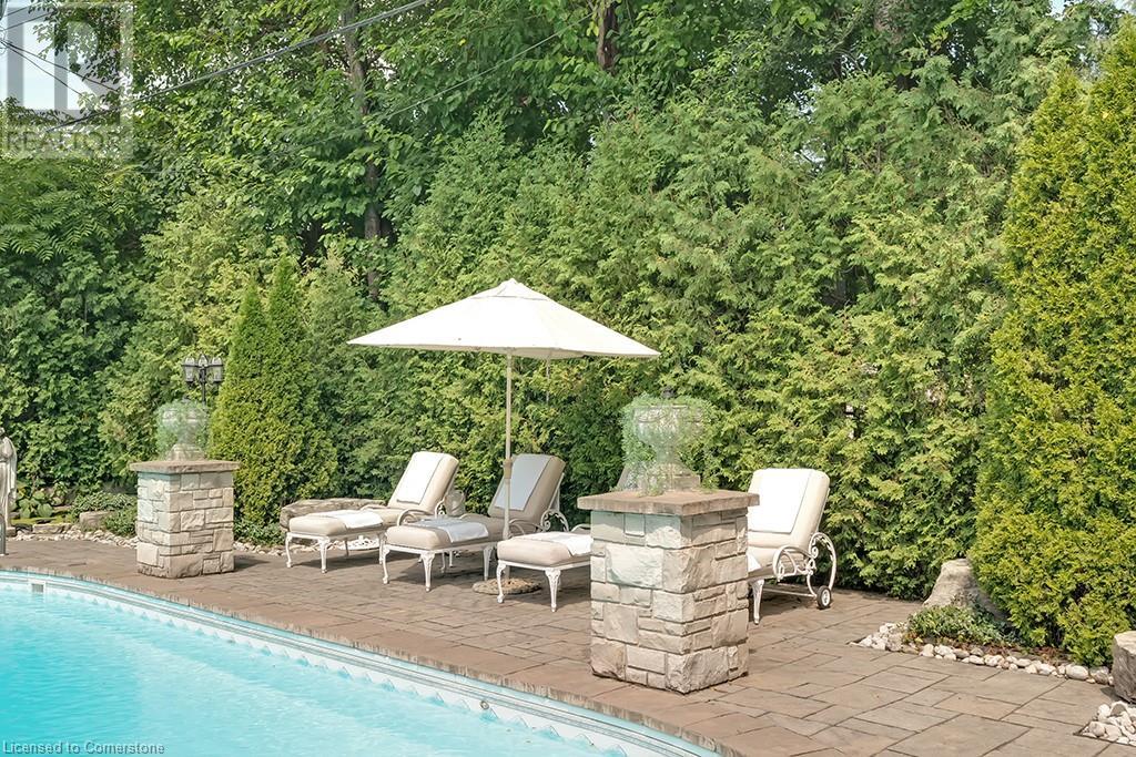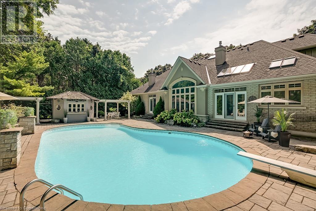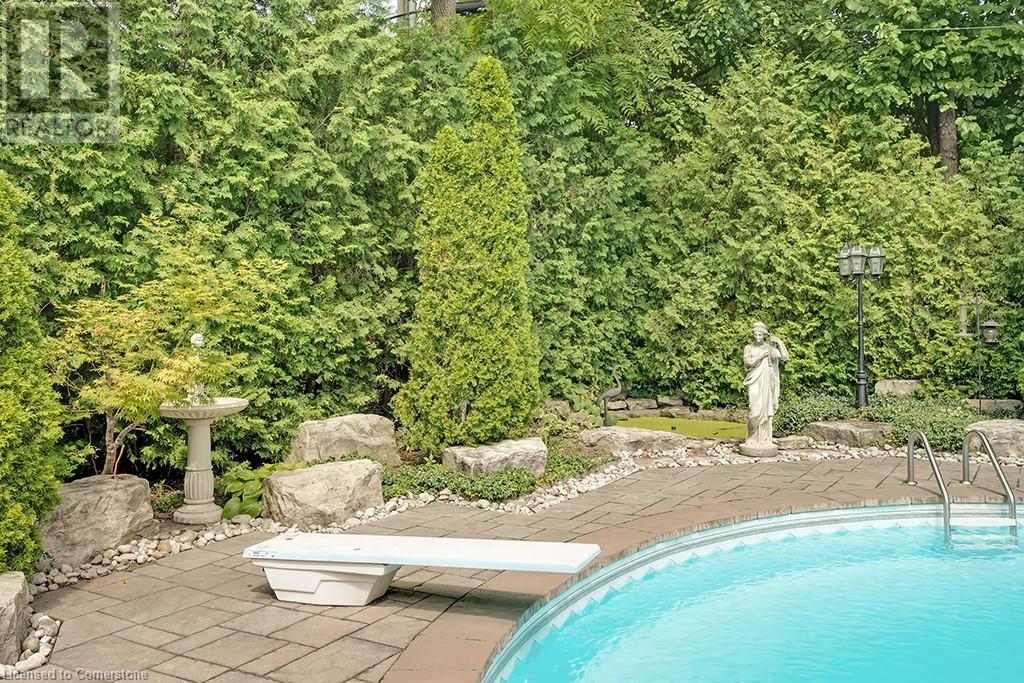 This striking custom residence in desirable Aldershot offers a view of the Burlington Golf and Country Club. This 4 bedroom, 3 bath, 1.5 bath bungalow loft floor plan balances spacious communal area with private retreats. Exquisite attention to detail, yet offering a relaxed living experience. Soaring ceiling heights and design throughout. Immense opportunities with further potential space above garage plus exterior access stairs to lower level. The 2900 Sq Ft Lower Level awaits your finishing touches with 5/8 Drywall, Steel Studs, Insulation, Flooring on site. Utmost level of privacy in the backyard creates a perfect outdoor haven especially with the evergreen wall of trees, 42 ft x 25 ft Pioneer Pool and Exterior Speaker System. Close to everything Downtown, the Club, LaSalle Park/Marina, Royal Botanical Gardens/Trails, Shopping, Schools, Hwy Accesses and Go Station. Material Throughout - Logic Block Basement, Spray Foam Insulation around top perimeter of exterior wall base in lower level, R70-80 Insulation/Acoustic Sound Barrier, R60 Cathedral w/resilient channel, 5/8 Drywall, Solid Core Doors, Italian Hardware, Sound System, Custom Trim, Pocket Doors, French Doors, 5 Fireplaces (1- Town and Country), Hardwood stained on site, Open Wood Staircase, Exterior full stone; custom mix from 5 quarries, Indiana Limestone. (id:55009)