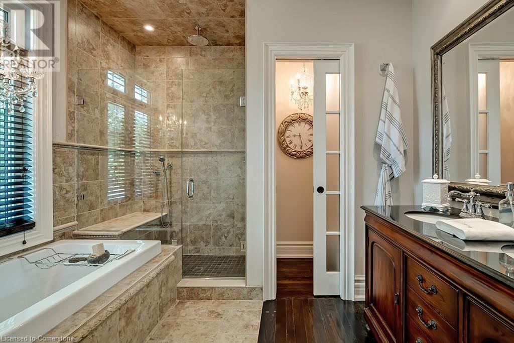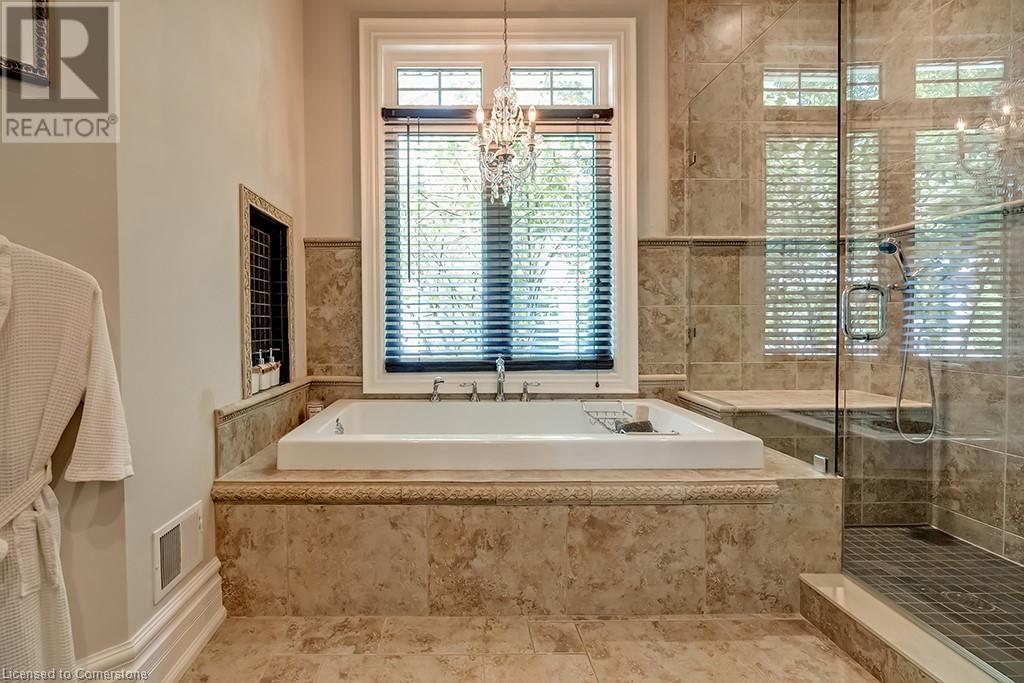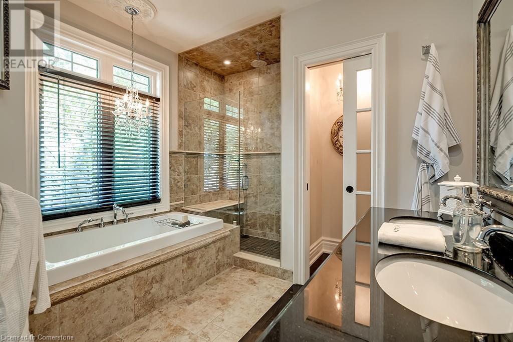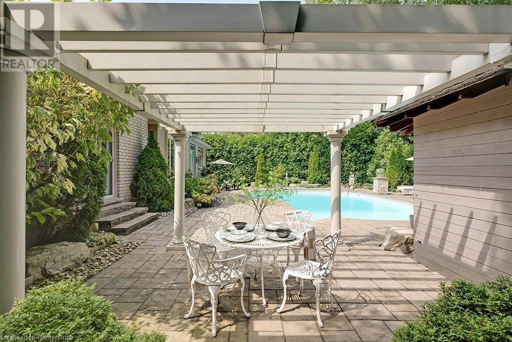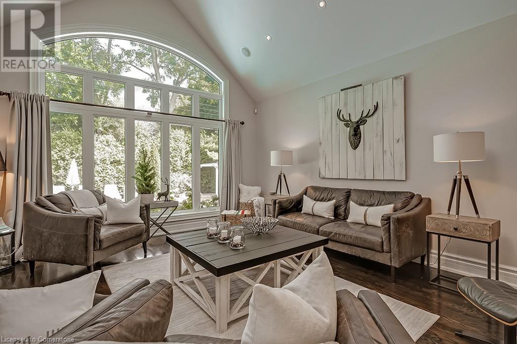 This striking custom residence in desirable Aldershot offers a view of the Burlington Golf and Country Club. This 4 bedroom, 3 bath, 1.5 bath bungalow loft floor plan balances spacious communal area with private retreats. Exquisite attention to detail, yet offering a relaxed living experience. Soaring ceiling heights and design throughout. Immense opportunities with further potential space above garage plus exterior access stairs to lower level. The 2900 Sq Ft Lower Level awaits your finishing touches with 5/8 Drywall, Steel Studs, Insulation, Flooring on site. Utmost level of privacy in the backyard creates a perfect outdoor haven especially with the evergreen wall of trees, 42 ft x 25 ft Pioneer Pool and Exterior Speaker System. Close to everything Downtown, the Club, LaSalle Park/Marina, Royal Botanical Gardens/Trails, Shopping, Schools, Hwy Accesses and Go Station. Material Throughout - Logic Block Basement, Spray Foam Insulation around top perimeter of exterior wall base in lower level, R70-80 Insulation/Acoustic Sound Barrier, R60 Cathedral w/resilient channel, 5/8 Drywall, Solid Core Doors, Italian Hardware, Sound System, Custom Trim, Pocket Doors, French Doors, 5 Fireplaces (1- Town and Country), Hardwood stained on site, Open Wood Staircase, Exterior full stone; custom mix from 5 quarries, Indiana Limestone. (id:55009)