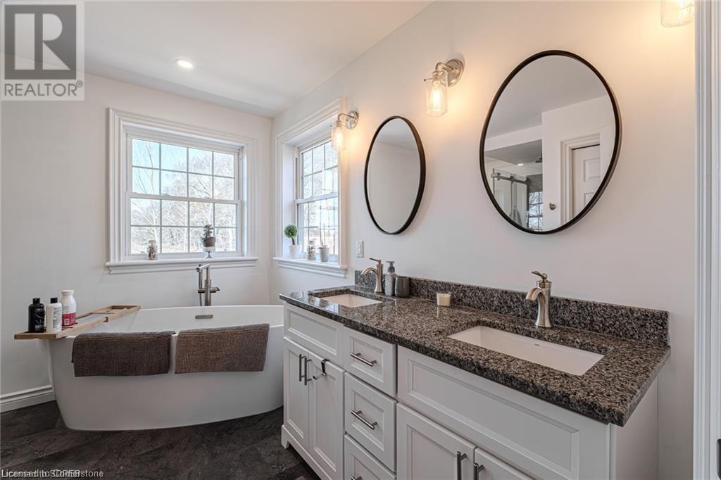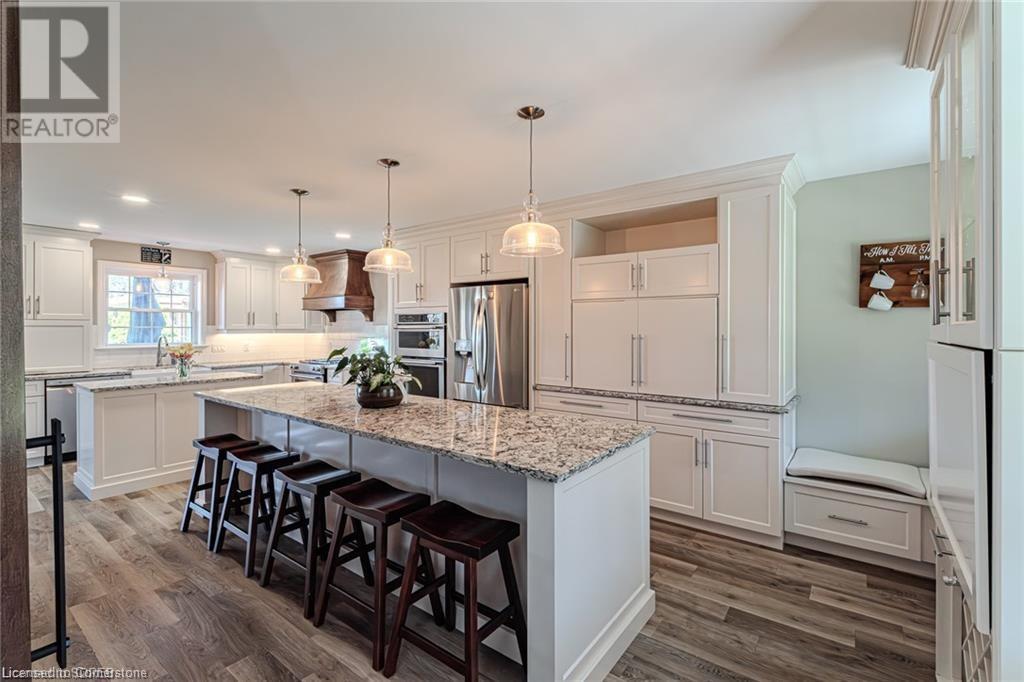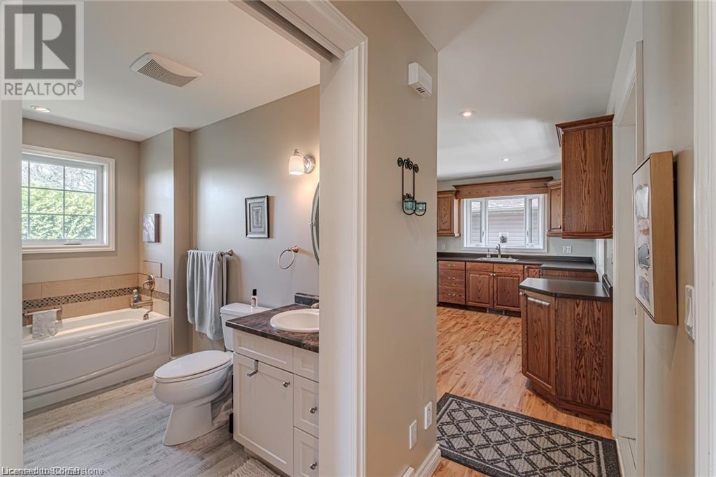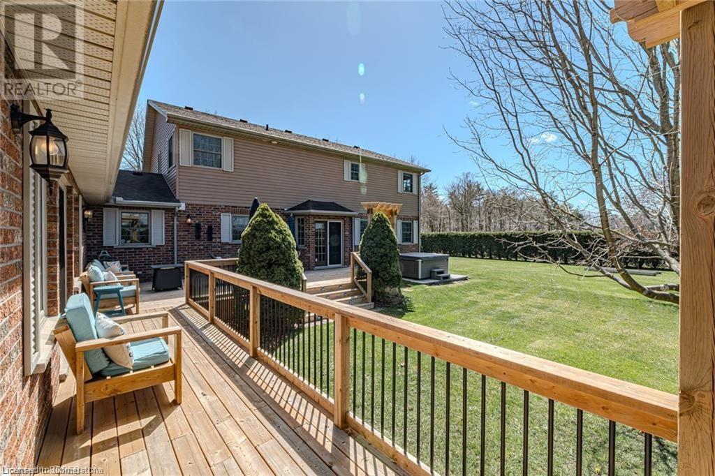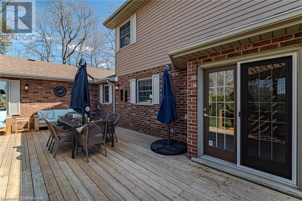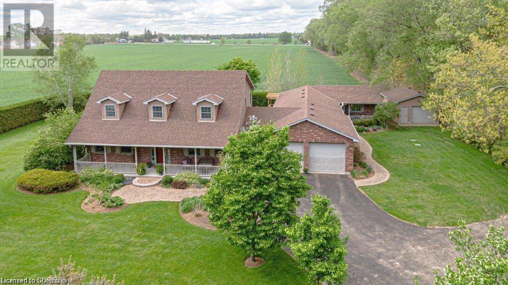 Welcome to country living at its finest! Situated on a private acre lot, this beautiful property is located between Delhi and Simcoe and offers over 3300 sq ft of quality living space. This welcoming solid brick cape cod home features an attached 2 car garage, a detached garage that could be used for extra storage or a shop, a covered front porch and a wrap around back deck. Step through the front door into the spacious foyer that leads to an impressive entrance and staircase. From here you will find a tastefully updated kitchen, with ample cupboard space, stylish counter tops, S/S appliances, a large island and a sliding door that leads to the back deck. The open concept kitchen flows seamlessly into the large dining and living room area, creating a great space for entertaining or simply enjoying family time. The oversized patio doors open out to a gorgeous deck, providing the ideal setting for cool nights and lazy days. Main floor laundry, 2 piece bath and a nice sized room finishes off the main floor. The upper floor has 3 bedrooms and 2 full baths. The large primary bedroom features a luxury 5 piece bathroom and walk-in closet. There was an addition built at the rear of the home in 2013. It is about 1200 sq ft and was built as an in law suite having its own heating/cooling, 4 piece bath and a kitchen. Could make an excellent granny flat/in-law suite, home office or just another area to entertain family and guests. This stunning rural property is just waiting for you to call it home! (id:55009)