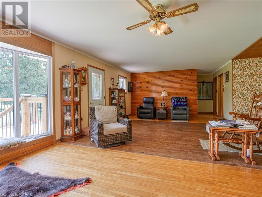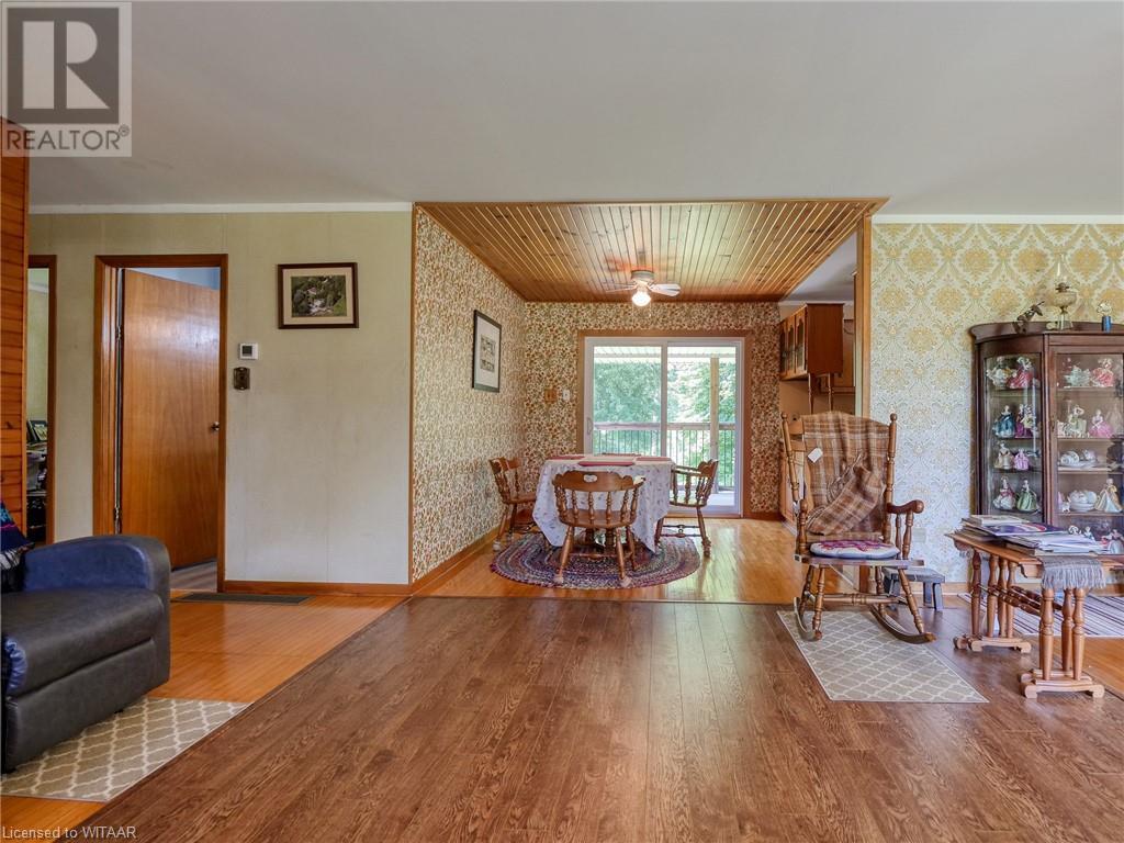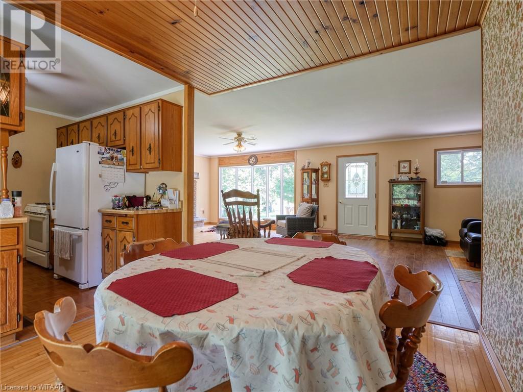 Nestled on a sprawling 49.04-acre lot, this serene property offers a tranquil escape with a wooded backdrop and crop field. Featuring 2 bedrooms and 1 bathroom across a spacious 1614 sq ft layout, this home is uniquely designed for comfort and accessibility. The property highlights include a large fenced-in pasture, a pond, and extensive outdoor living spaces—a 10x28 ft front porch and a covered 10x22 ft back deck with walkout patio doors from the dining area, perfect for entertaining or peaceful evenings. Outside you will also find a large garage, a workshop and a couple sheds. The home is well-equipped with both a gas stove and an outlet for an electric stove. The walkout basement opens onto a covered patio and boasts in-law suite capabilities, adding flexibility to the living space. Accessibility is thoughtfully addressed with a wheelchair-friendly 3-ft wide front entrance door. For those seeking a quiet life in harmony with nature, this property is an ideal choice. Listed for sale, it's ready for you to call it home. (id:55009)