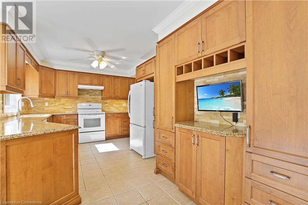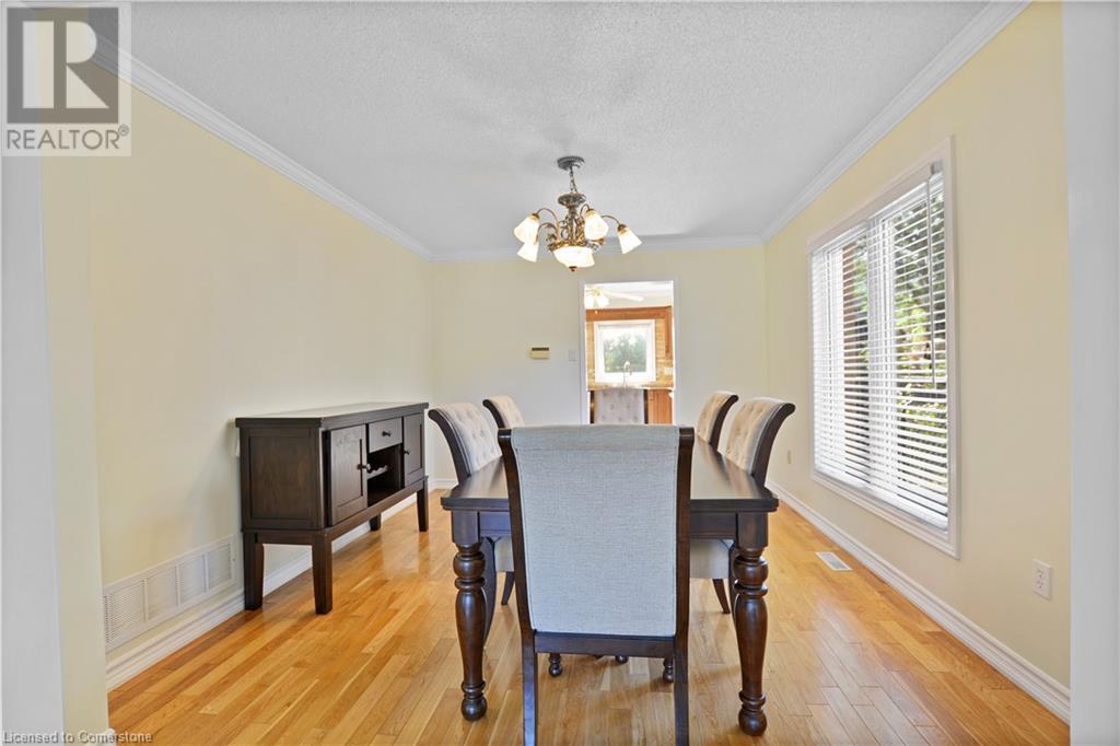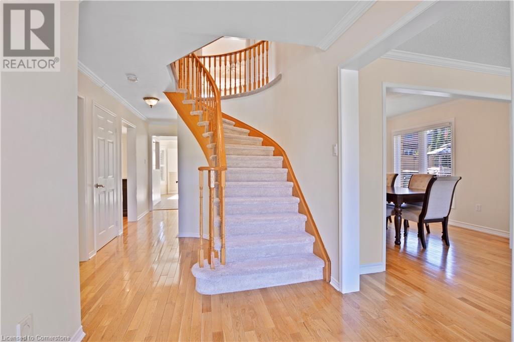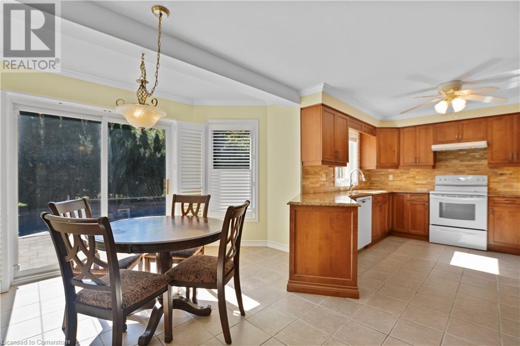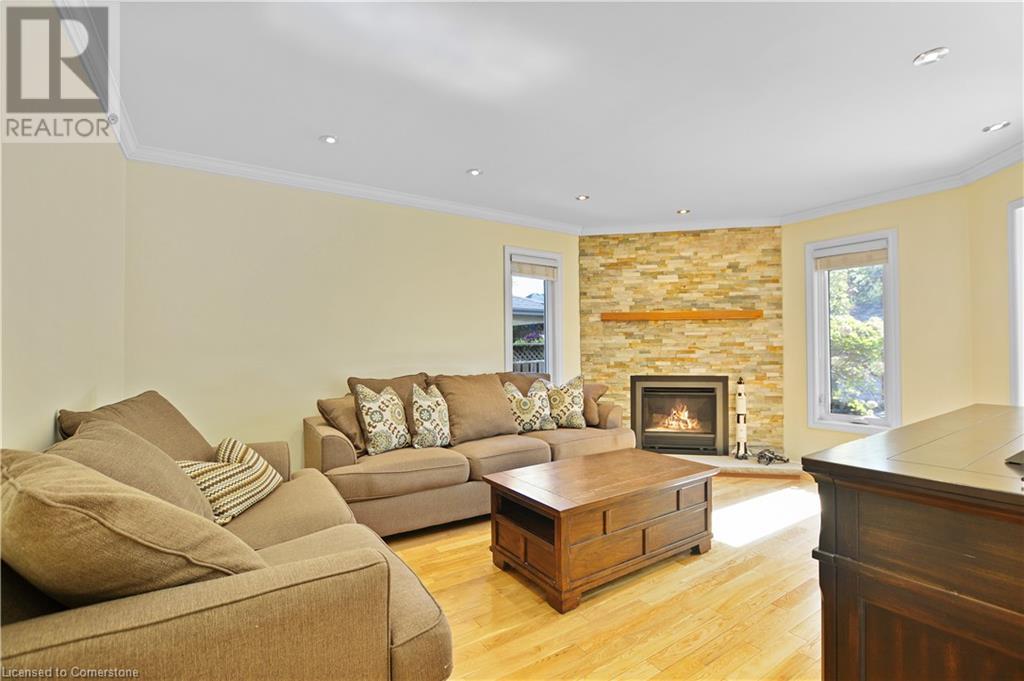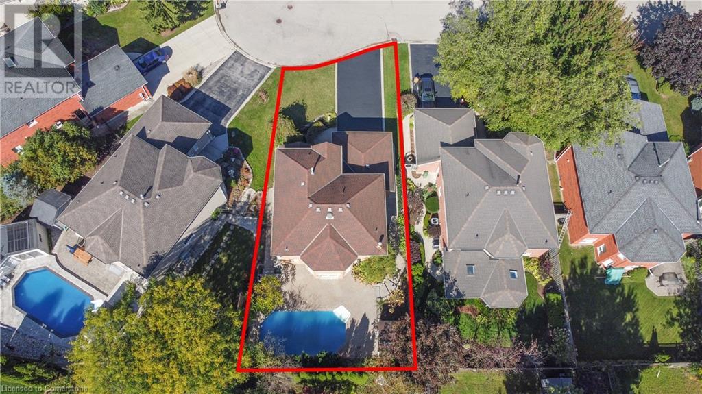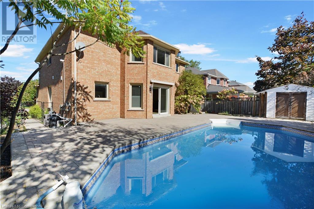 This stunning two-storey all-brick family home boasts four bedrooms and 2.5 baths. Located in Governor's Estates, one of Dundas' most sought-after neighborhoods, it’s conveniently close to schools, parks, and conservation trails. Nestled on a premium lot in a lovely cul-de-sac, this home welcomes you with a spacious foyer leading to an inviting main floor. It includes a living room, an elegant dining room perfect for entertaining, a family room with a gas fireplace, and a laundry room with ample storage. The beautiful eat-in kitchen features solid maple cabinets with wood boxes, Cambria quartz countertops, a travertine backsplash, a garburator, under-cabinet lighting, soft-close hinges, extensive pot drawers, and all appliances included. The upper level showcases four generously sized bedrooms, including a large master suite with a walk-in closet and an updated four-piece ensuite, plus another updated four-piece bathroom and a linen closet. The private backyard is an entertainer's paradise, complete with a heated pool, a stone patio, and maintenance-free landscaping. This home is packed with features and truly a must-see! (id:55009)