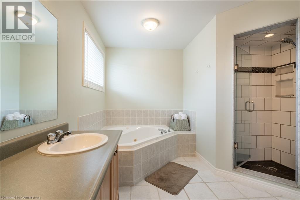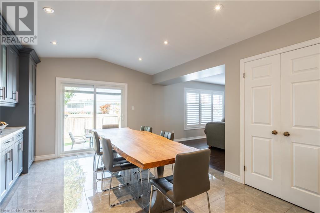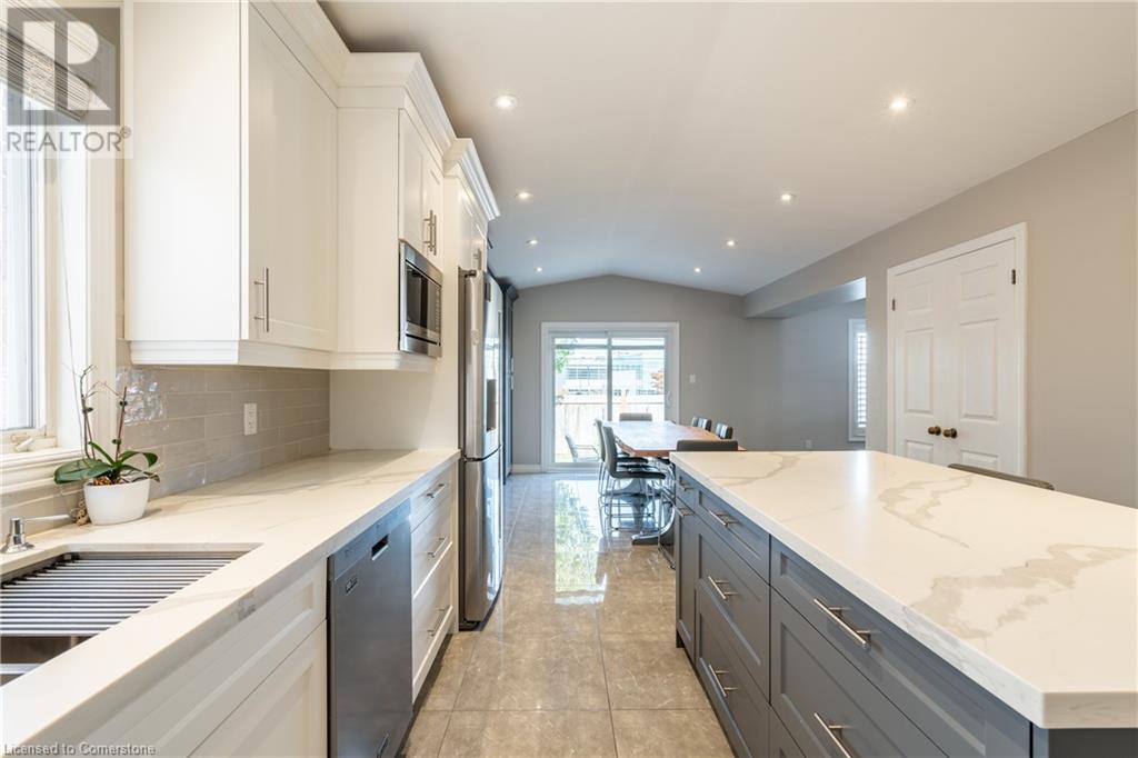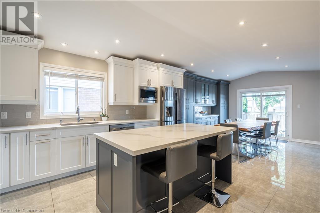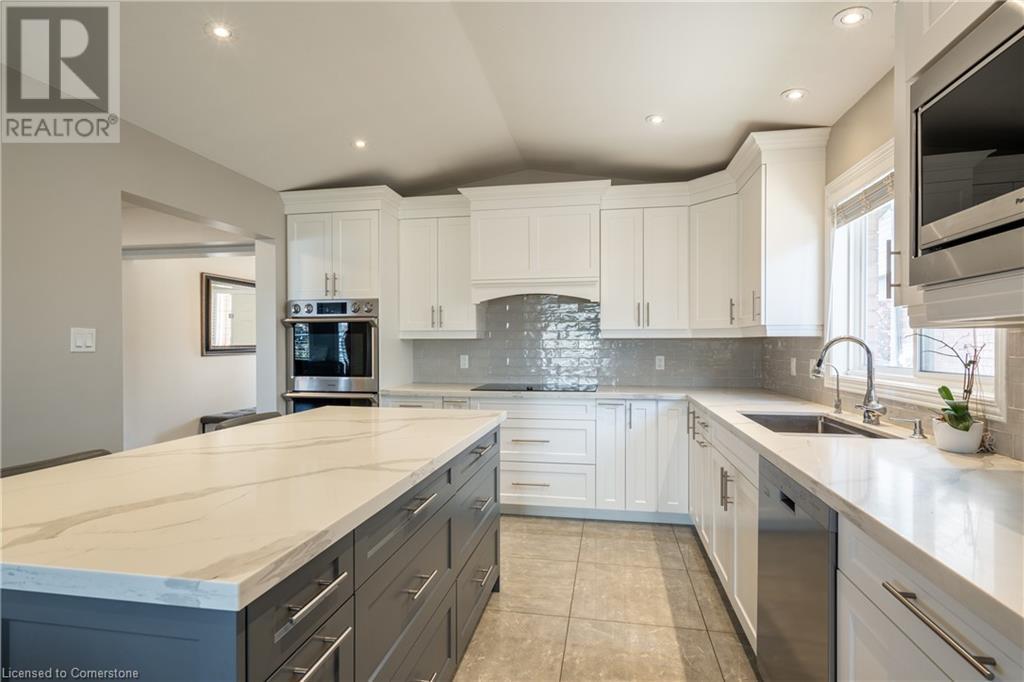 Located on a quiet court in a prime Grimsby neighborhood, this 3+1 bed, 4 bath home offers 2450 sq ft plus a fully finished basement. Enter through the large foyer into the open-concept main floor, featuring a renovated eat-in kitchen with granite counters, a breakfast bar, tons of cabinet and storage space, and stainless steel appliances. The sun-filled layout boasts California shutters, hardwood flooring, and a walk-out to a fully fenced yard with a cement patio and gas BBQ line. The primary suite includes a 5-piece ensuite and walk-in closet. The finished basement features a rec-room retreat with an entertainers bar, bedroom, 3-piece bath and a gym space. Additional highlights: new furnace and A/C (2021), roof (2019), double garage, driveway parking, and stamped concrete walkways. Close to the YMCA, hospital, schools, and QEW access. Ideal for family living! (id:55009)